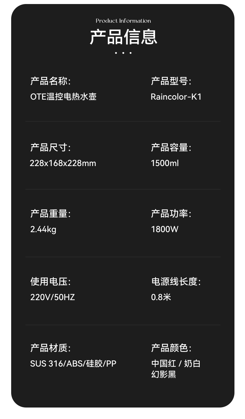 【OTE温控电热水壶】欧堤烧水壶316不锈钢恒温壶智能电热开水壶家用保温一体大容量