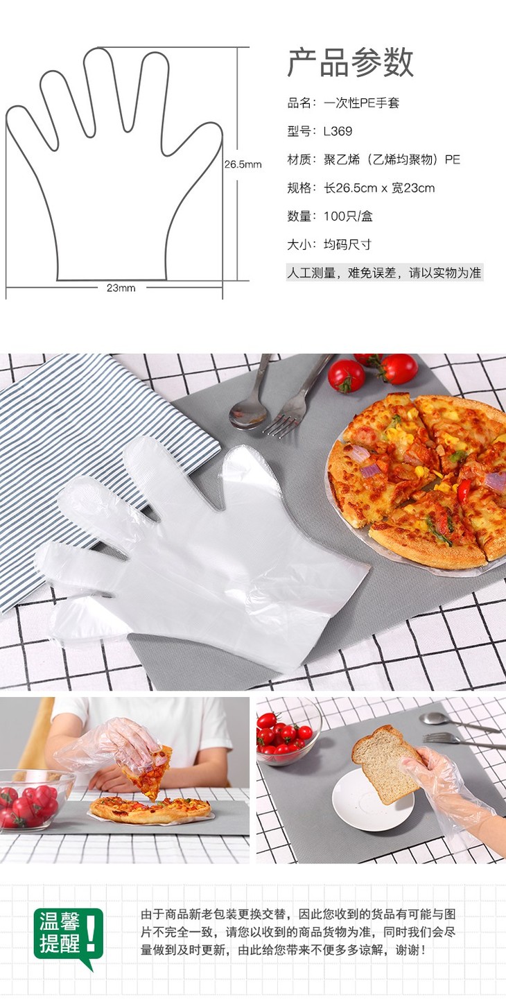 齐心一次性PE手套L369(1袋=100个) 透明