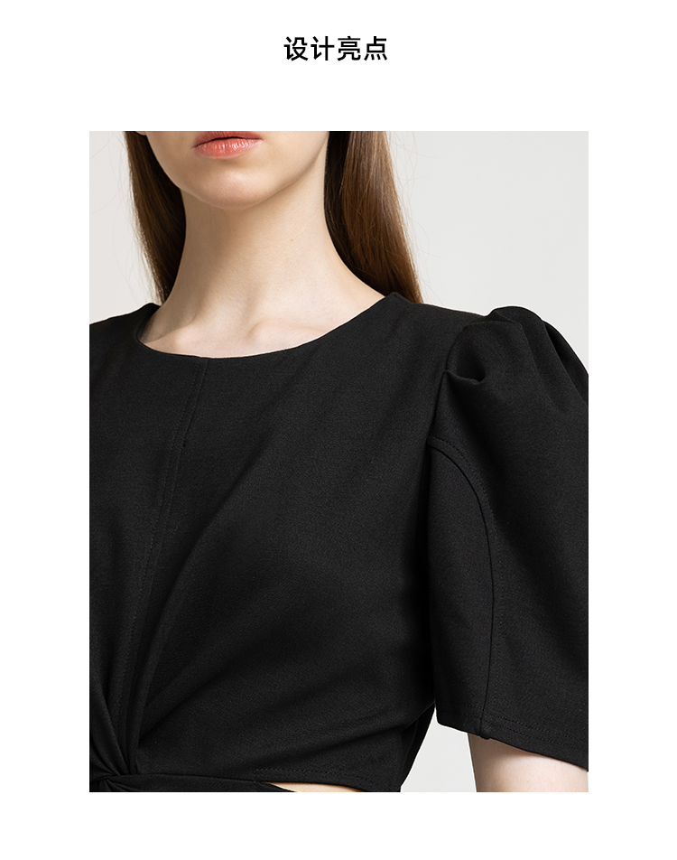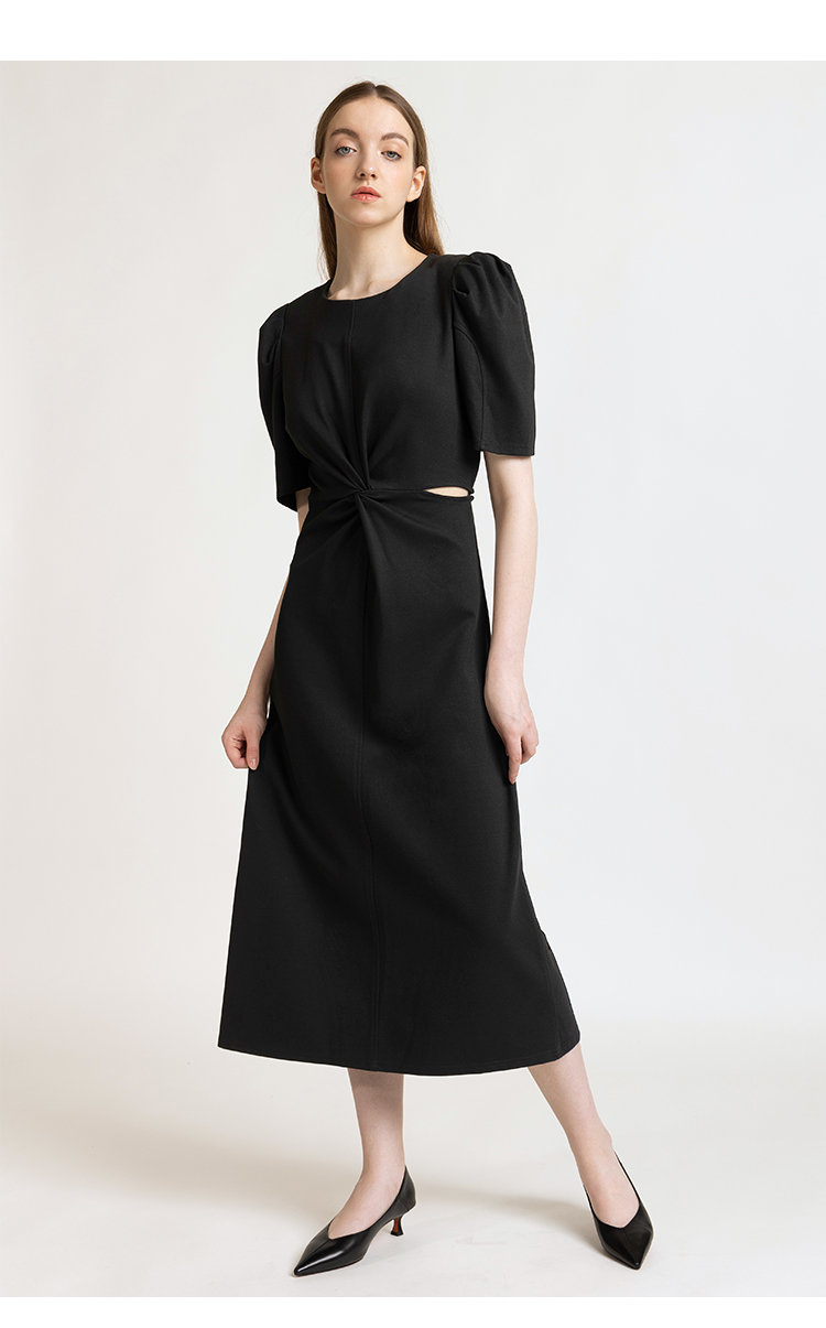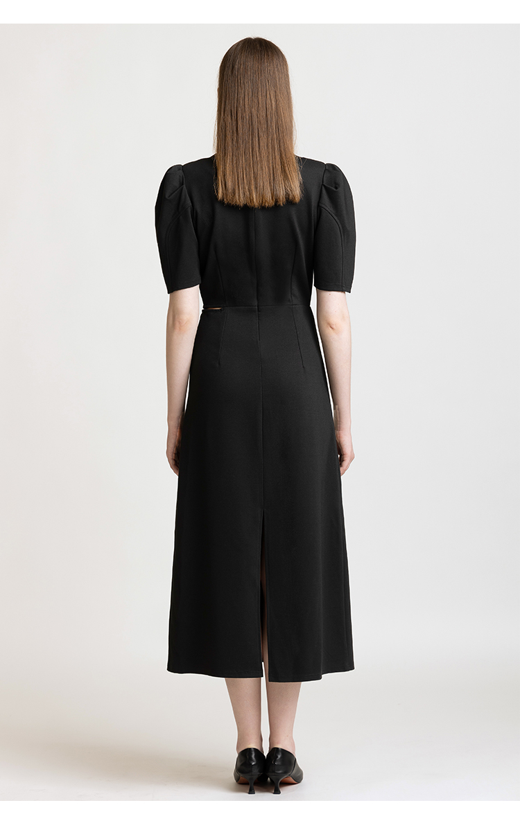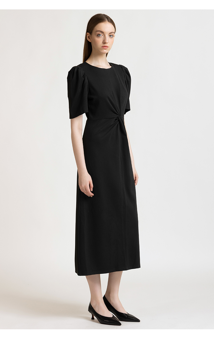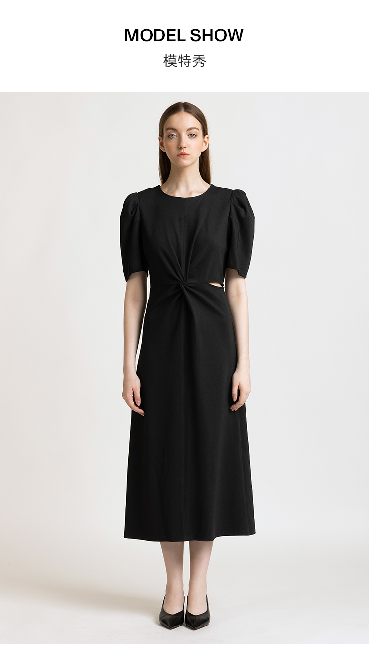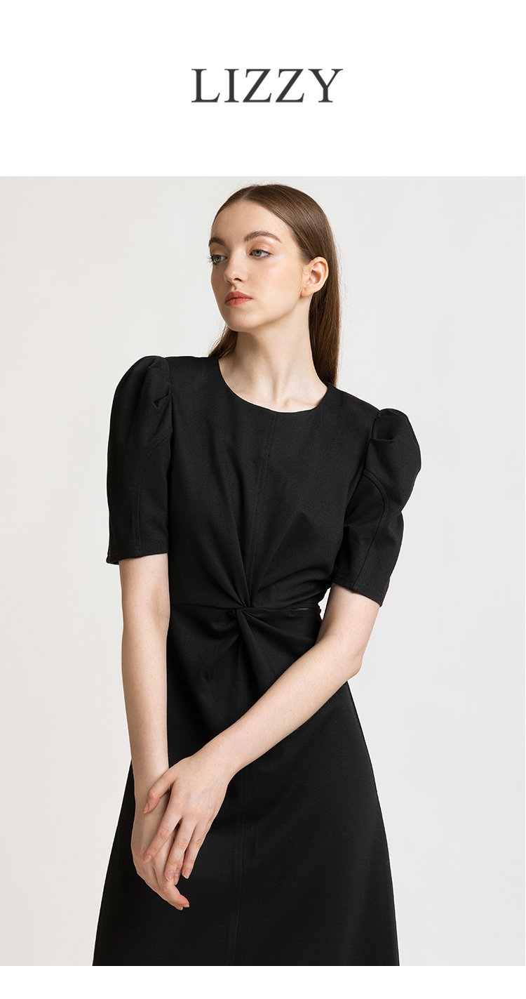LIZZY 法式优雅通勤泡泡袖露腰长款弹力针织连衣裙7850