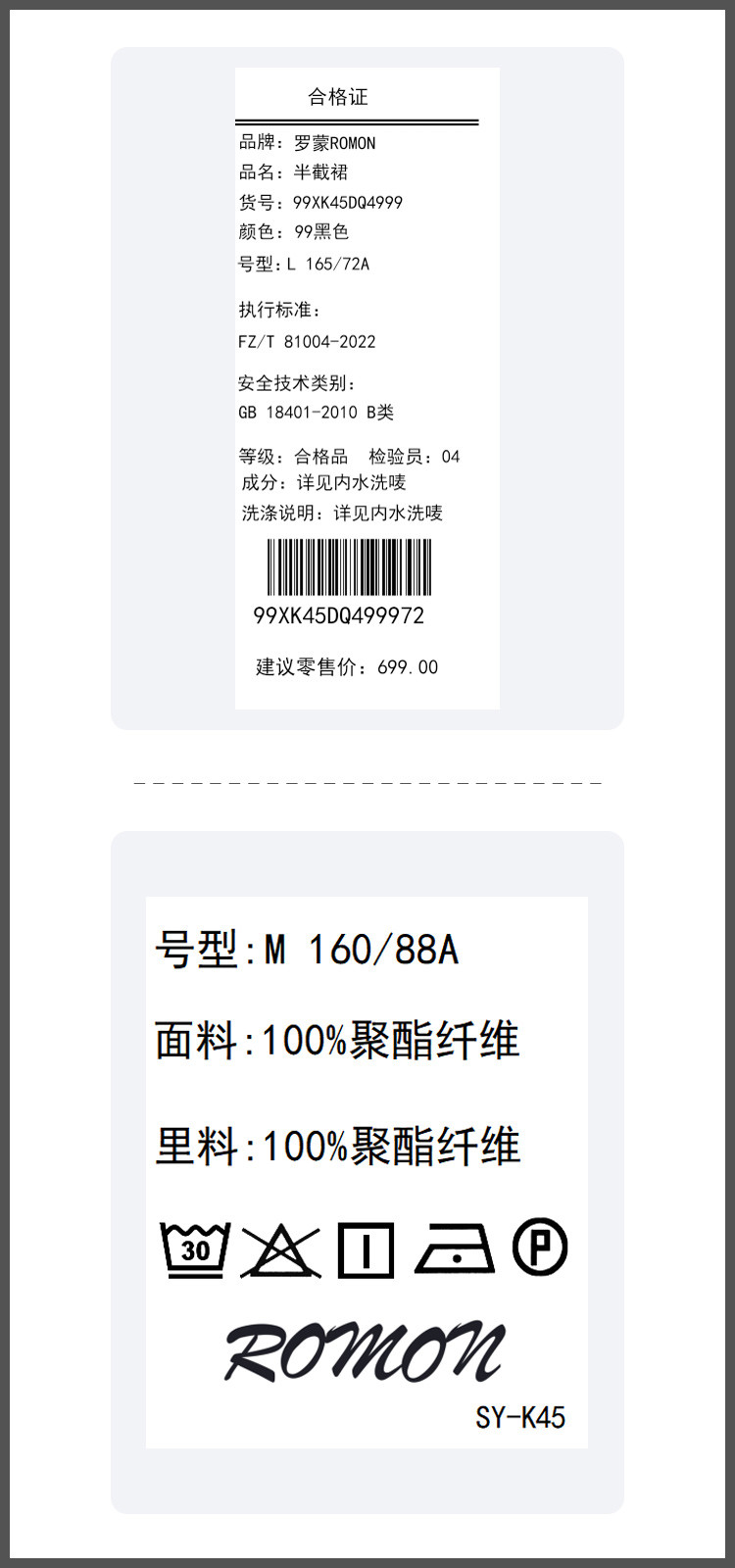 面料:100%聚酯纤维 里料:100%聚酯纤维