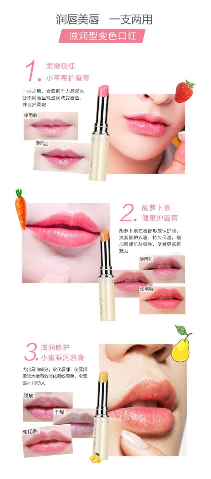 【中欧班列4支】日本蜜梨品牌变色唇膏裸色 /胡萝卜色 /小草莓 1.5g/支 品牌授权直供