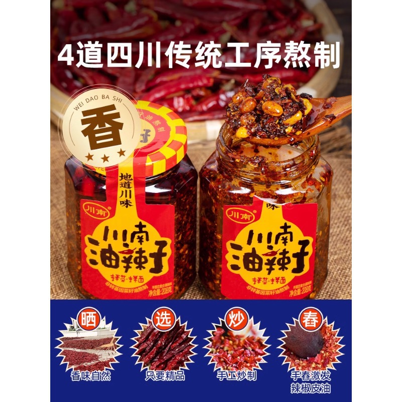 川南油辣子208g正宗四川油泼辣子红油香辣辣椒油凉拌蘸料调味家用