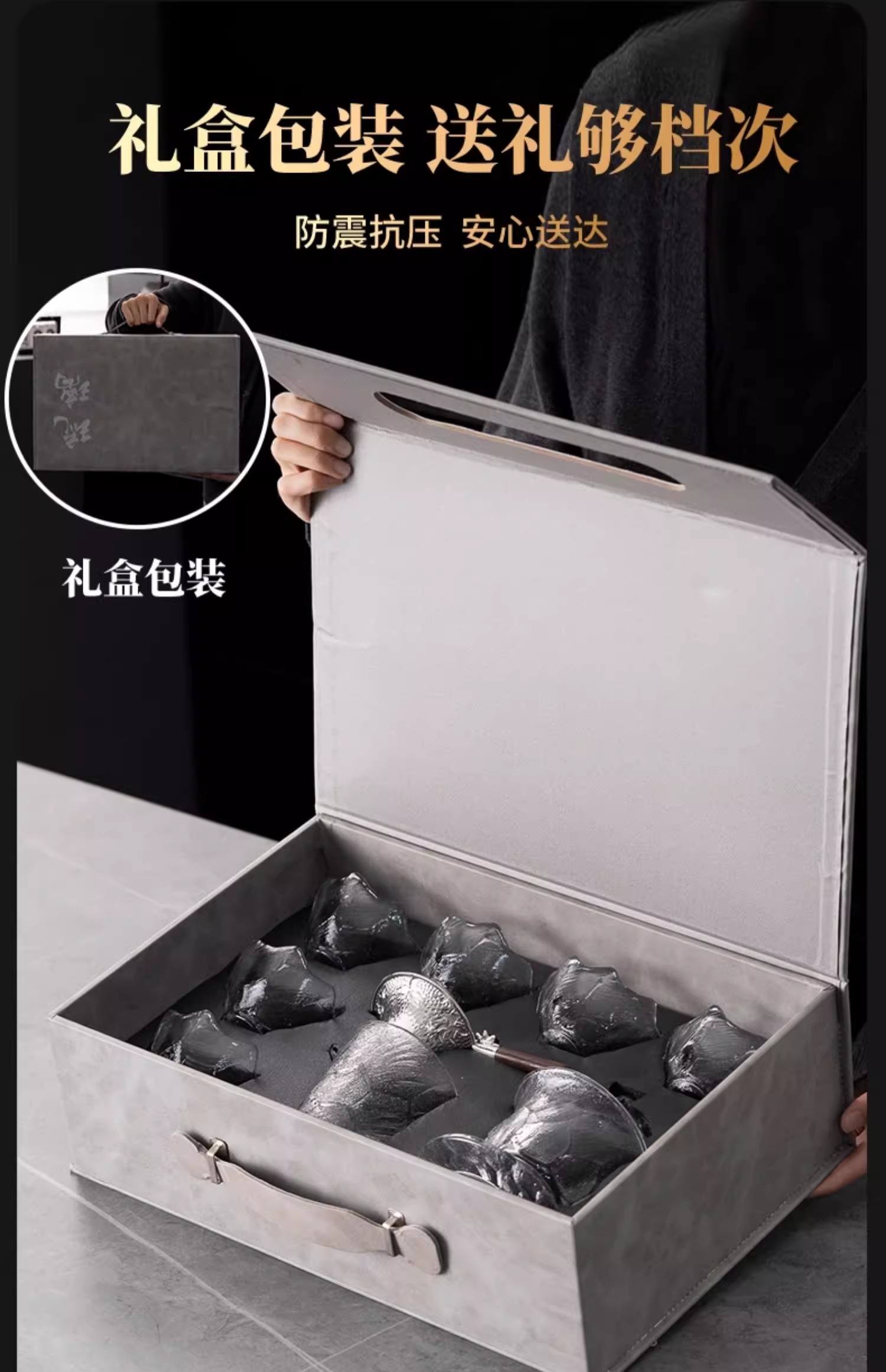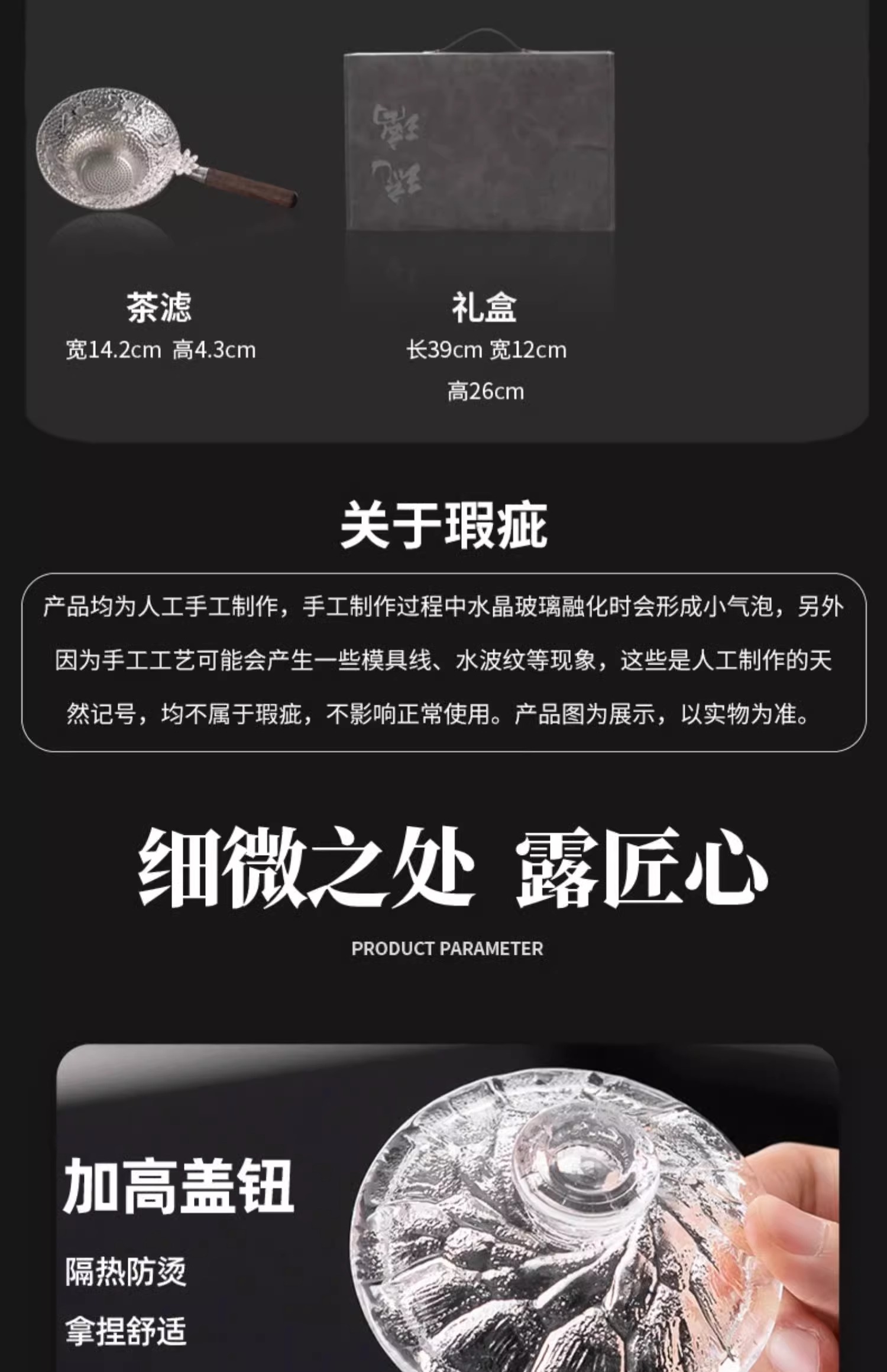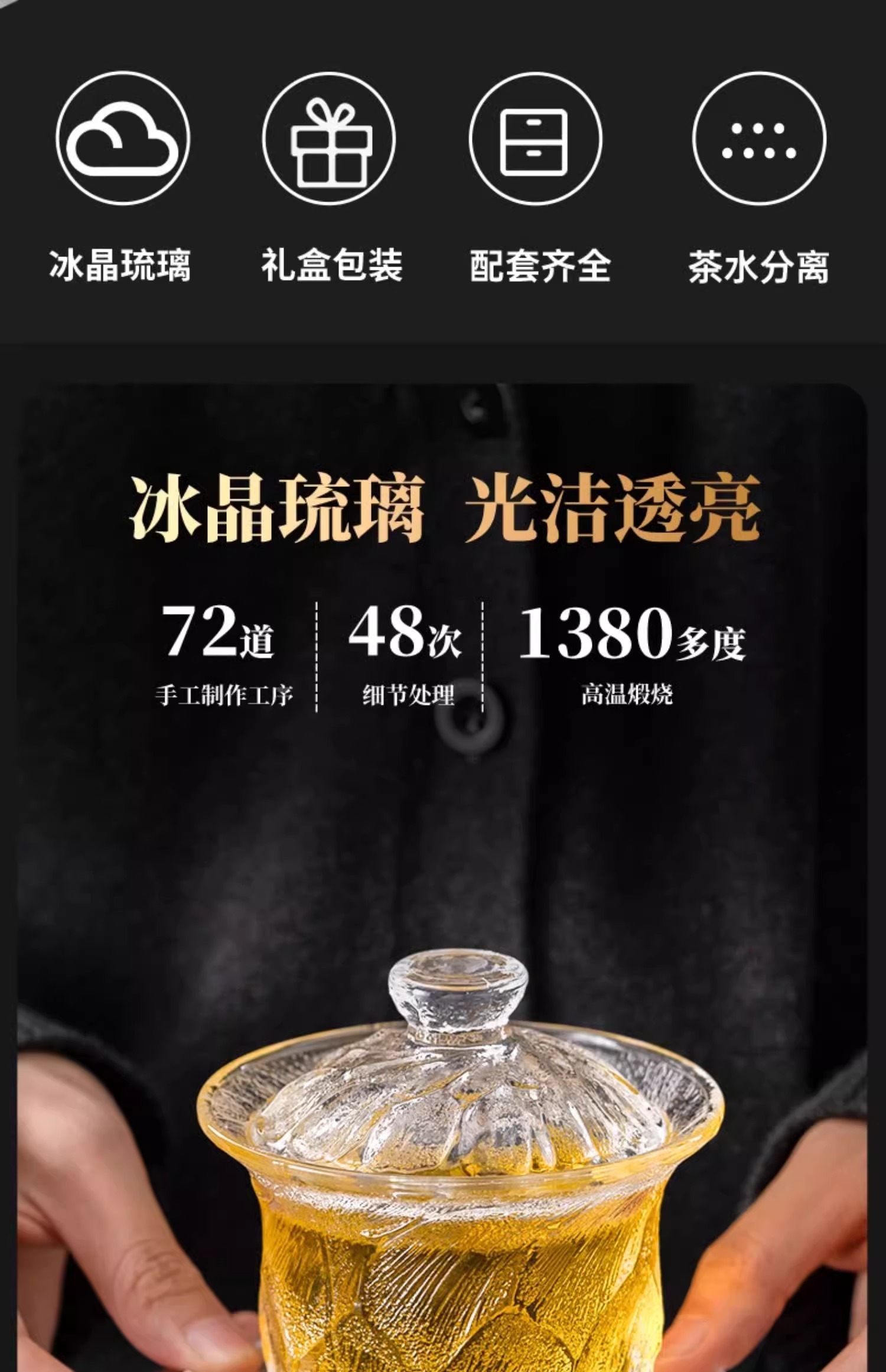 【样品特惠6折,仅1套,无货退款】整套盖碗茶具套装家用轻奢高档泡茶专用中式喝茶杯全套礼盒装璃匠-古法锤纹套组