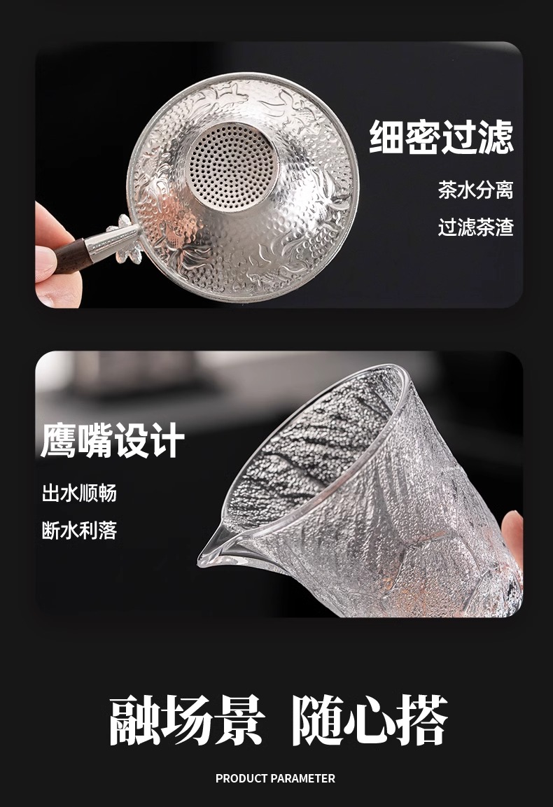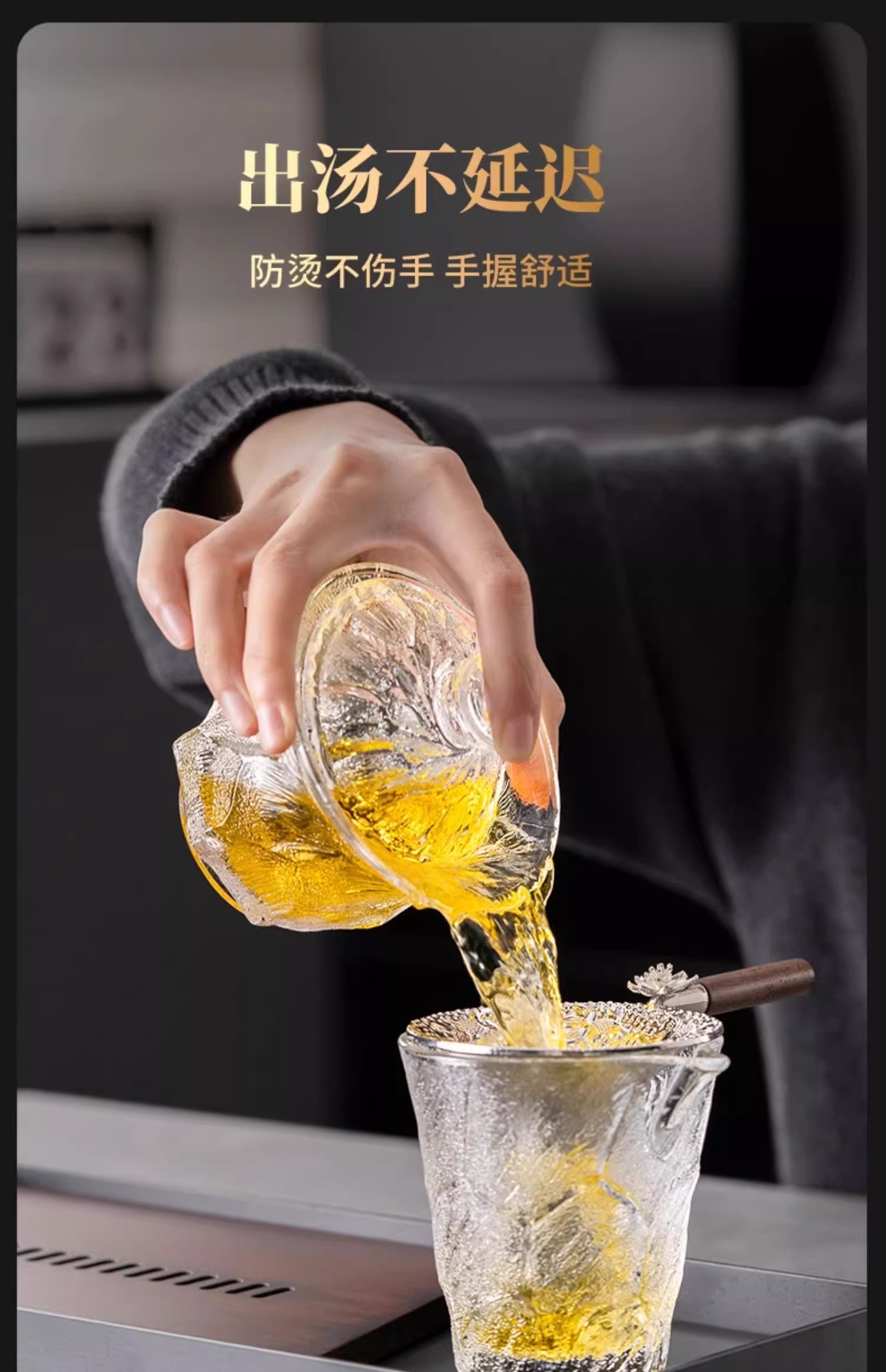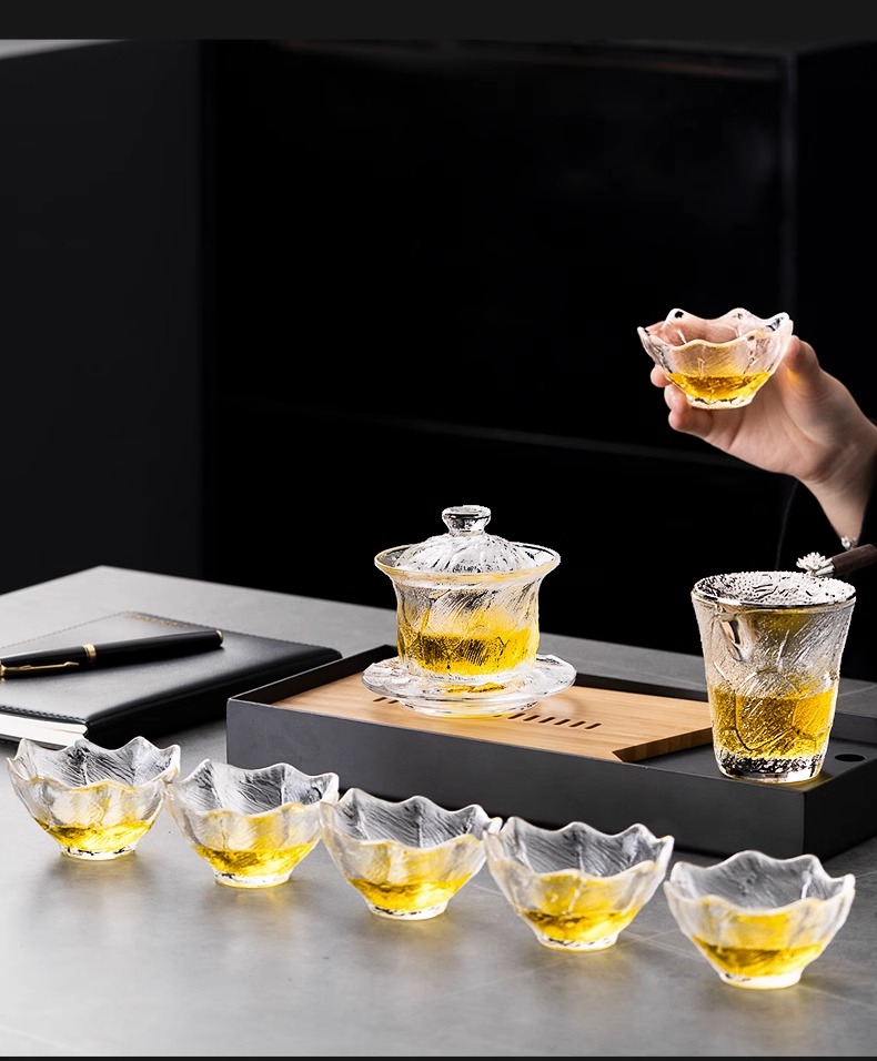 【样品特惠6折,仅1套,无货退款】整套盖碗茶具套装家用轻奢高档泡茶专用中式喝茶杯全套礼盒装璃匠-古法锤纹套组