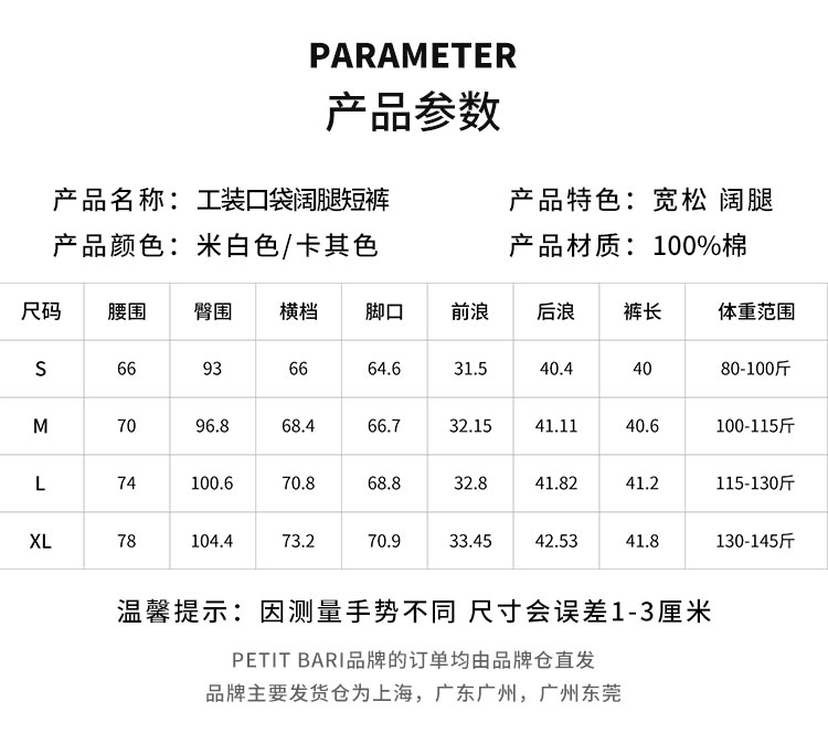 【2件9折】【Petit Bari】(多色)工装口袋阔腿短裤运动阔腿裤休闲
