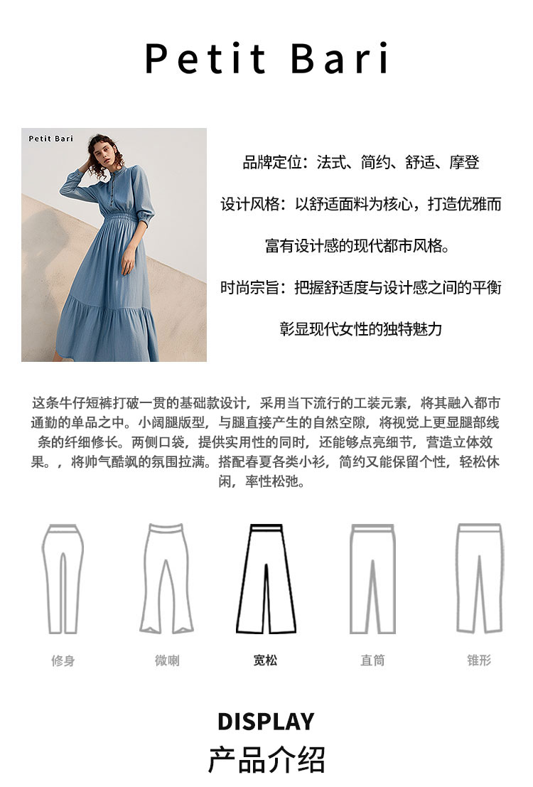 【2件9折】【Petit Bari】(多色)设计感休闲拼接阔腿牛仔裤