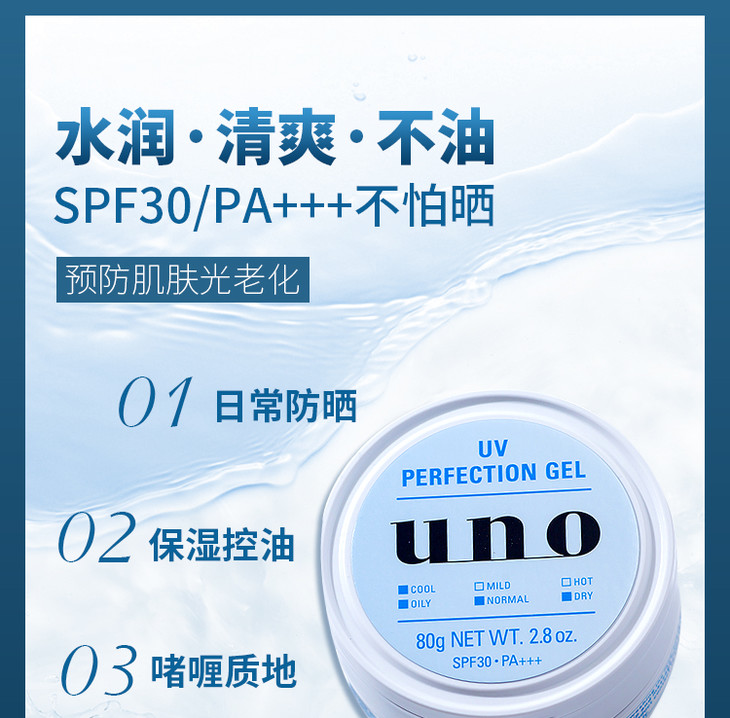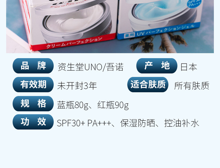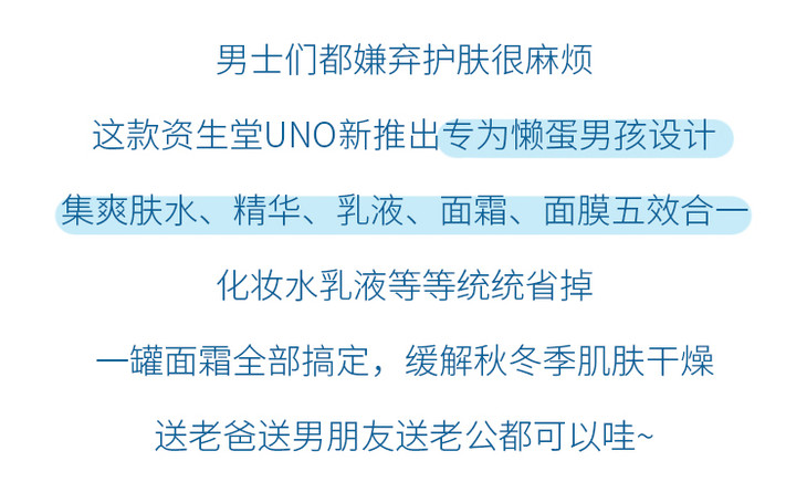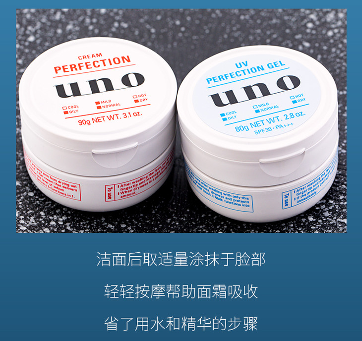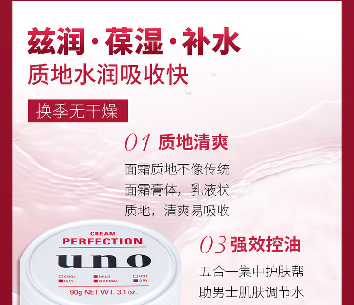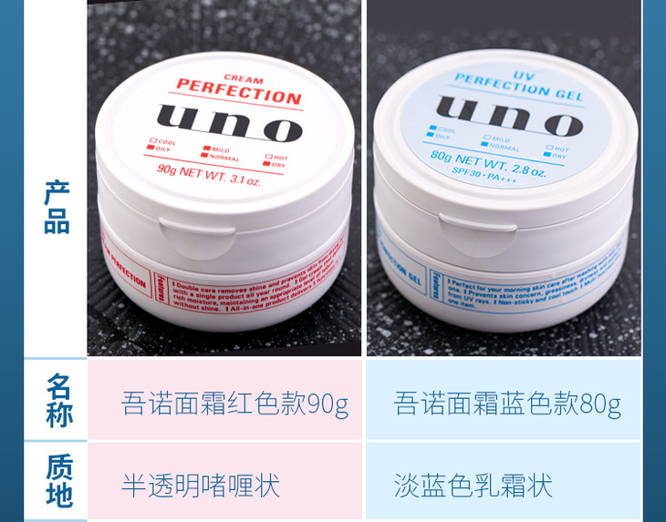 日本资生堂UNO/吾诺男士保湿面霜清爽控油补水五合一红蓝黑金色90g
