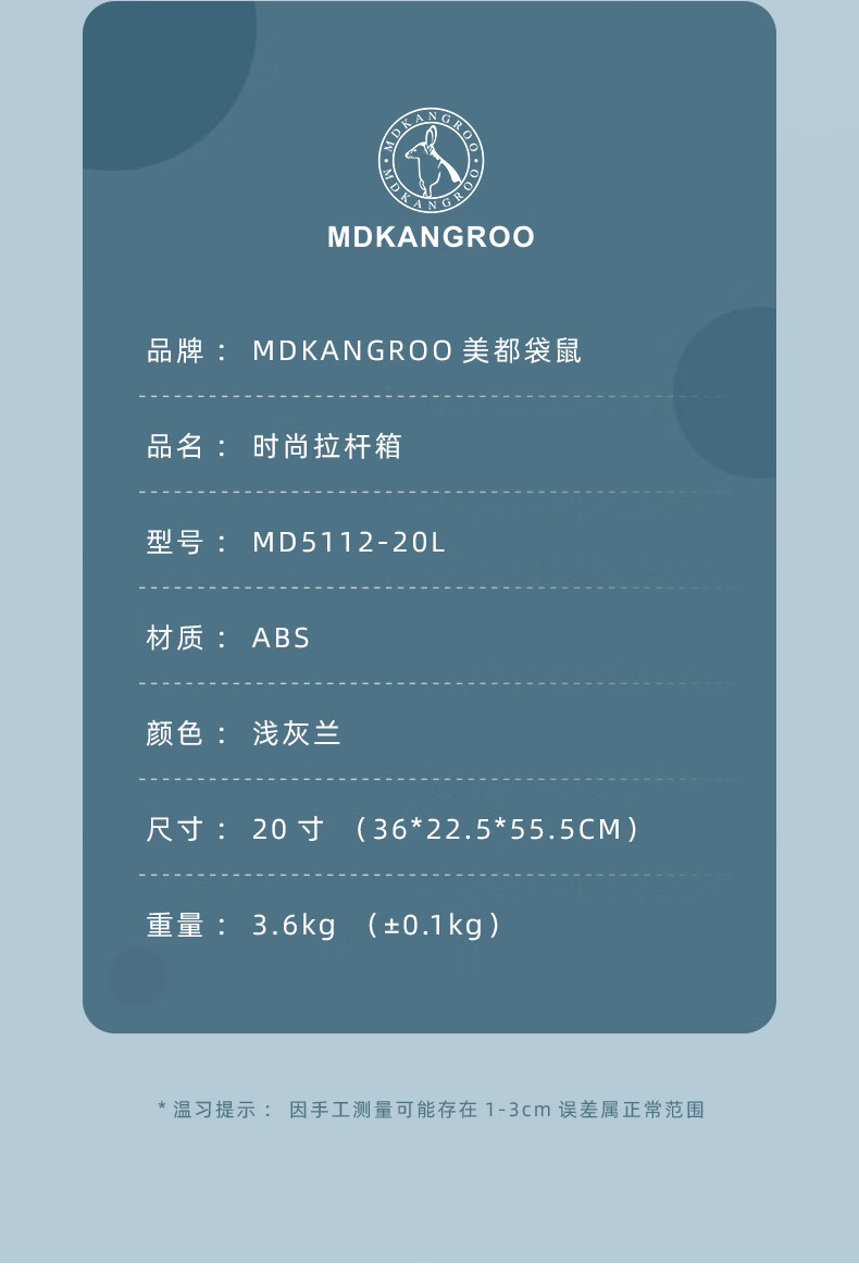 美都袋鼠海关锁旅行箱青少年多功能拉杆箱20寸登机箱MD5112-20L 20英寸