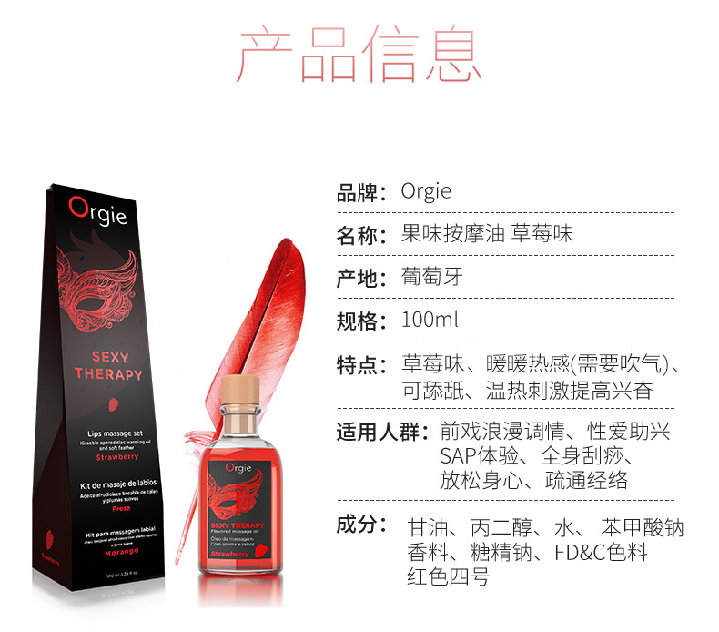 葡萄牙进口Orgie果味情趣按摩油草莓味