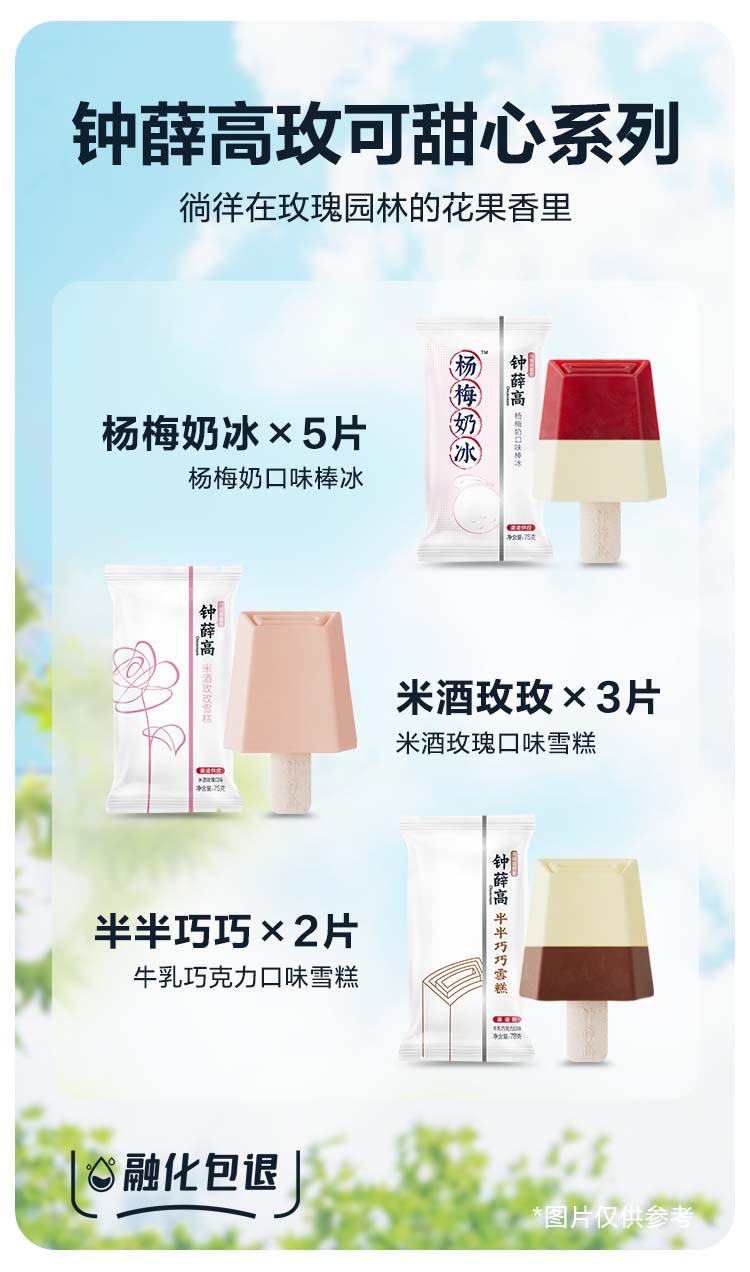 钟薛高 玫可甜心系列 杨梅奶冰*5米酒玫玫*3半半巧巧*2 雪糕冰淇淋[福利品]