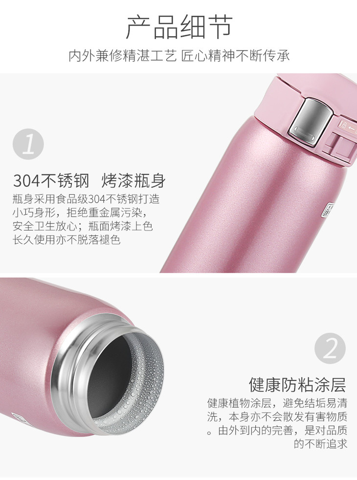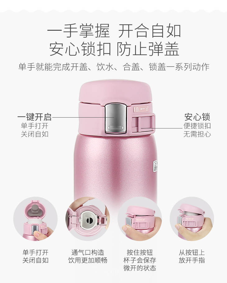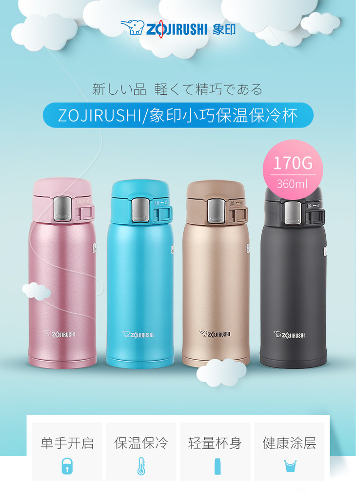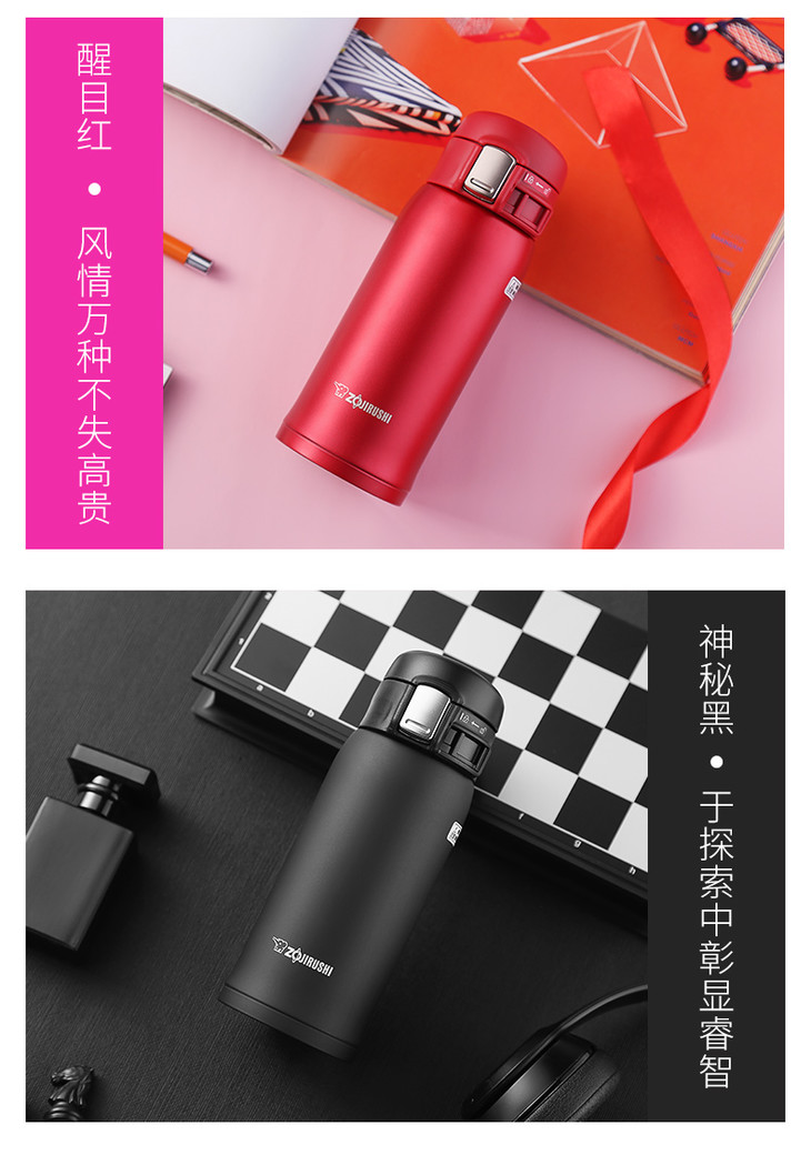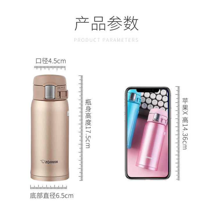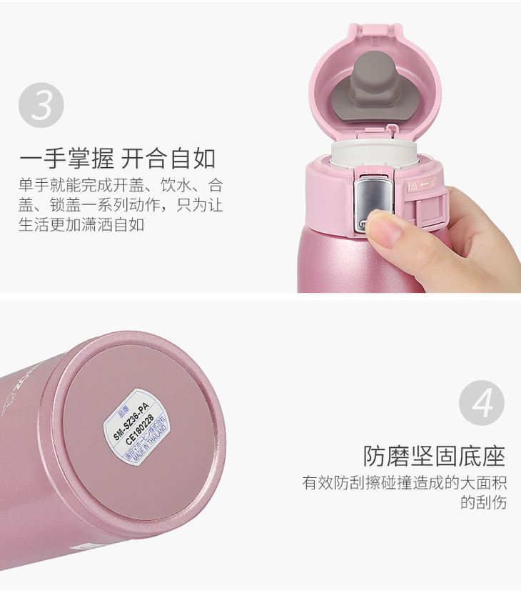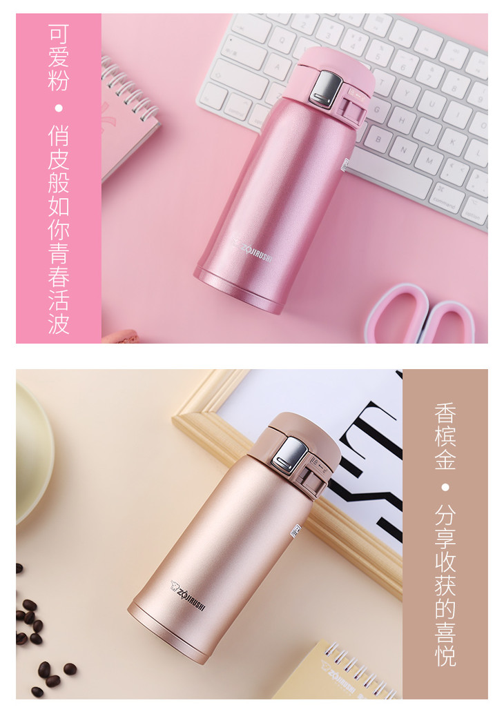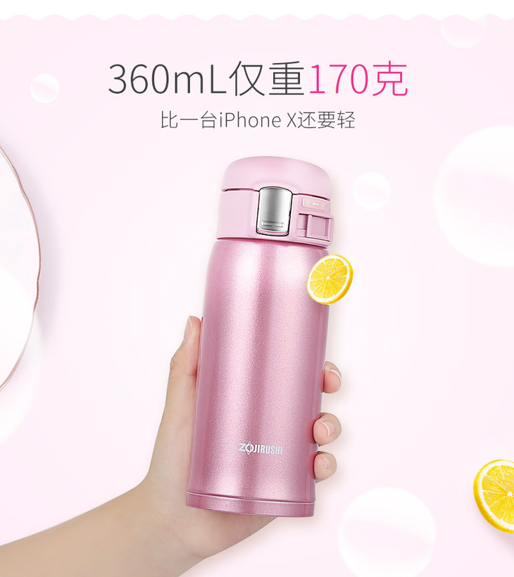 象印(ZO JIRUSHI)保温杯SM-SZ36真空不锈钢单手弹盖男女时尚便携商务水杯360ml 粉色PA