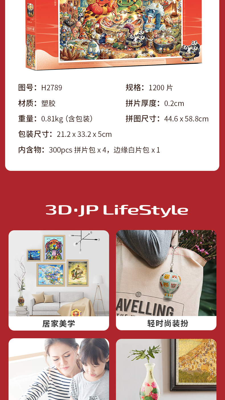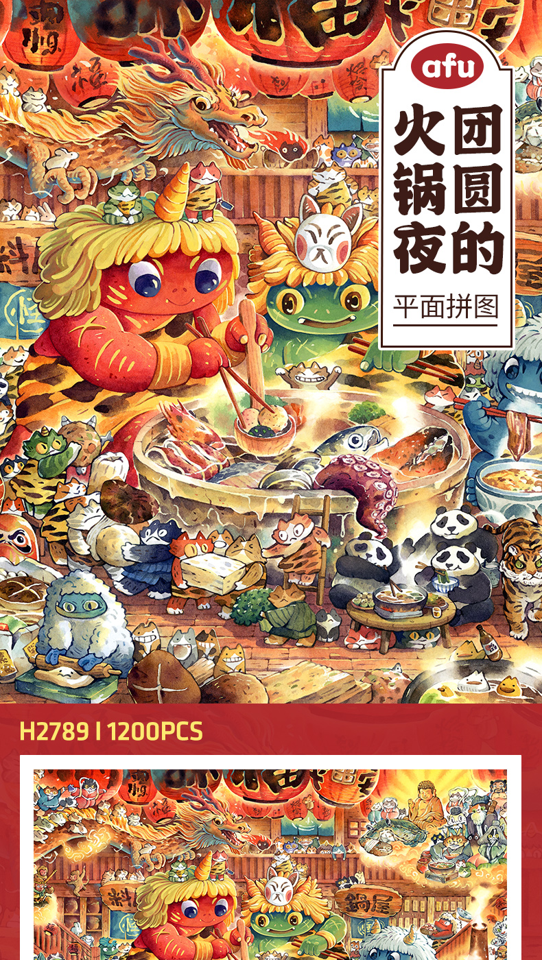 【折扣产品 不退换】1200片 平面拼图 塑料拼图 H2789 afu-团圆的火锅夜
