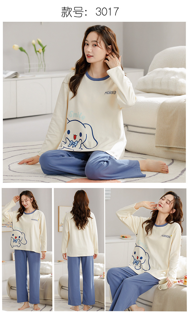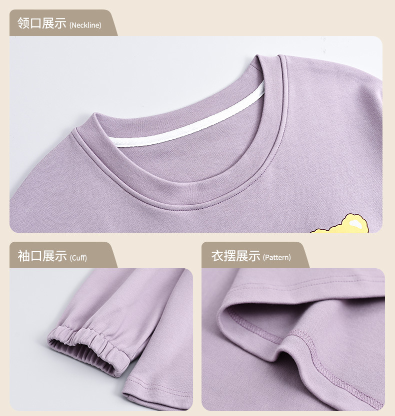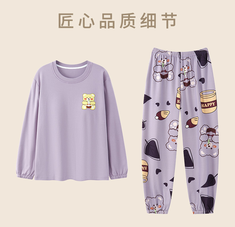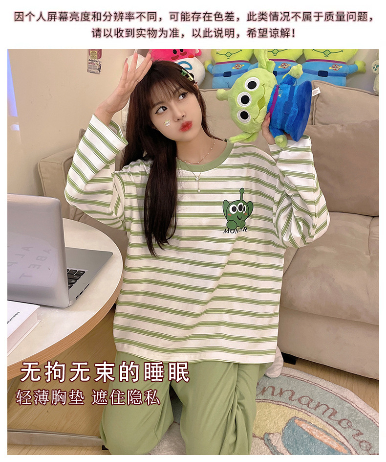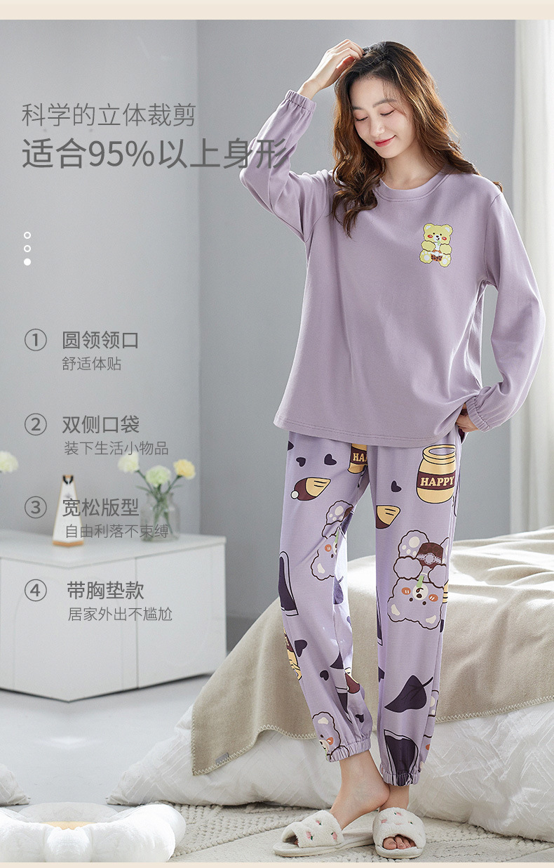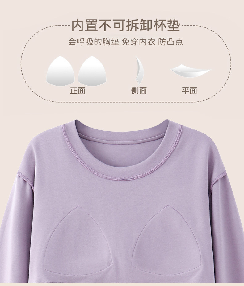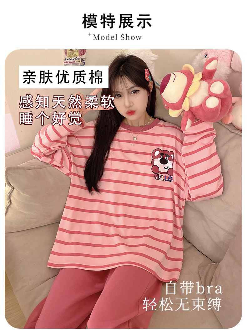 秋季新款长袖可爱卡通女睡衣免穿文胸内衣套装外穿自带胸垫家居服
