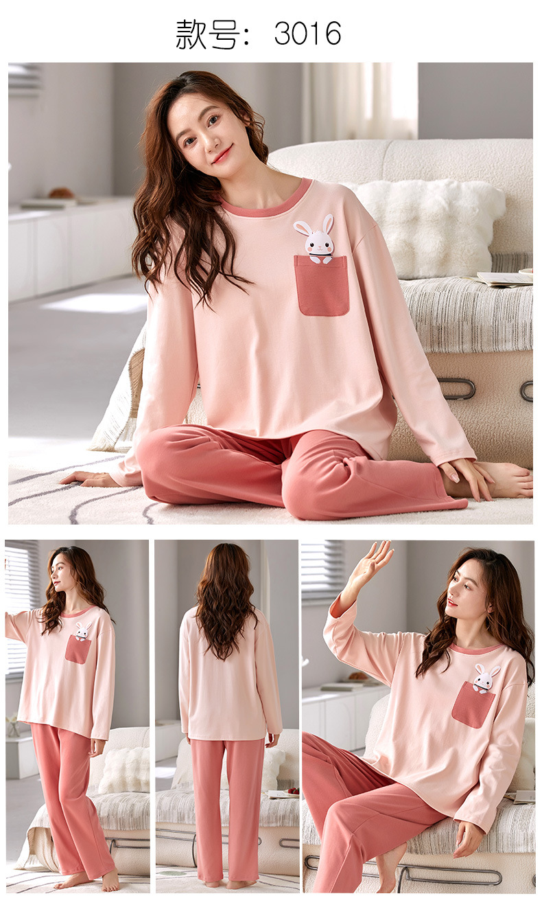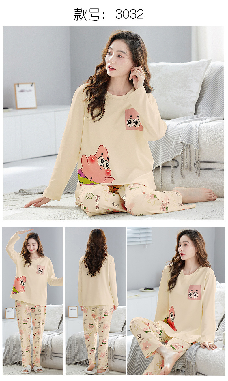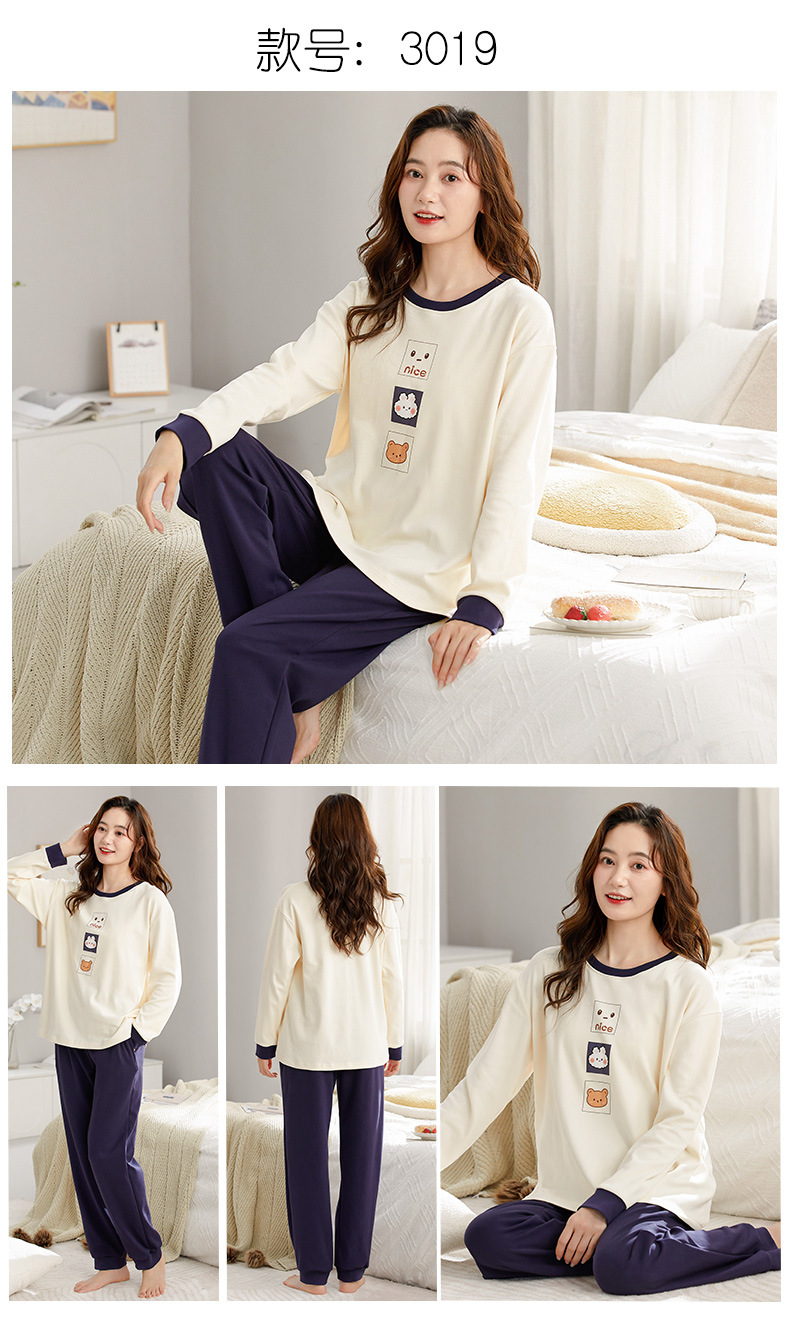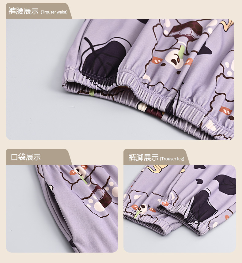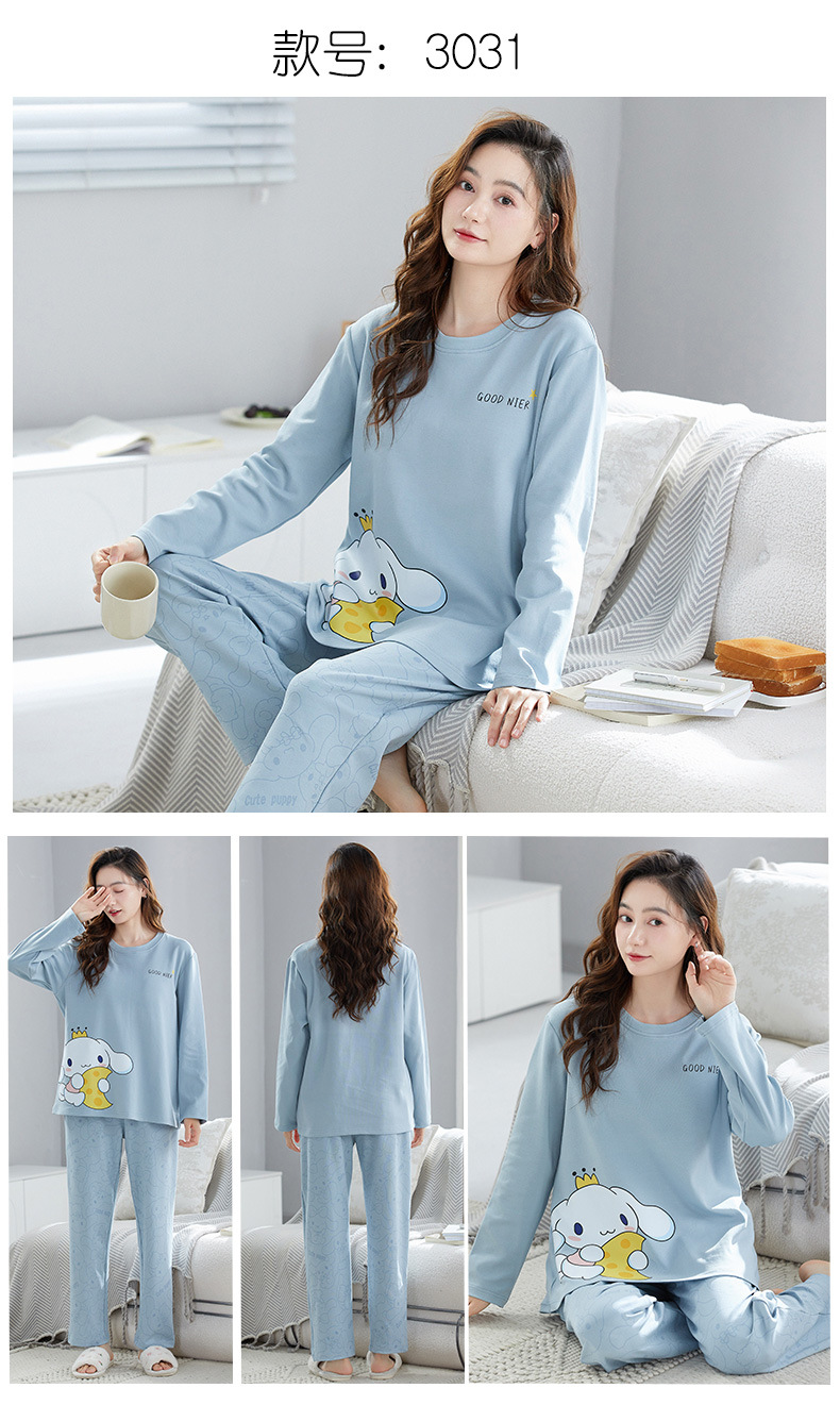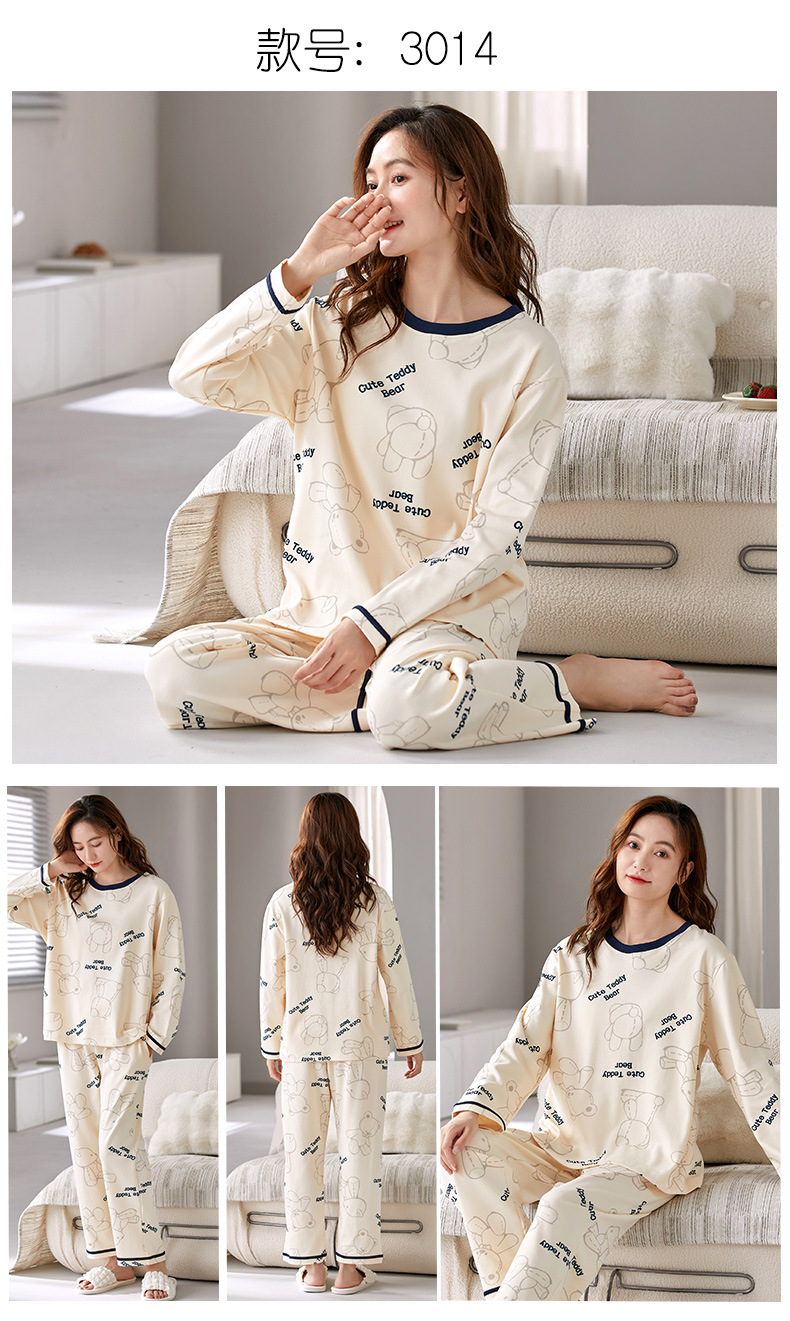 秋季新款长袖可爱卡通女睡衣免穿文胸内衣套装外穿自带胸垫家居服