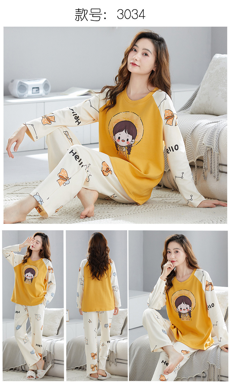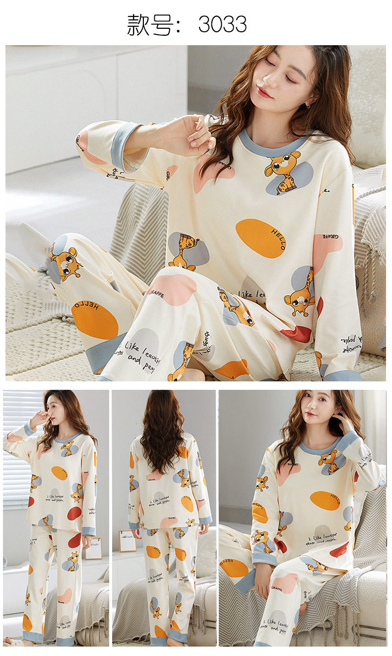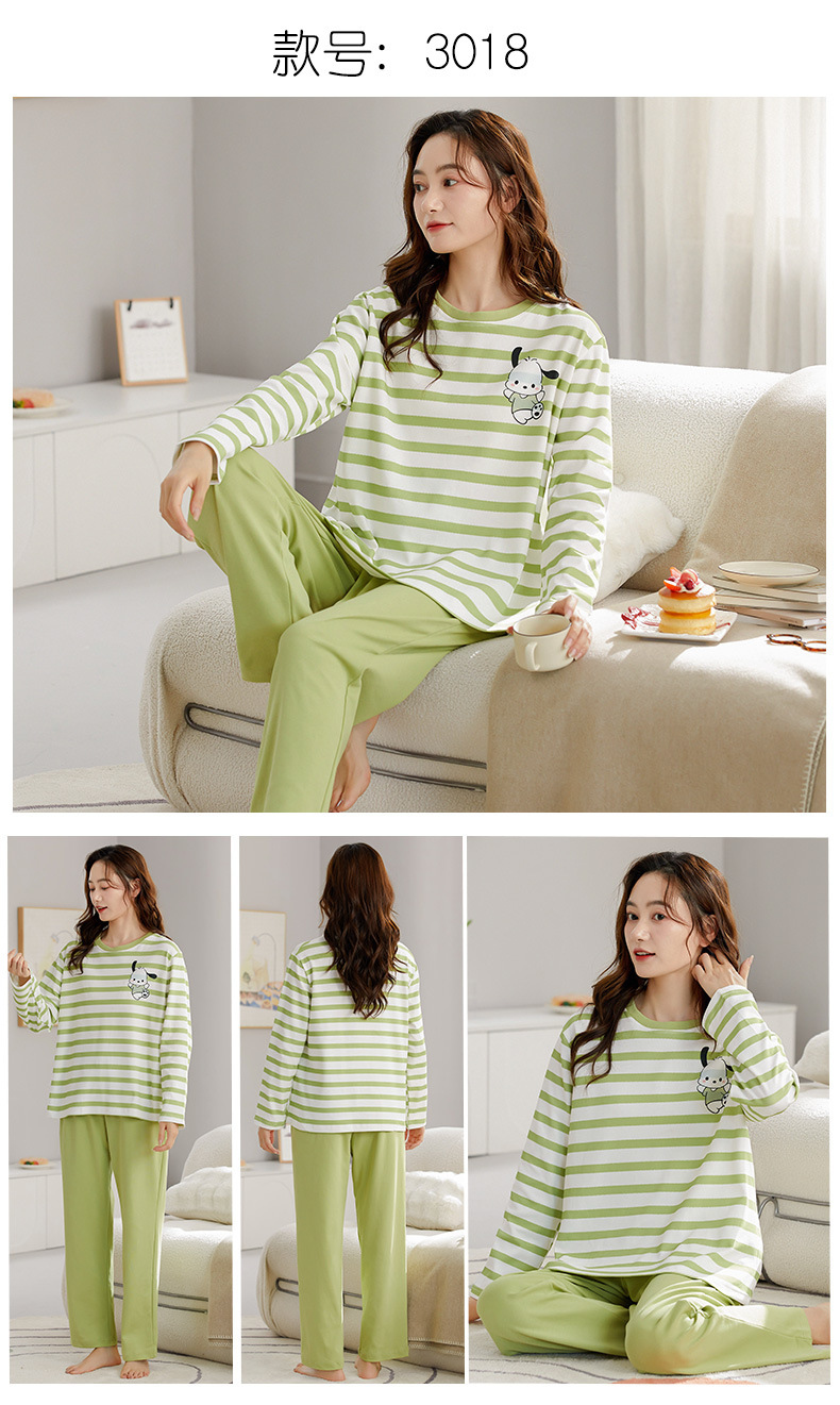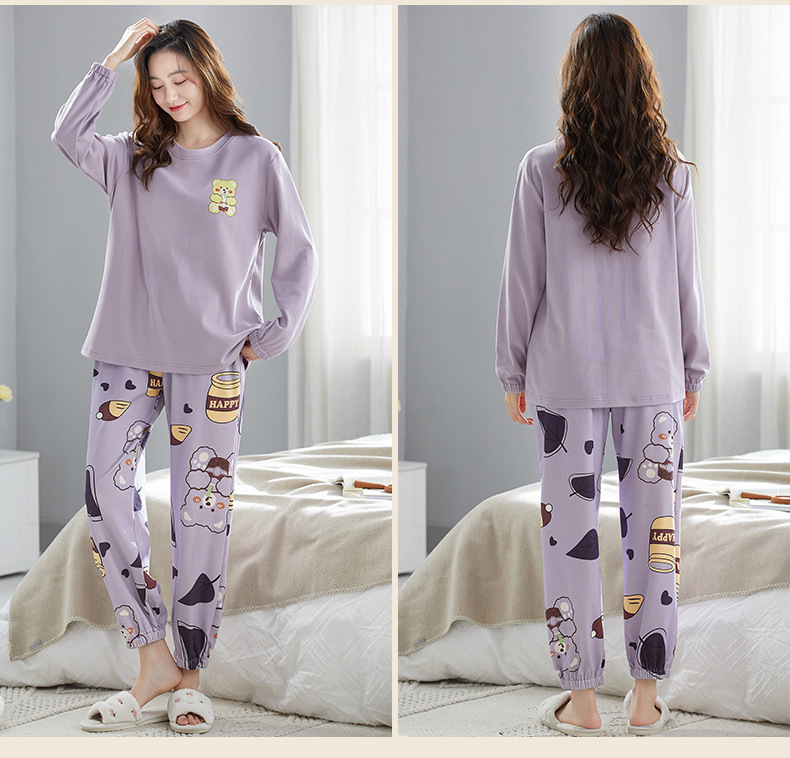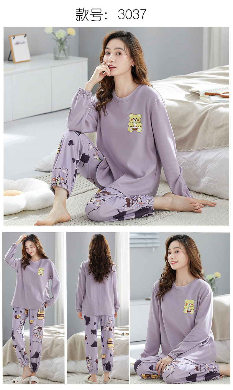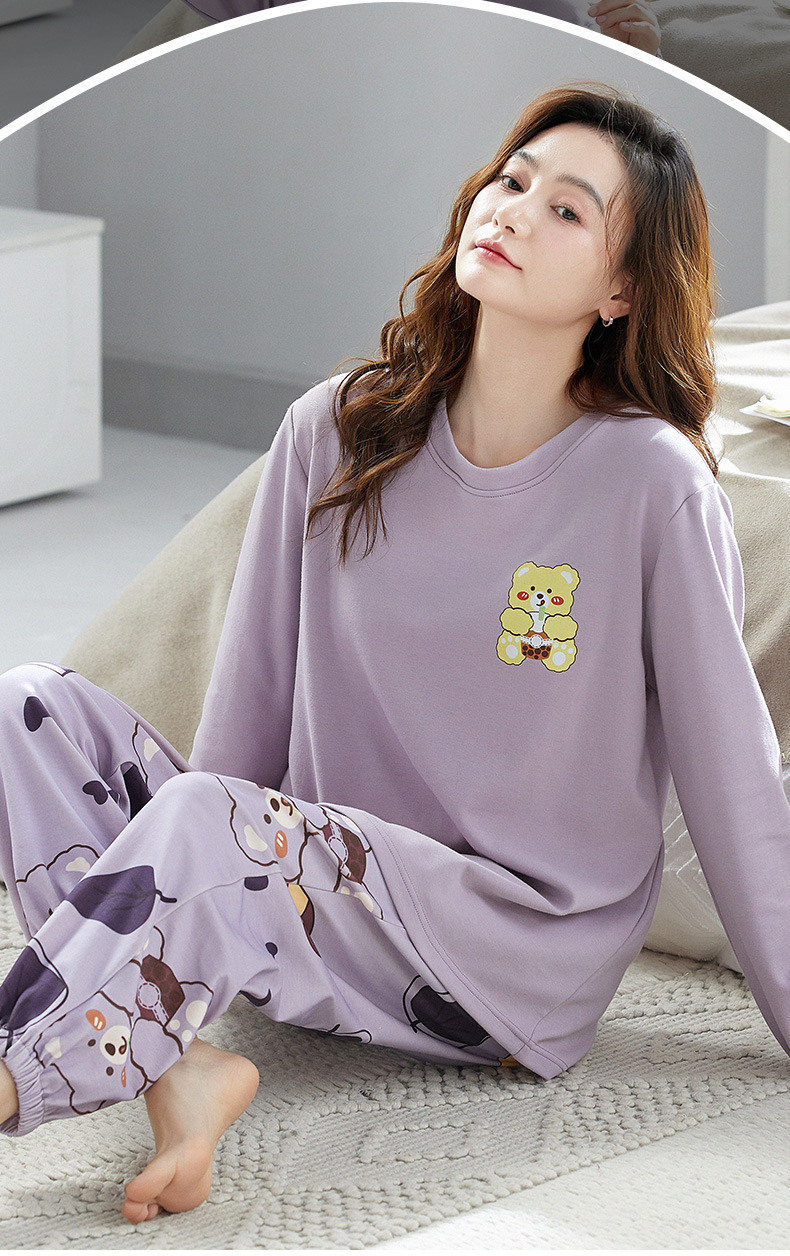 秋季新款长袖可爱卡通女睡衣免穿文胸内衣套装外穿自带胸垫家居服