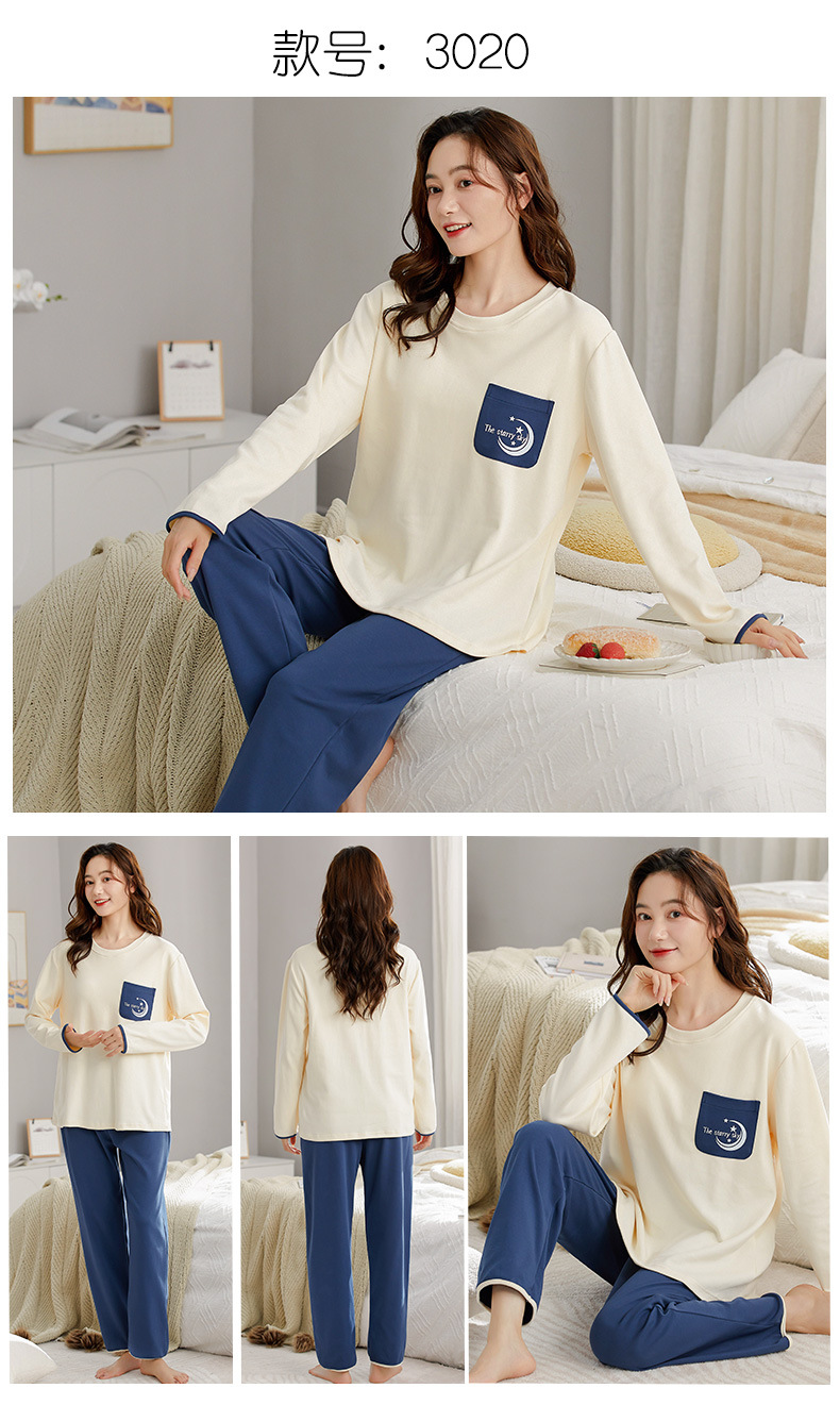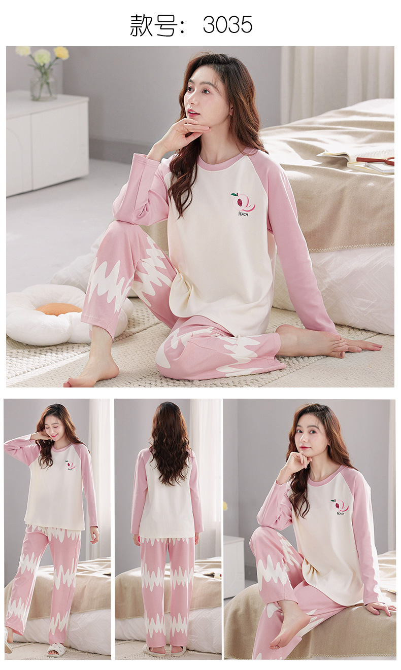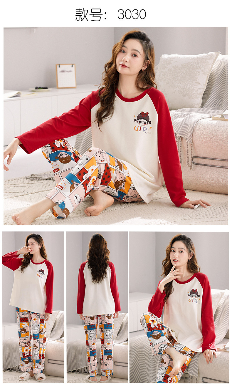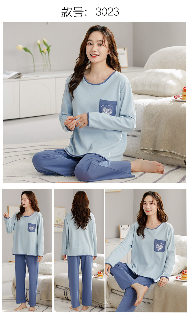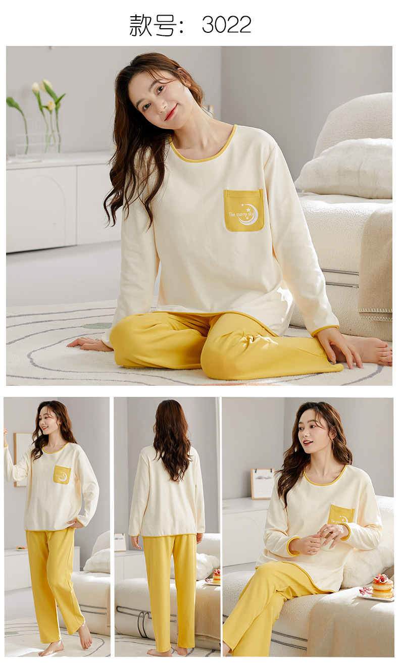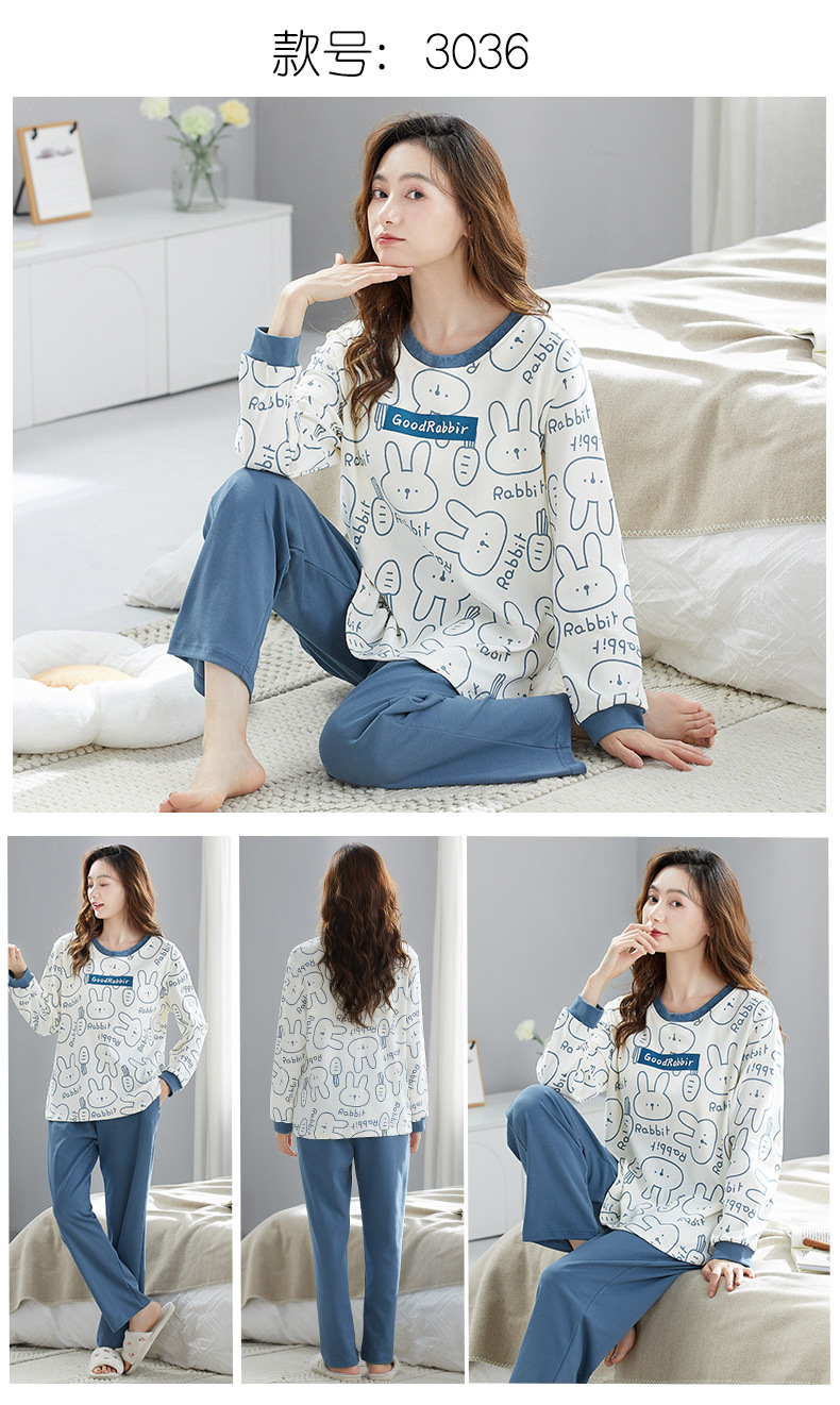 秋季新款长袖可爱卡通女睡衣免穿文胸内衣套装外穿自带胸垫家居服