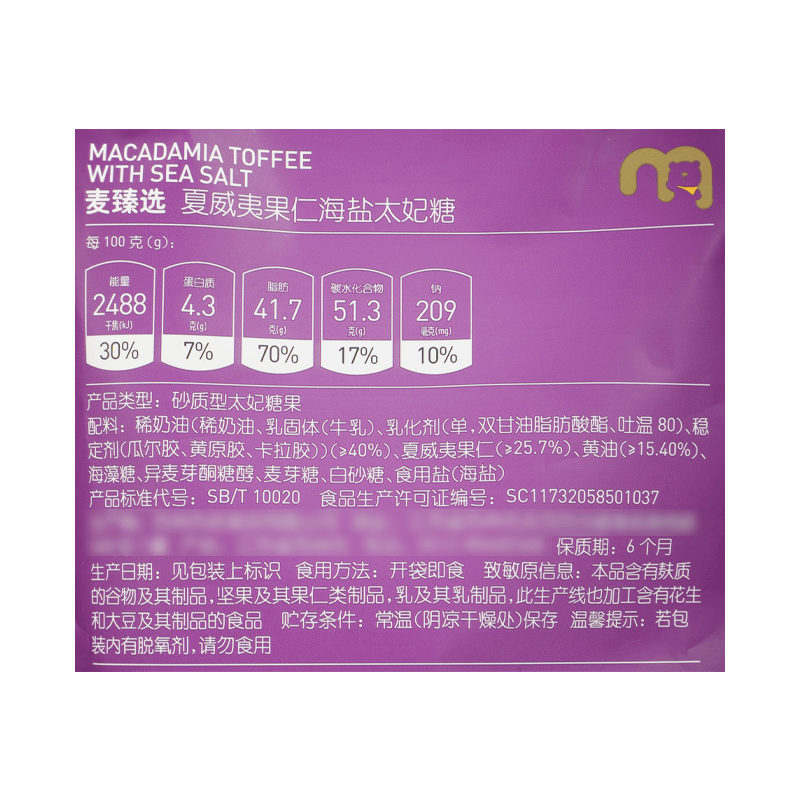 【MDL】麦臻选夏威夷果仁海盐太妃糖400g