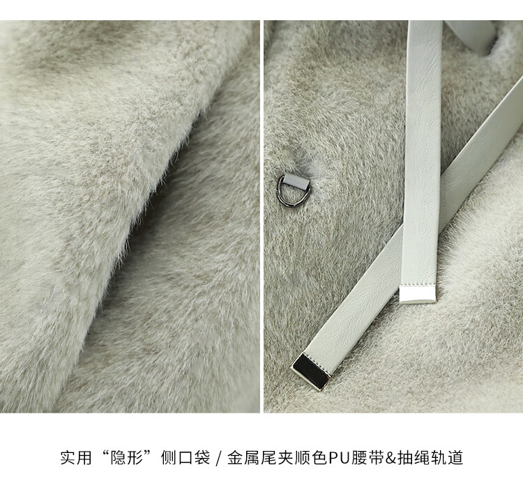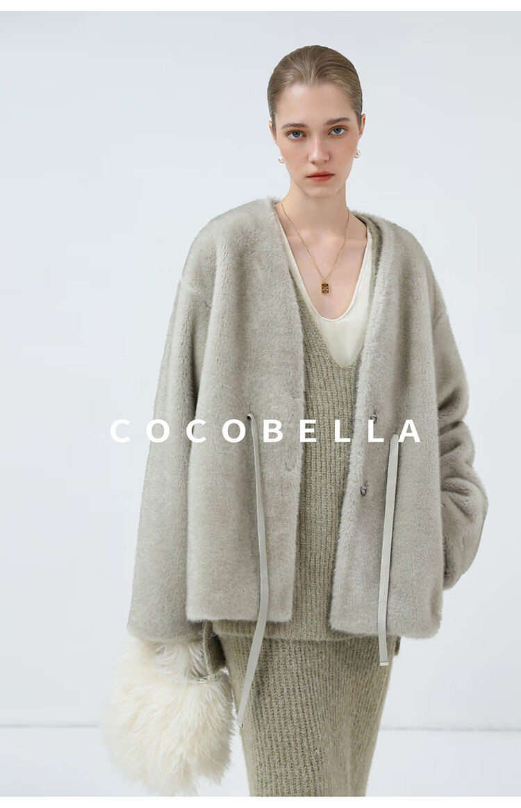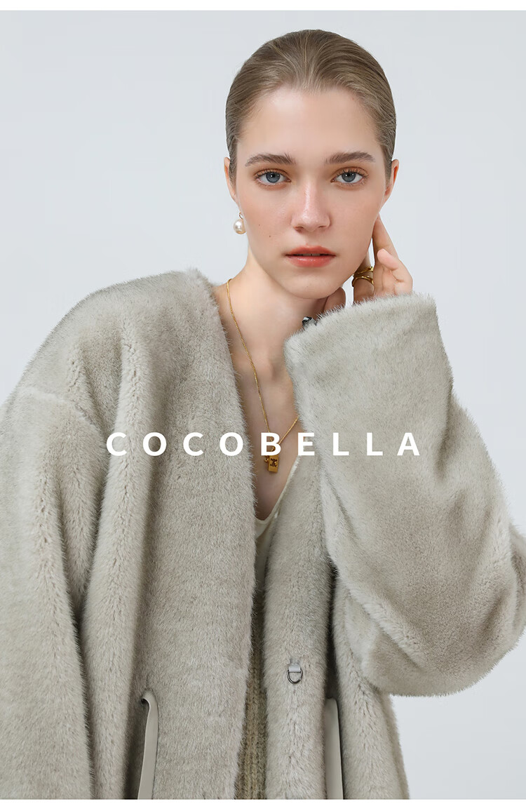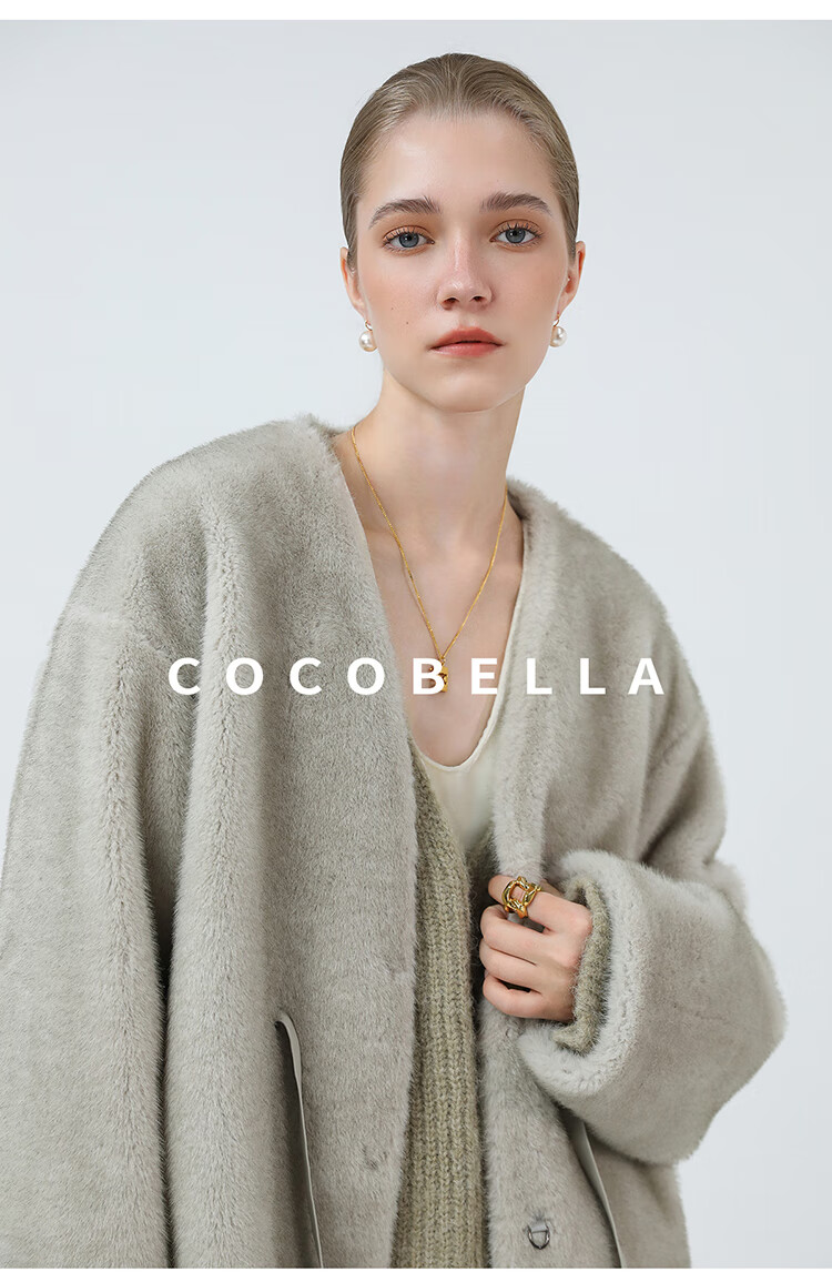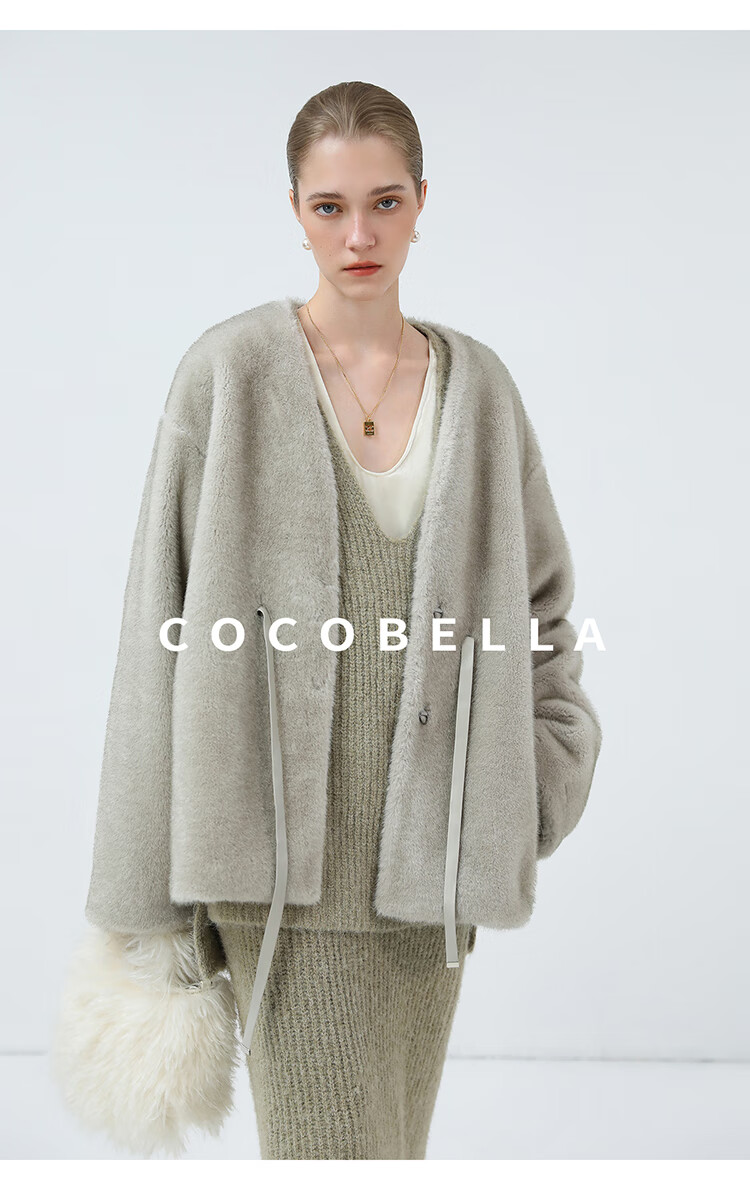 COCOBELLA高奢原色仿貂绒环保皮草外套PU腰带短款大衣FU3003-3