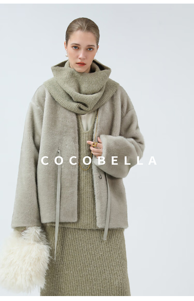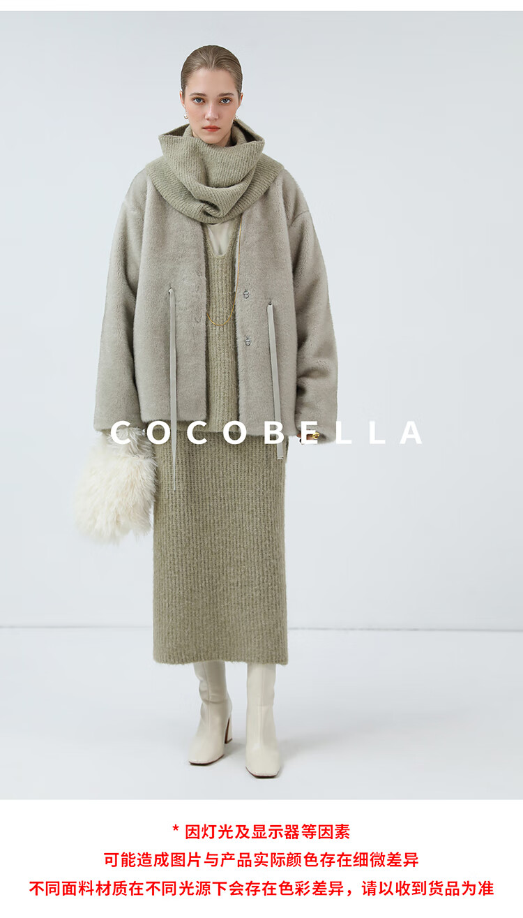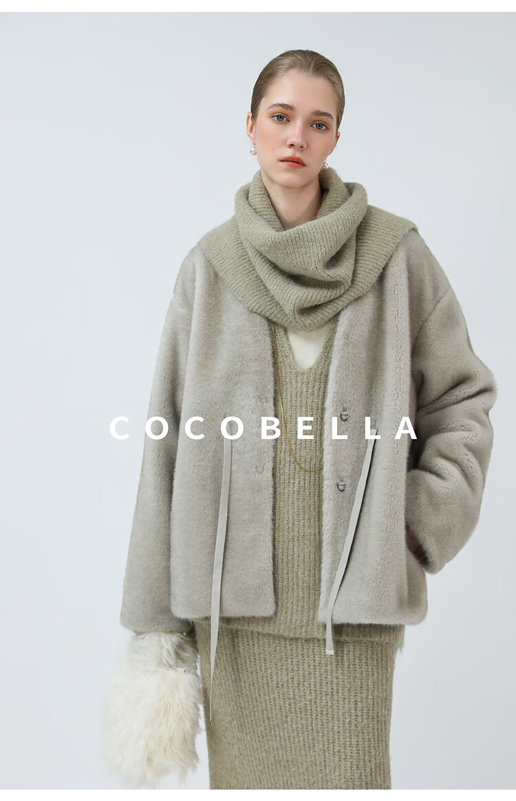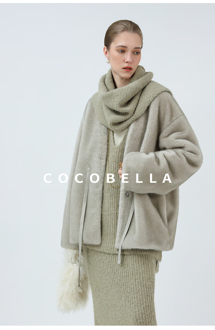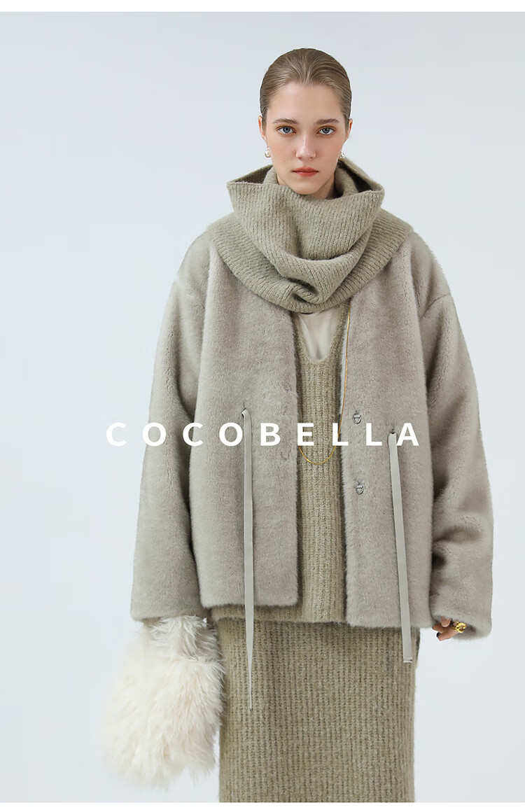 COCOBELLA高奢原色仿貂绒环保皮草外套PU腰带短款大衣FU3003-3