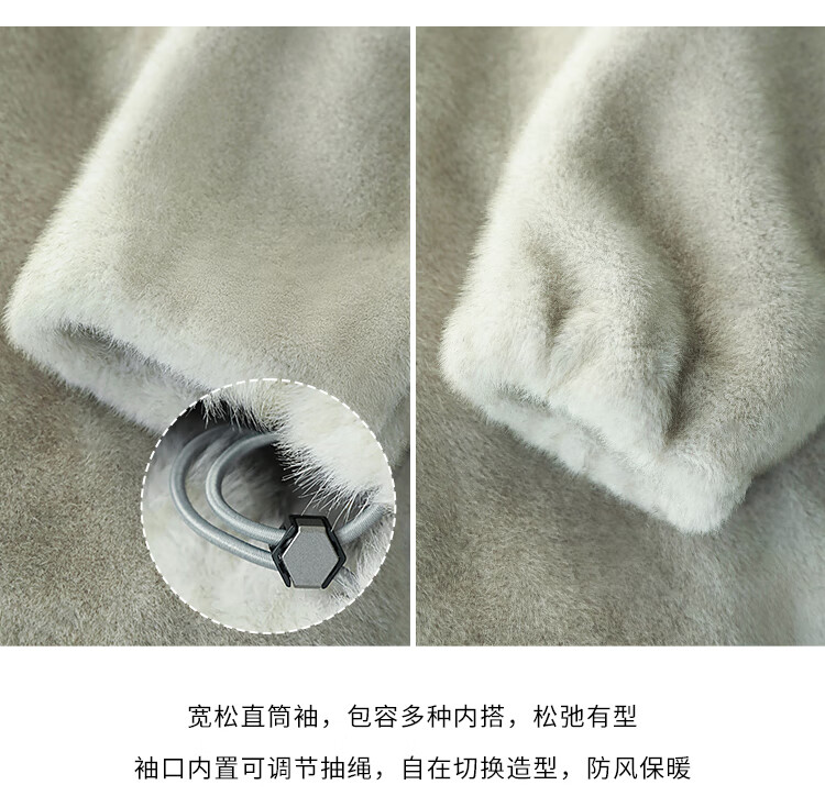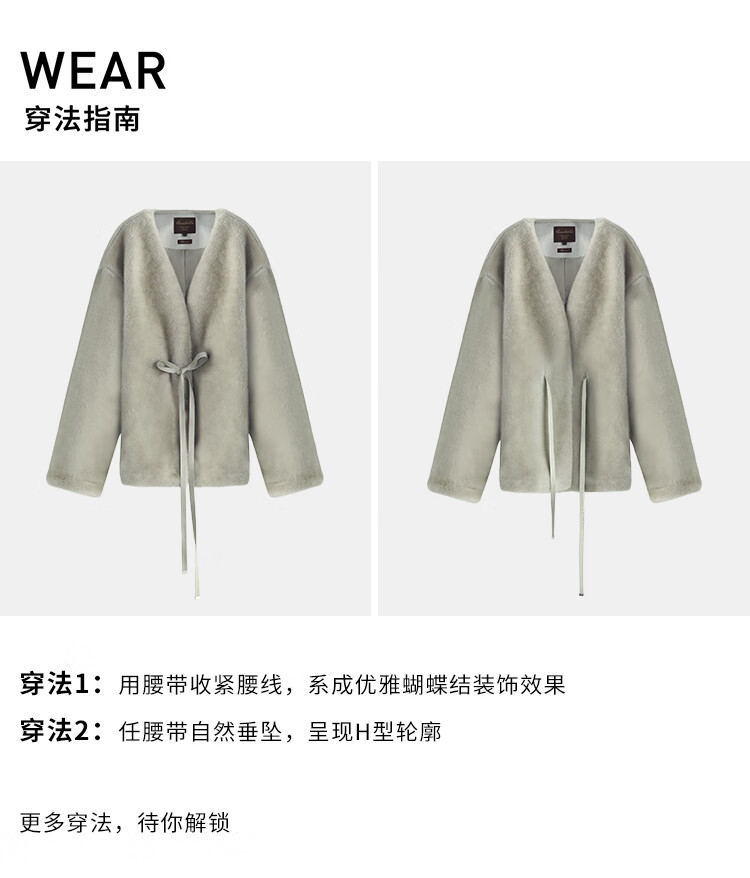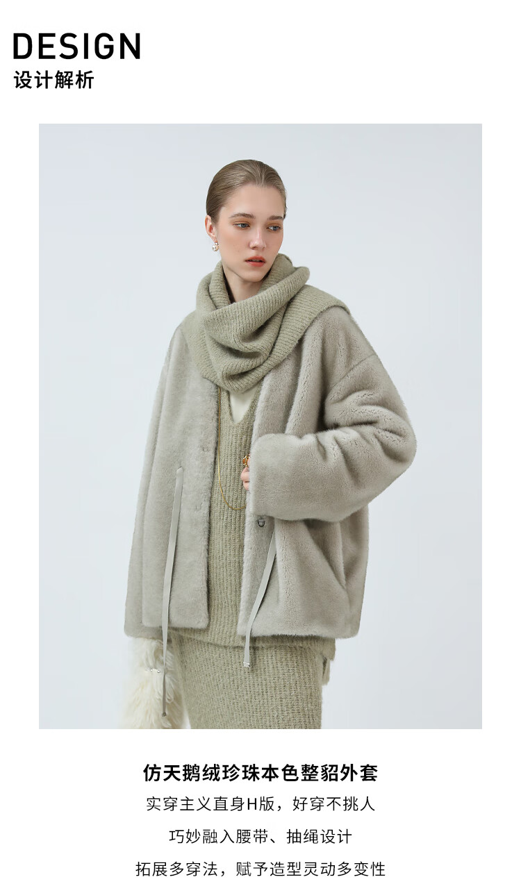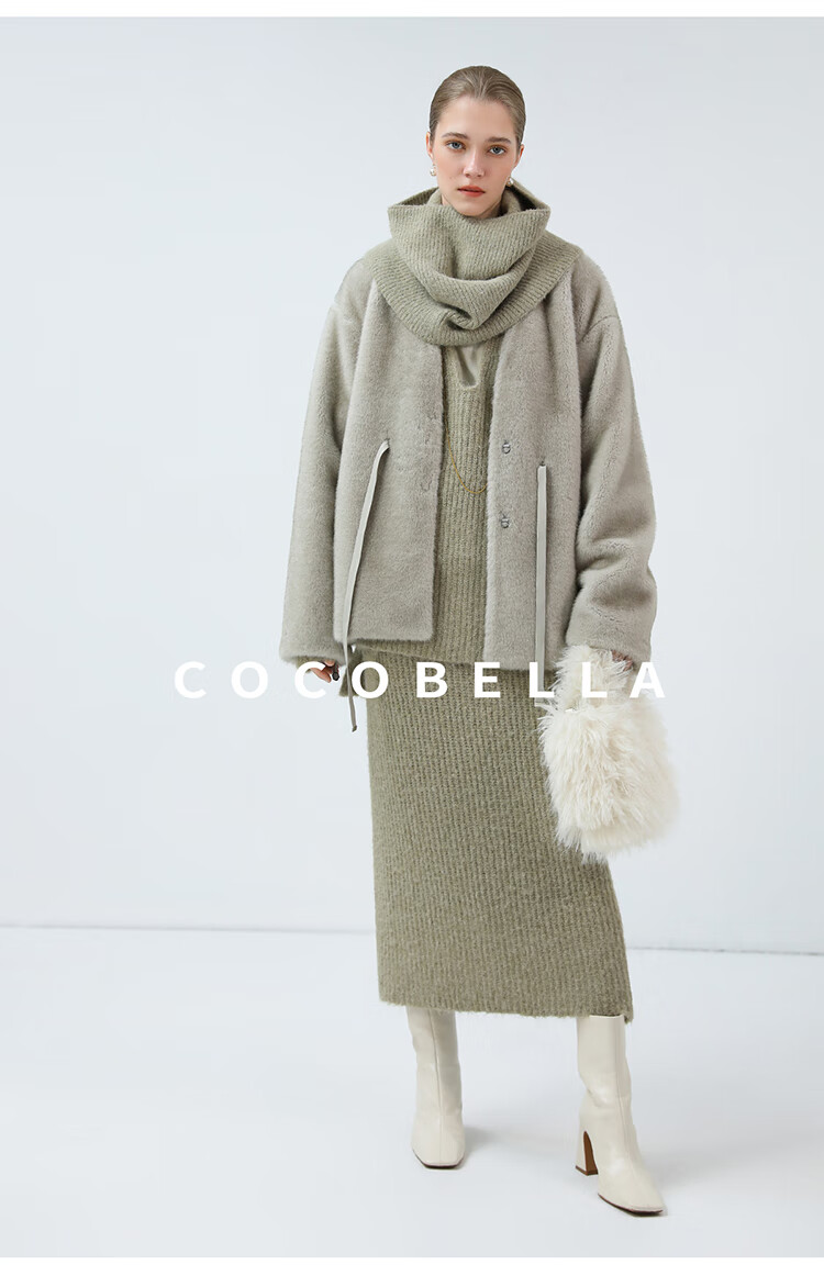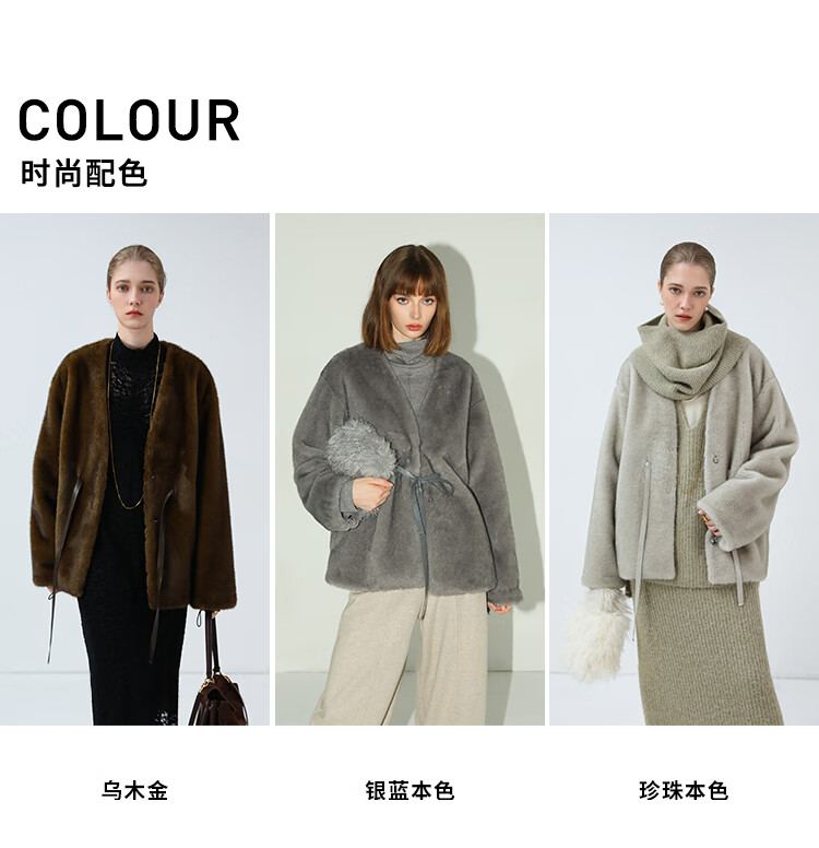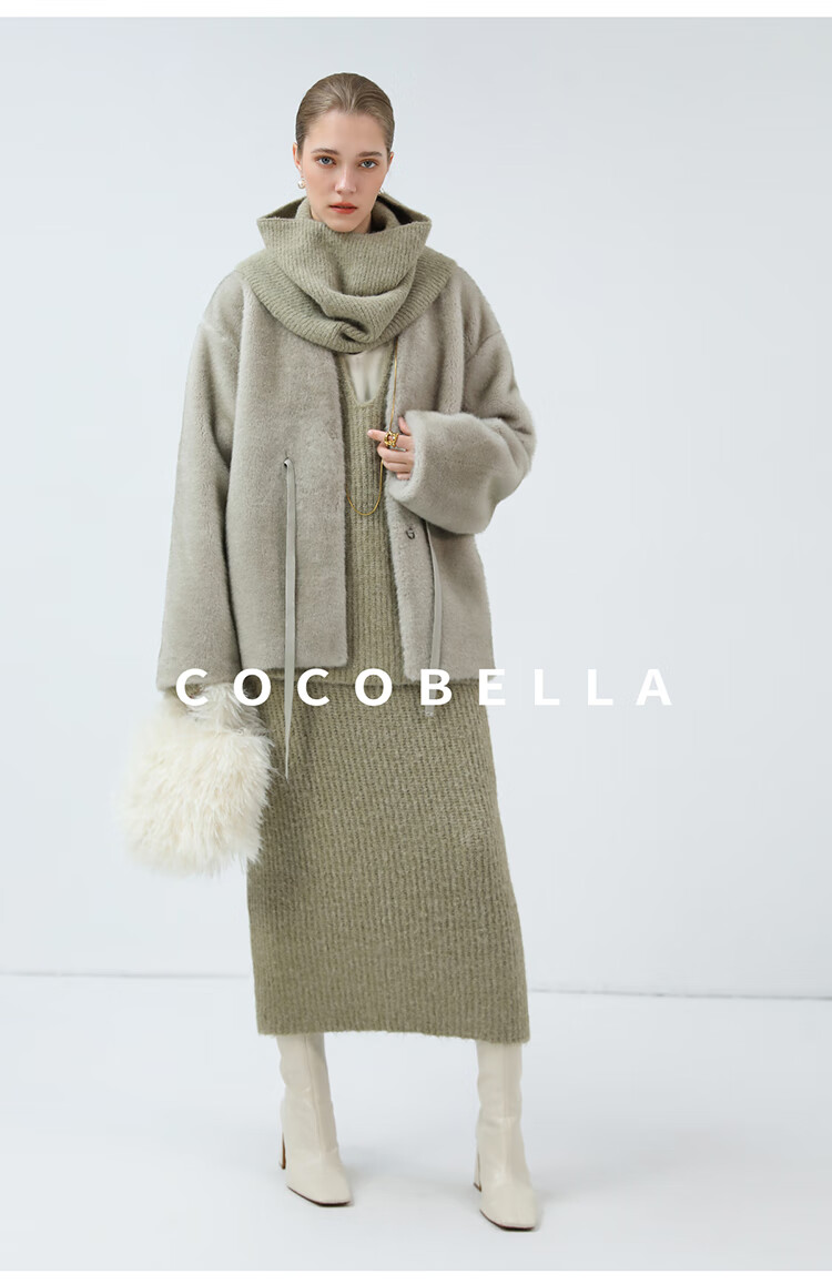 COCOBELLA高奢原色仿貂绒环保皮草外套PU腰带短款大衣FU3003-3