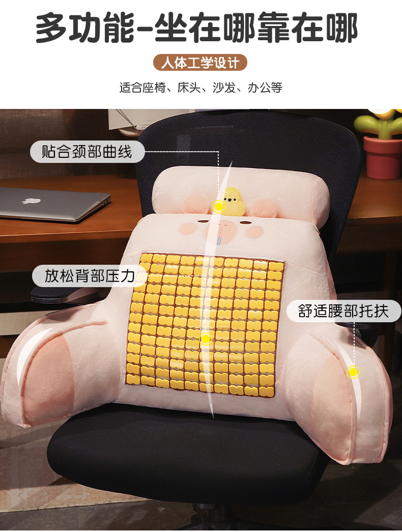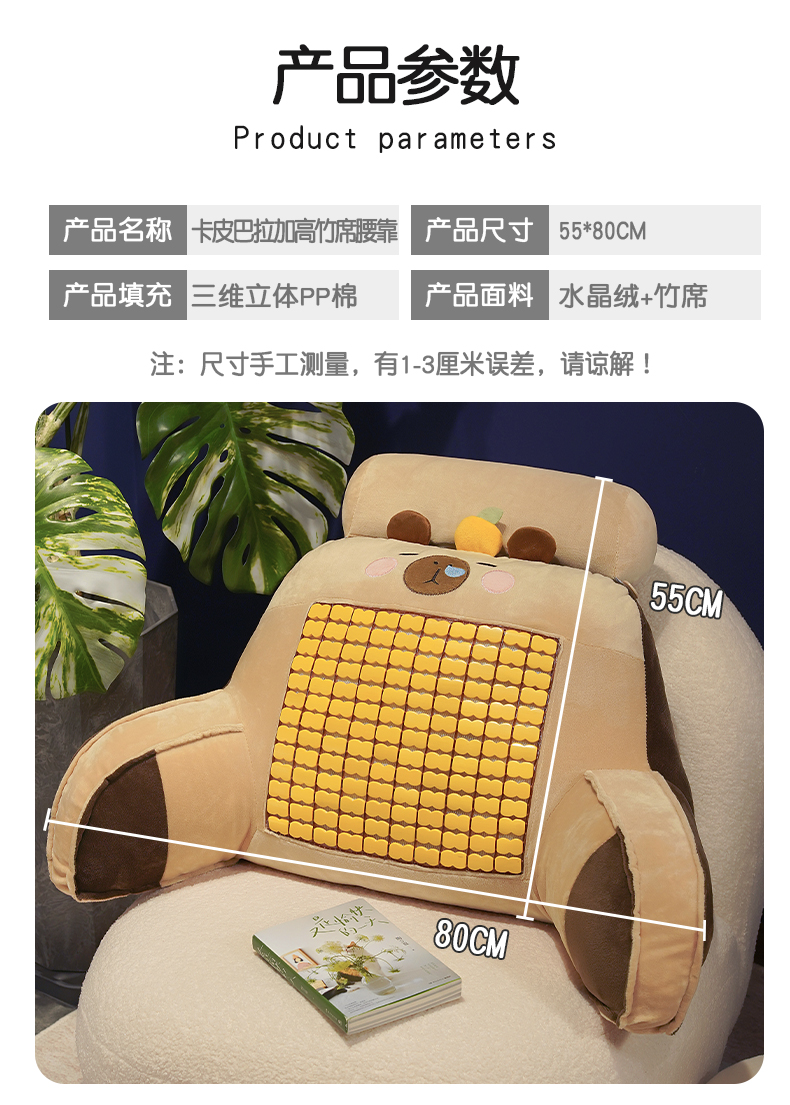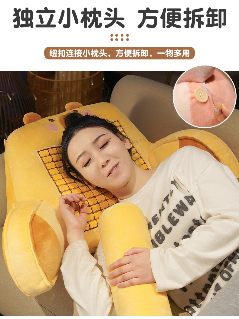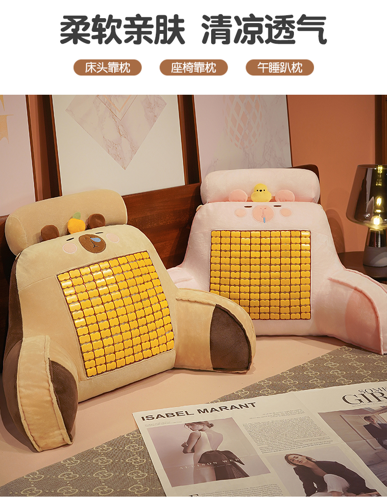 自然醒卡皮巴拉加高竹席拥抱式腰靠夏季凉席大靠背宿舍床上玩手机床靠枕头抱枕QYL