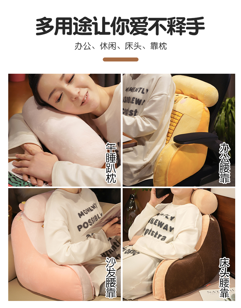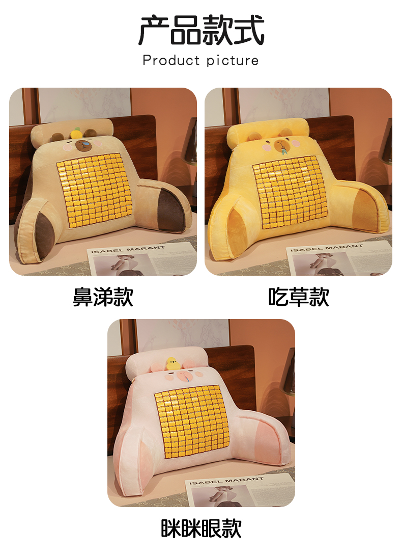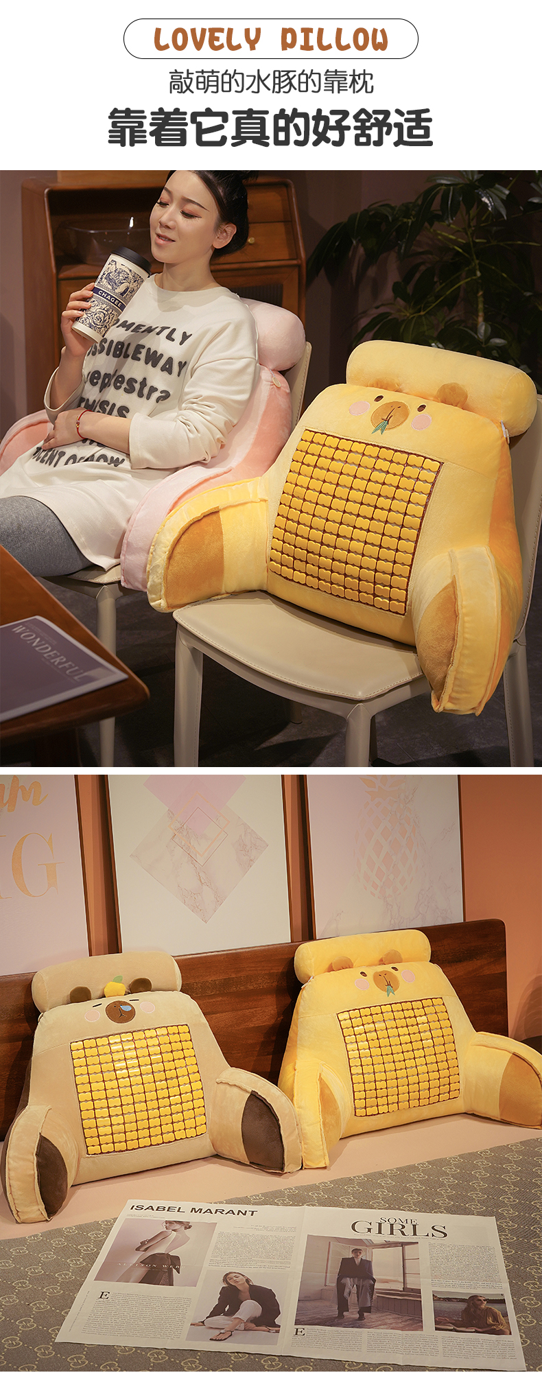 自然醒卡皮巴拉加高竹席拥抱式腰靠夏季凉席大靠背宿舍床上玩手机床靠枕头抱枕QYL