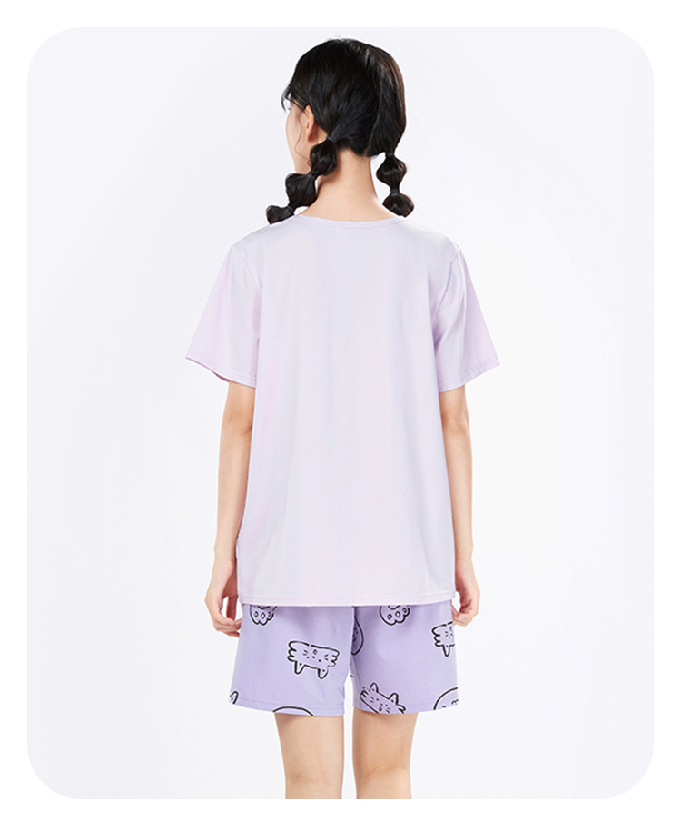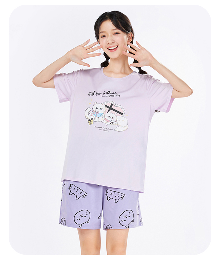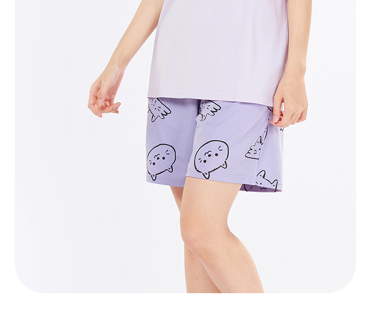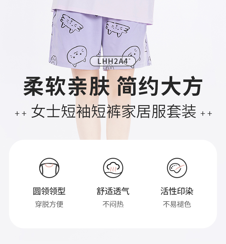都市丽人生活家居春夏睡衣女冰雪丝印花家居服薄款短袖短裤女士丝质套装LH42E1