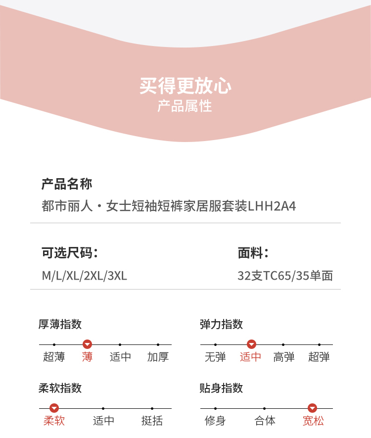 都市丽人超值精选女士特价棉质短袖套装薄32支TC65/35单面短袖类LHH2A4