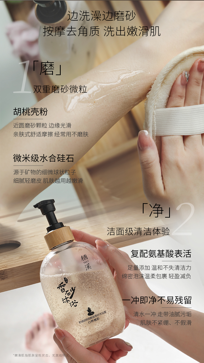 栖溪·野境胡桃烟酰胺香砂沐浴露,沐浴磨砂二合一,抛光皮肤,清理顽固废角质和污垢【G】