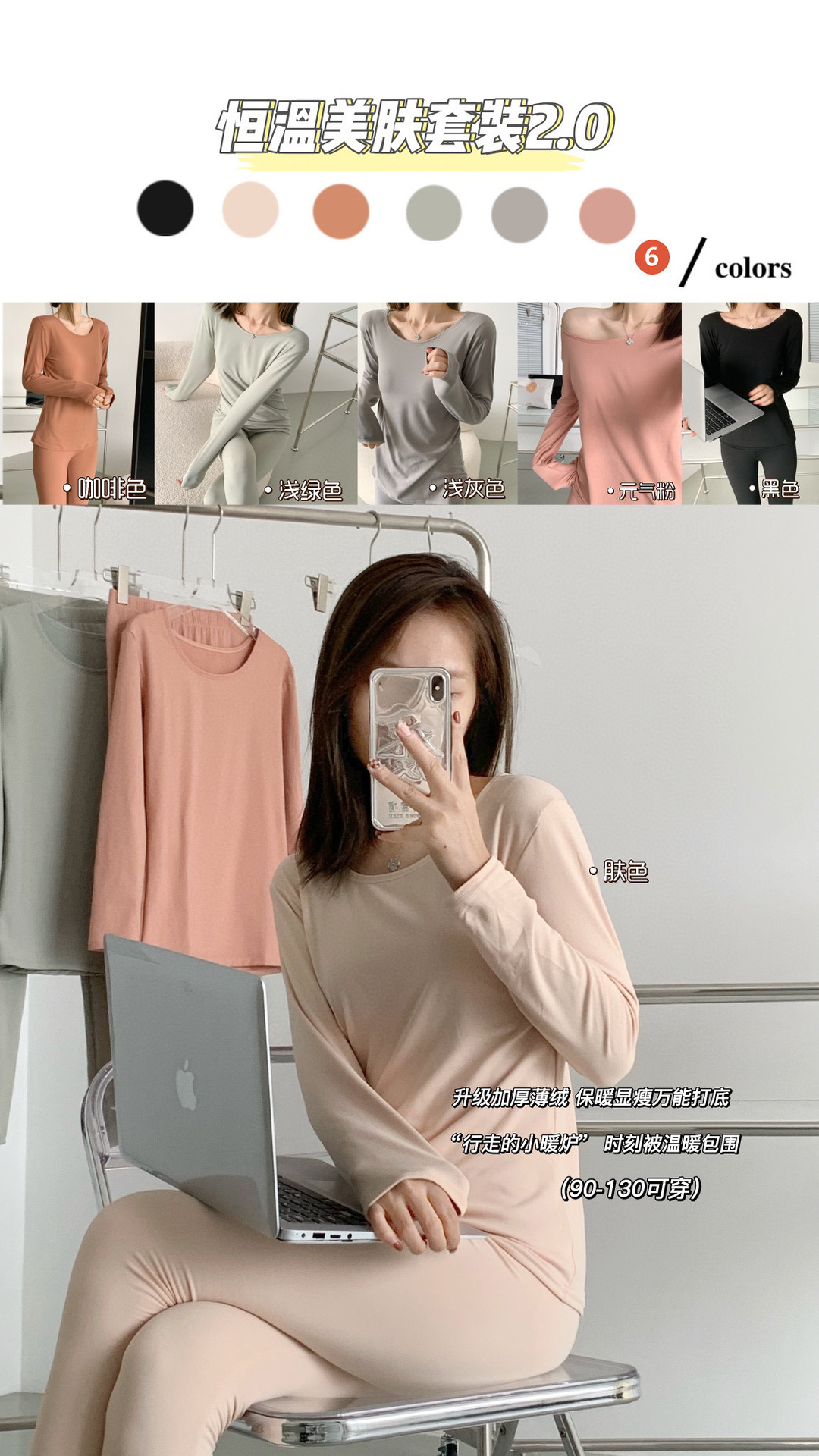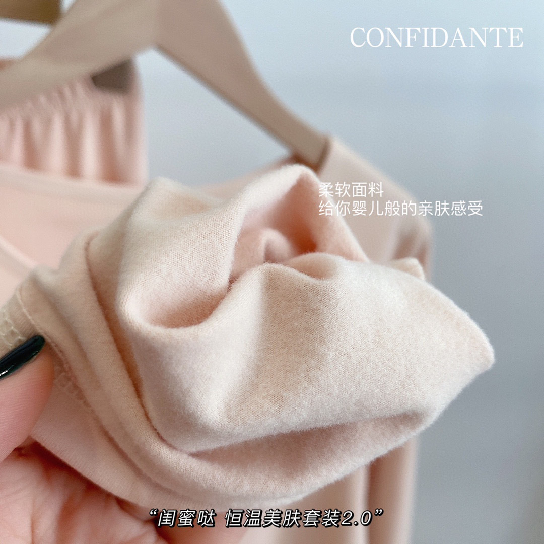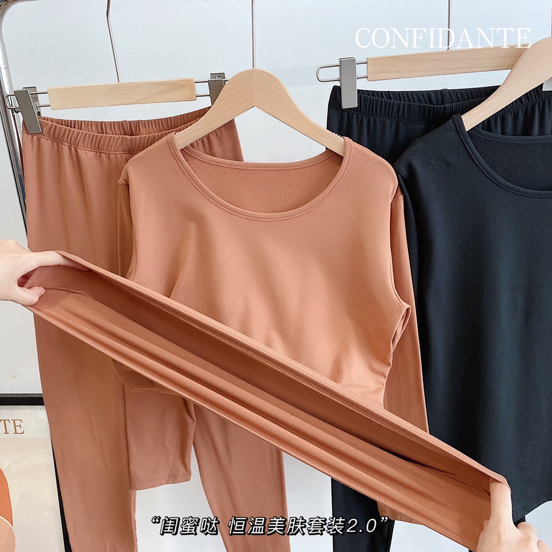 6色可选 闺蜜哒恒温美肤套装2.0面膜磨毛薄绒发热保暖内衣打底显瘦秋衣裤