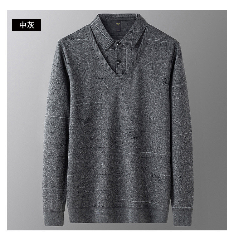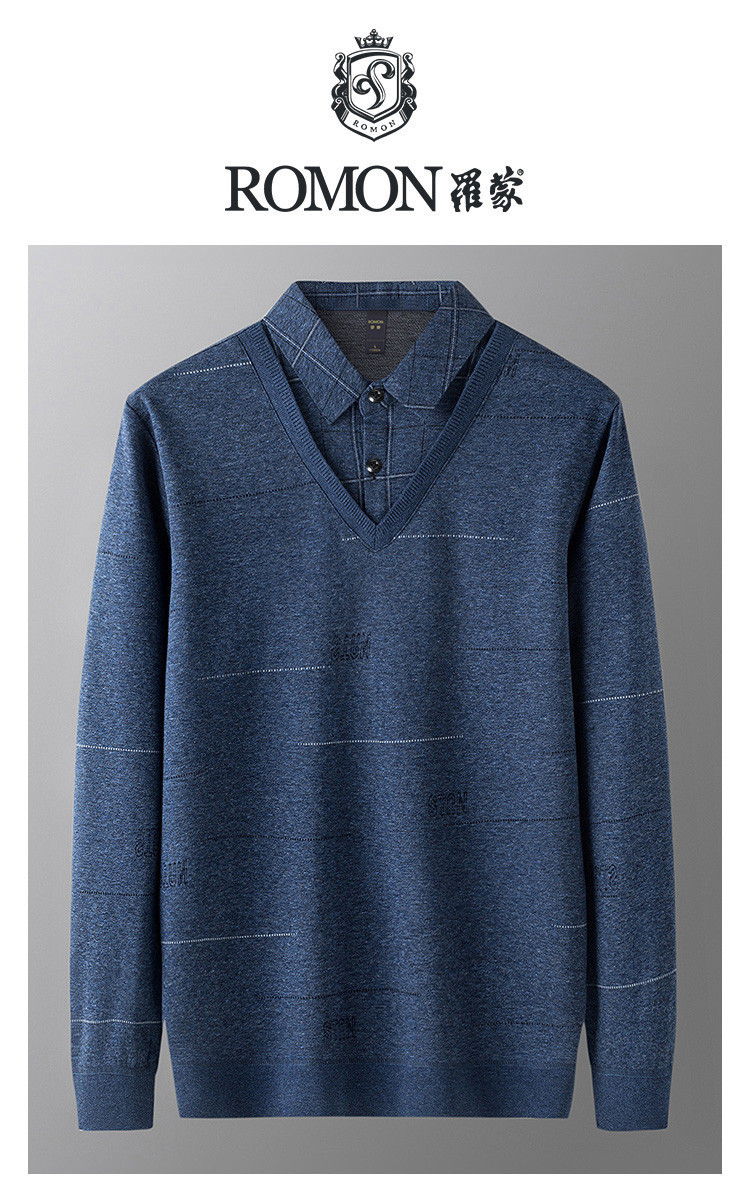 罗蒙男士秋冬假两件针织衫长袖polo衫时尚百搭男衬衫男上衣内搭