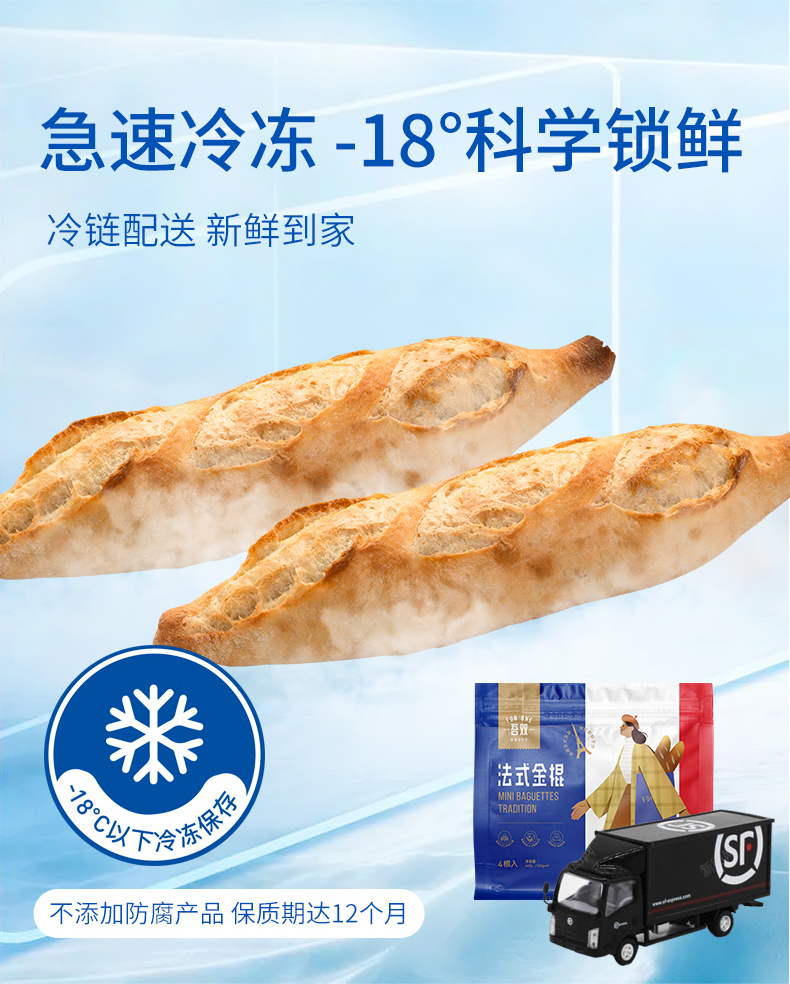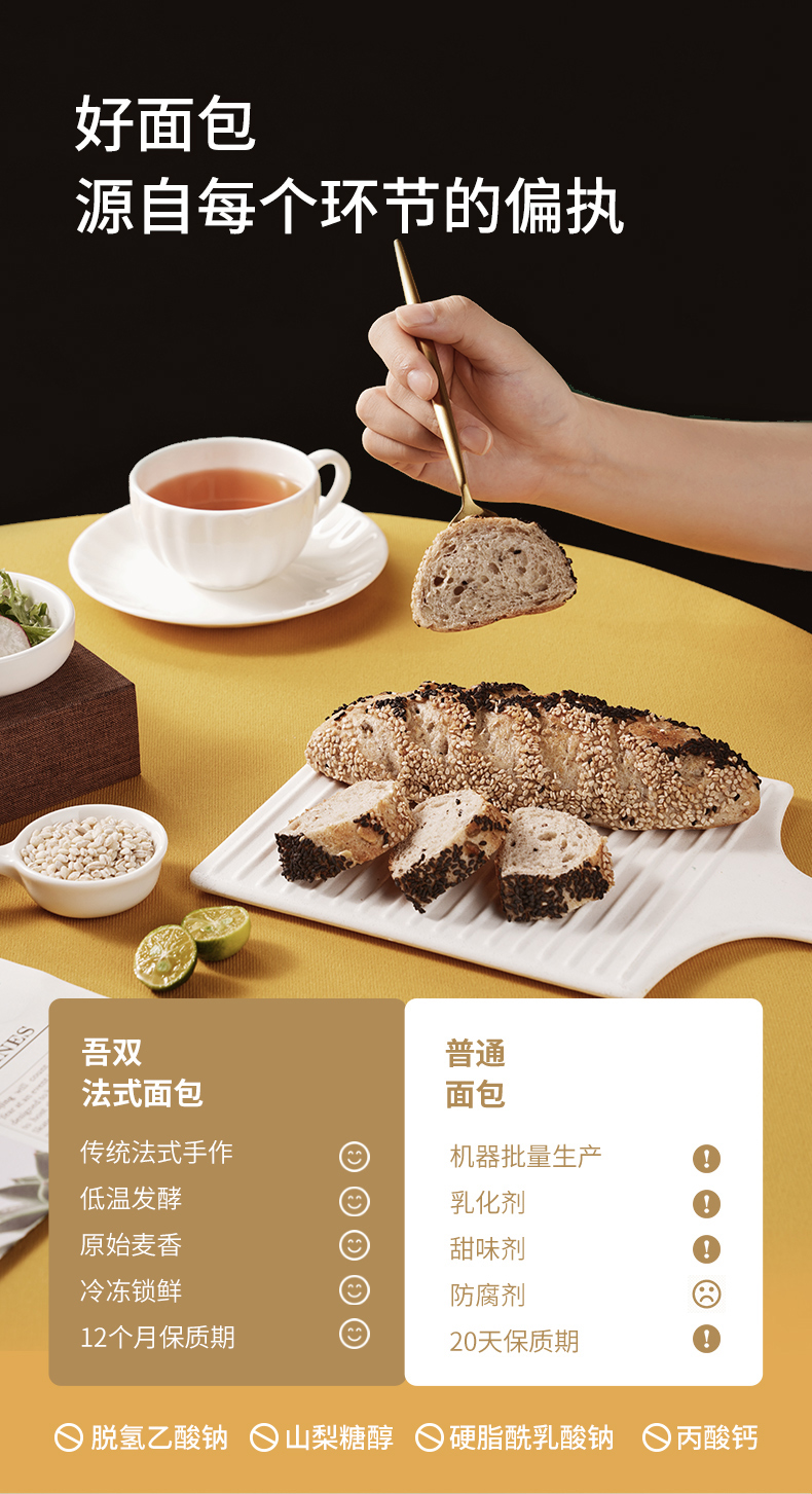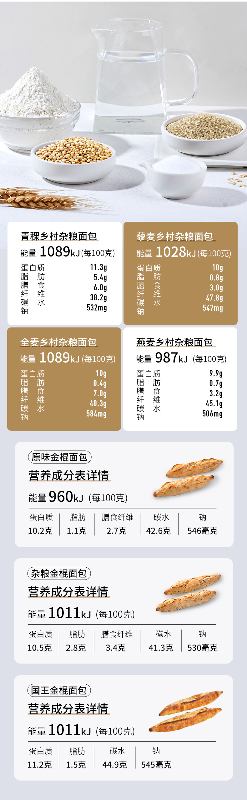 【法棍+乡村】吾双.法式乡村杂粮面包520g(130g*4)+原味金棍 640g(160g*4)
