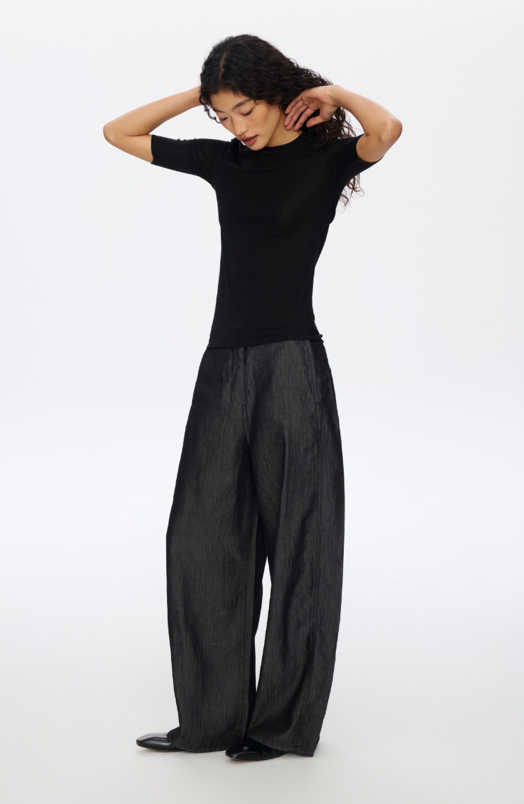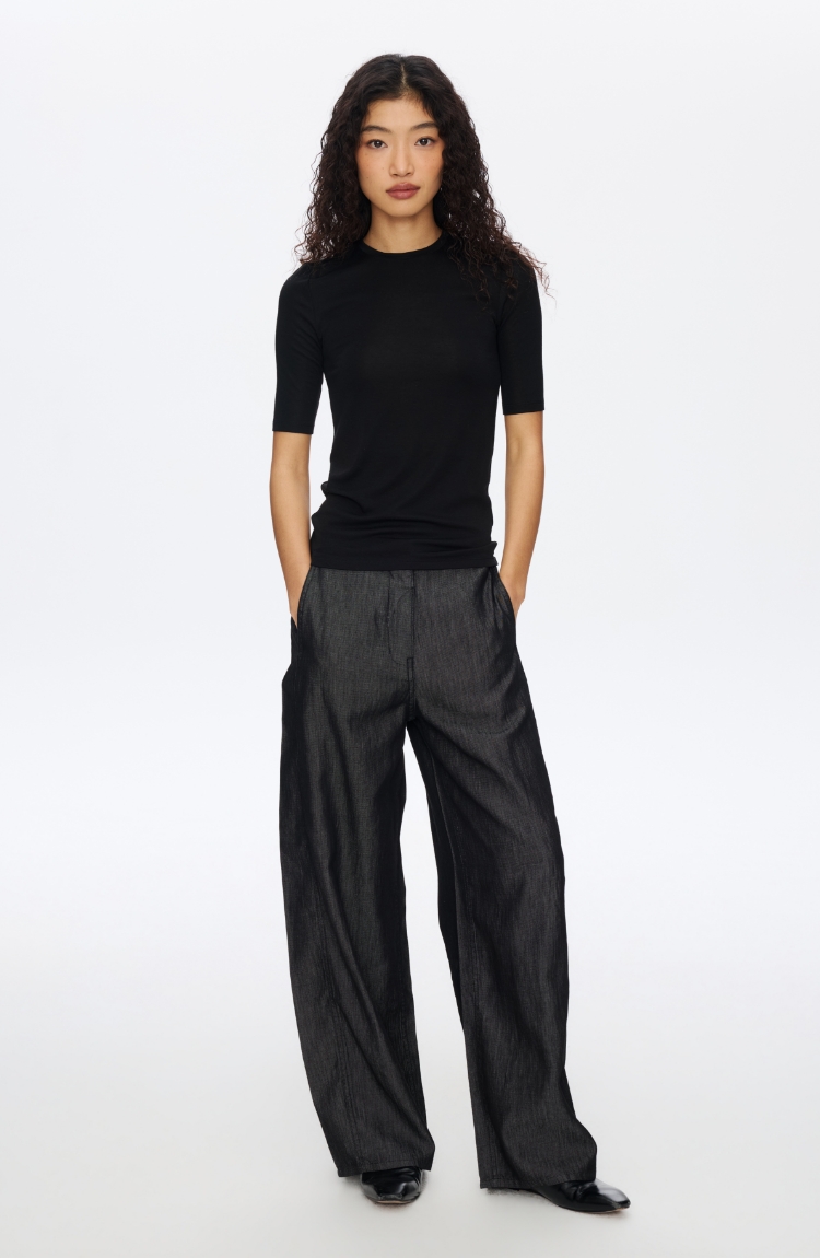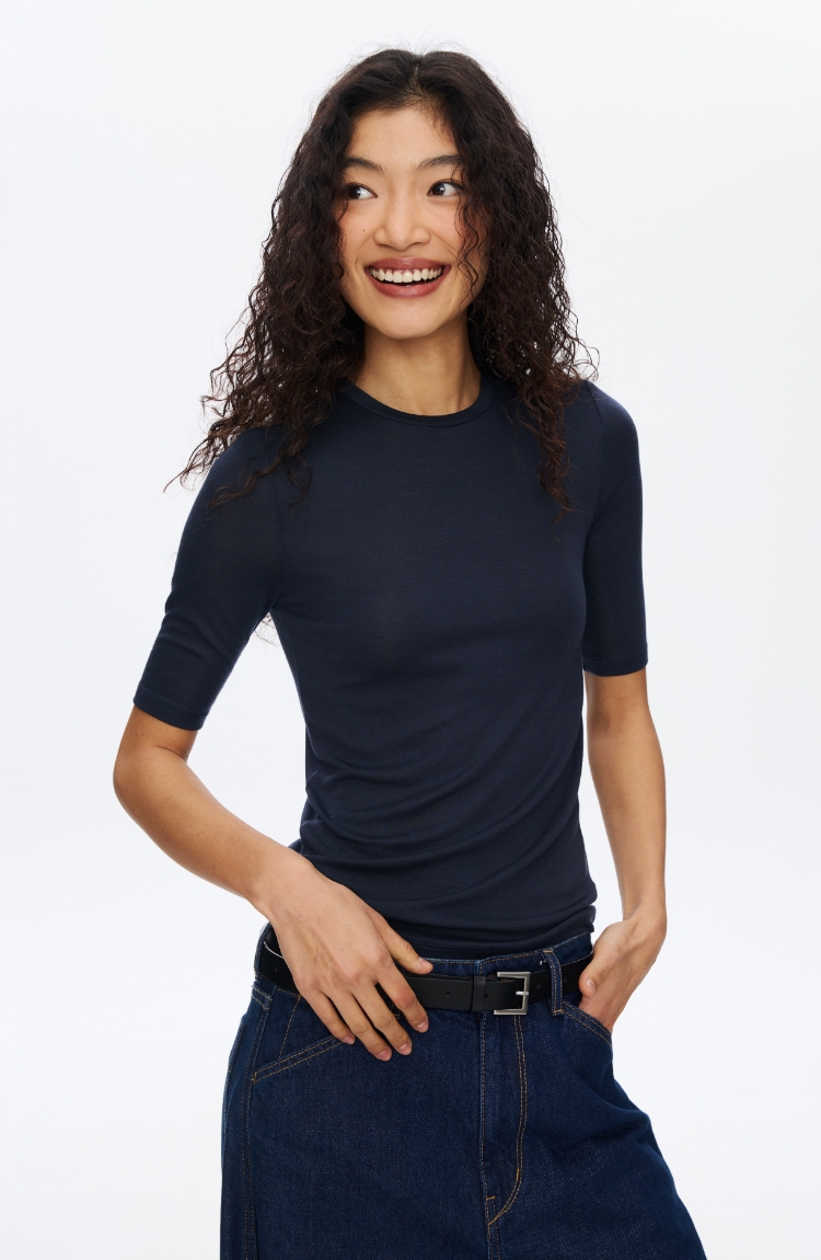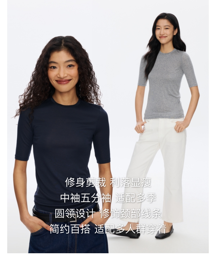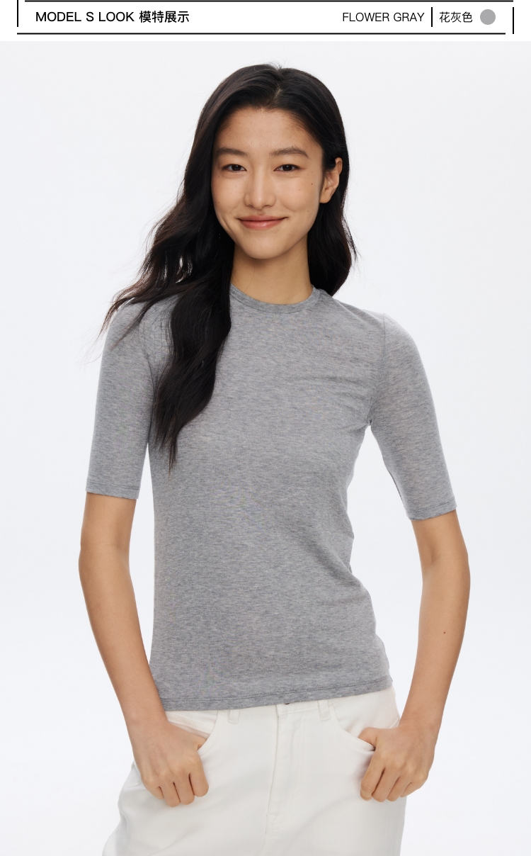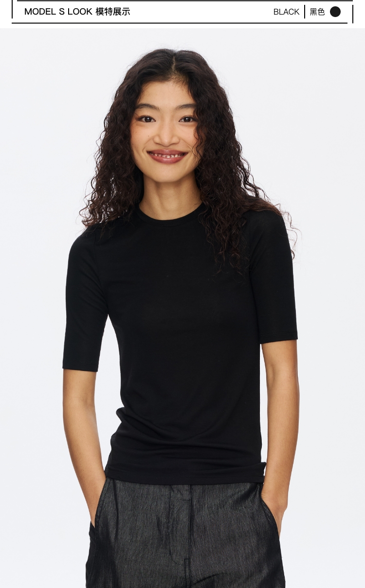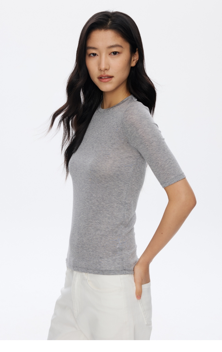 羊毛中袖圆领修身T恤