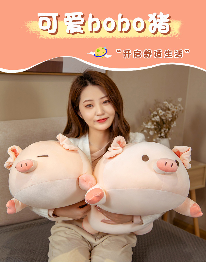 【可爱猪猪毛绒玩具】圆球猪公仔毛绒抱枕玩具,趴趴公仔床上靠枕玩偶,超软布娃娃女生日礼物抱枕