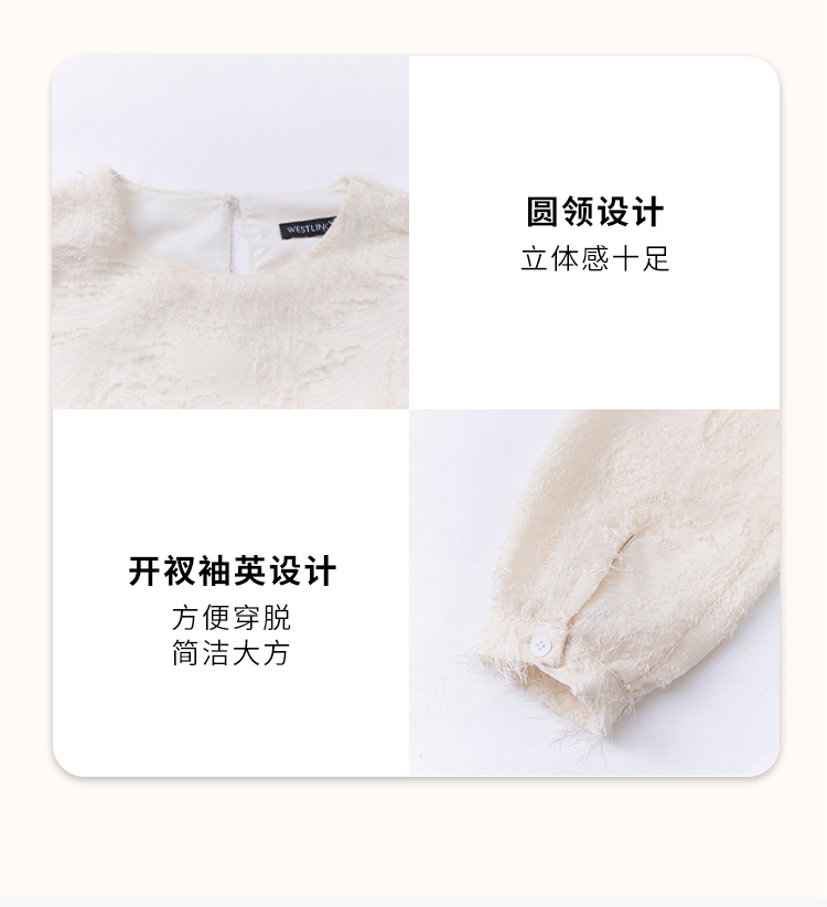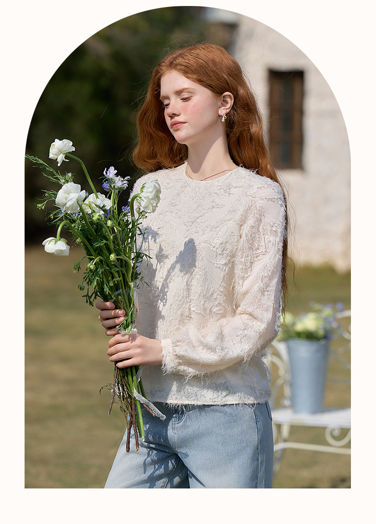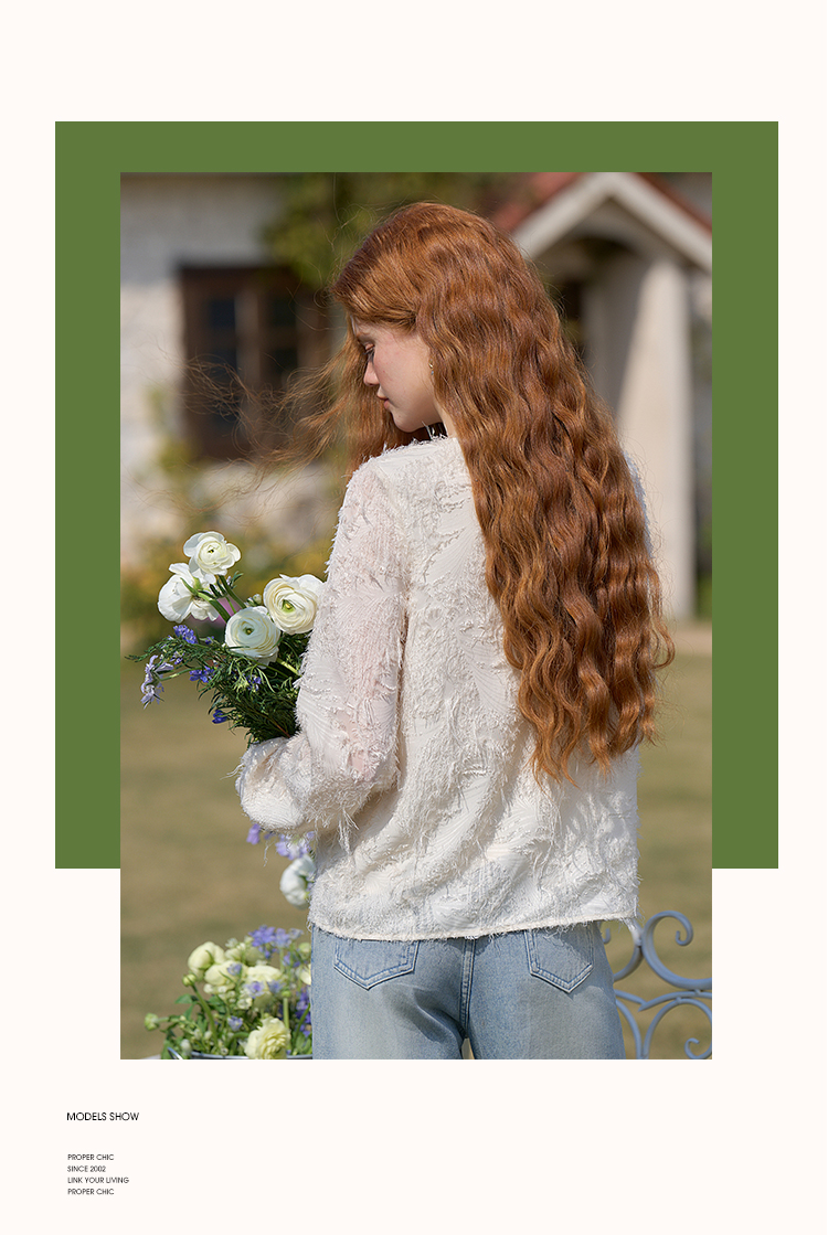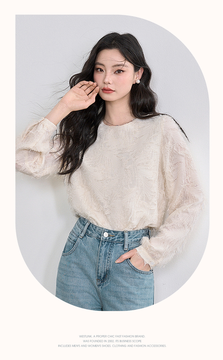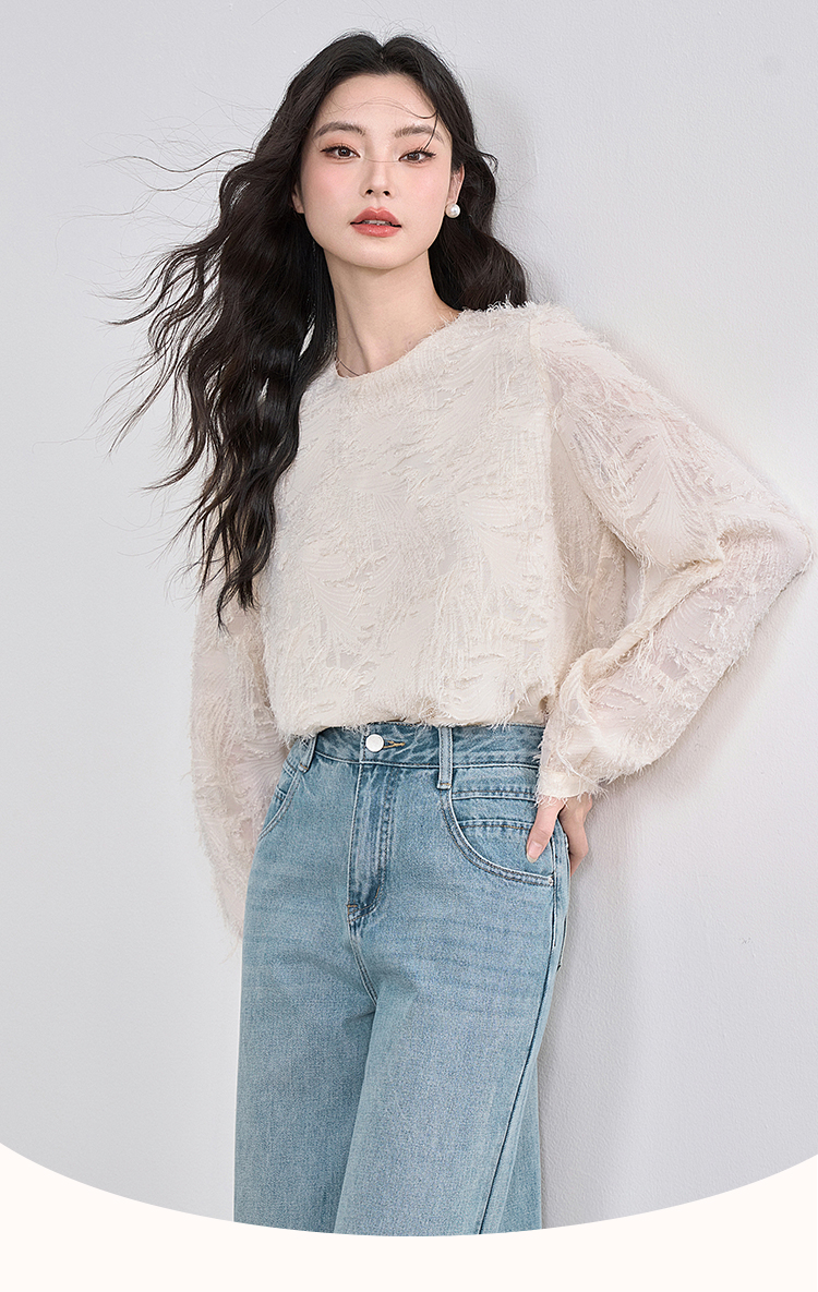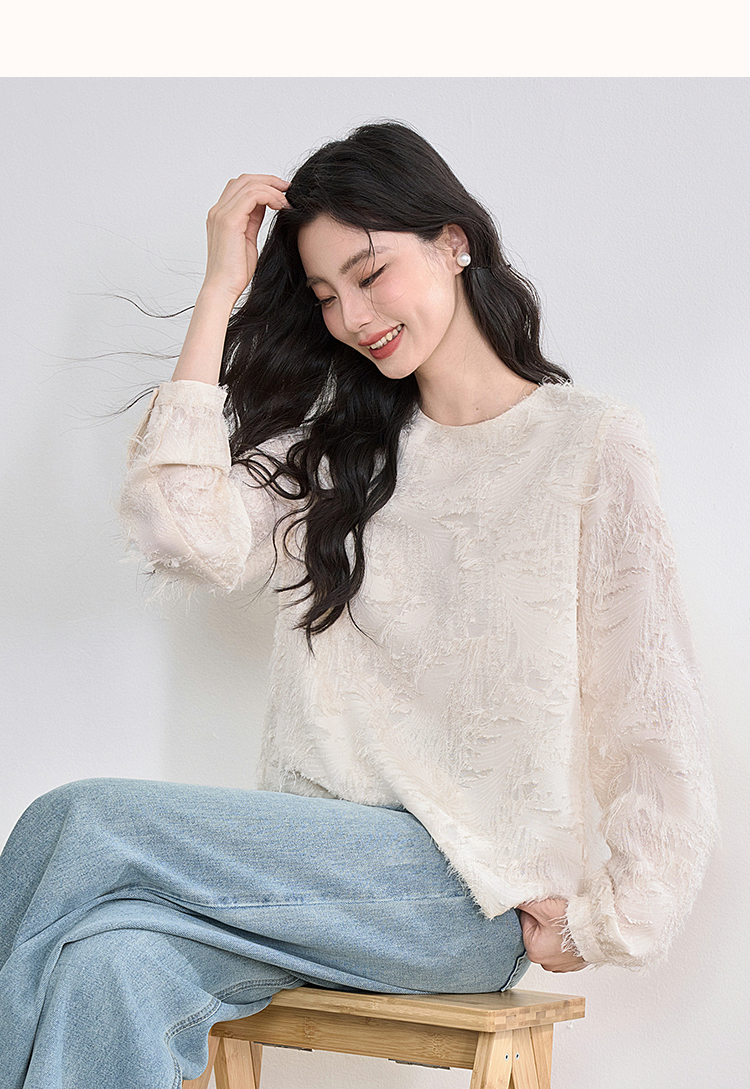 韩系甜美重工立体流苏提花衬衫女2025圆领宽松衬衣V0350179