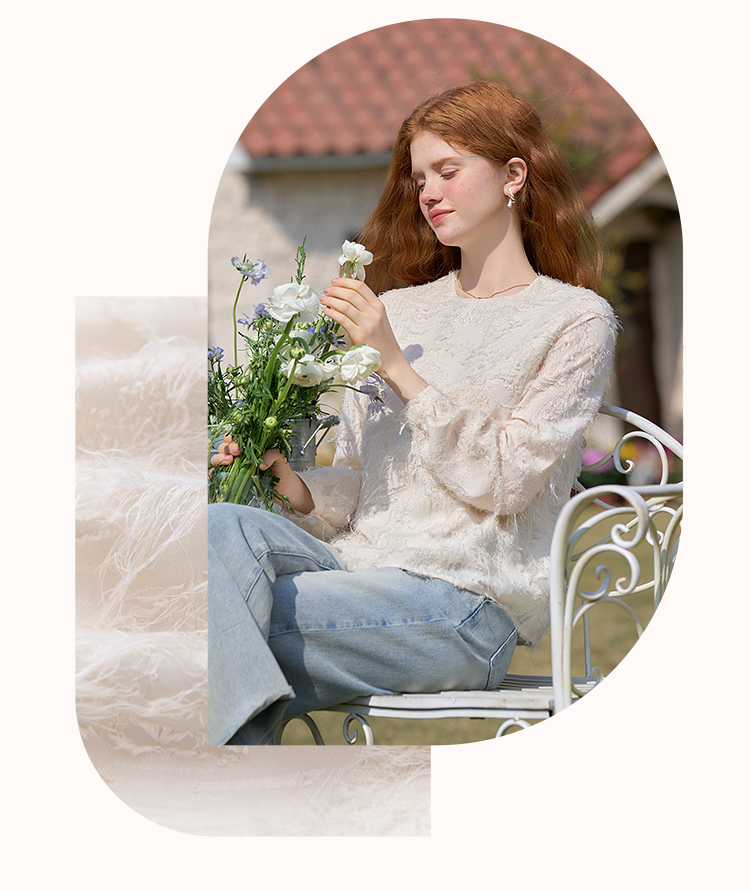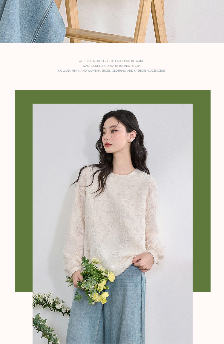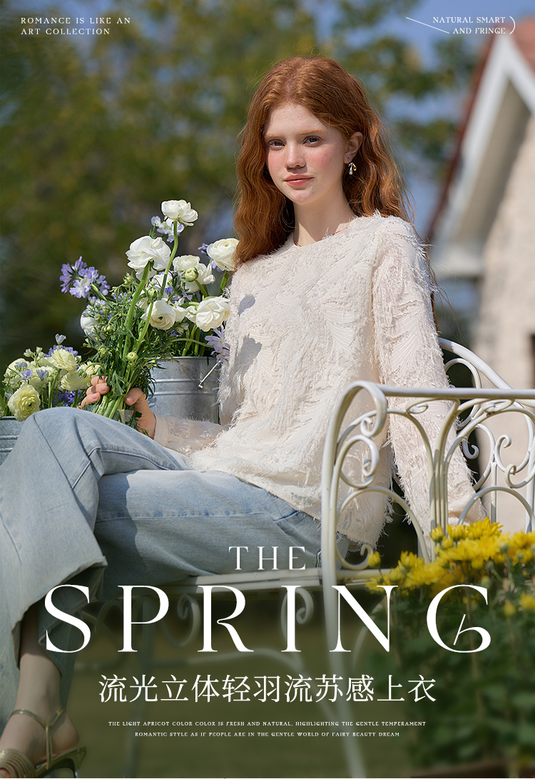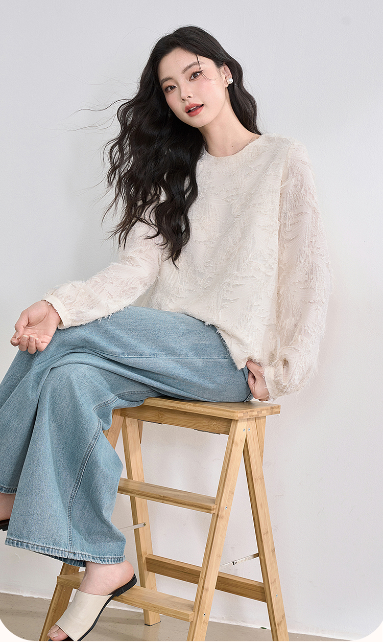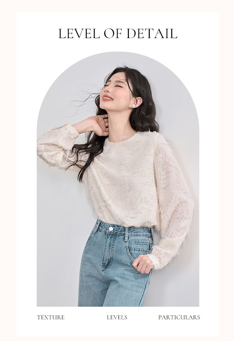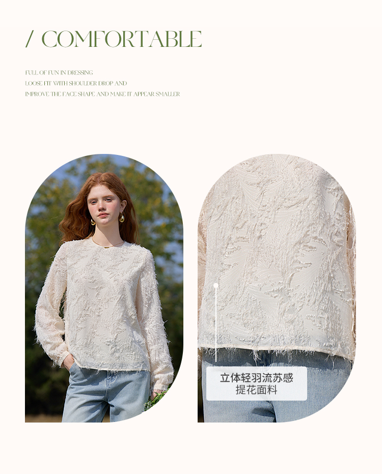 韩系甜美重工立体流苏提花衬衫女2025圆领宽松衬衣V0350179