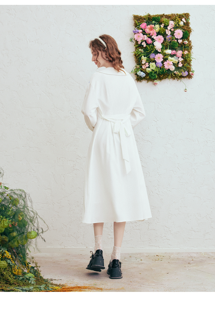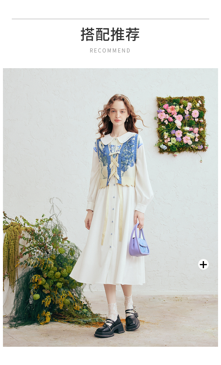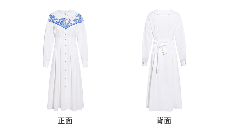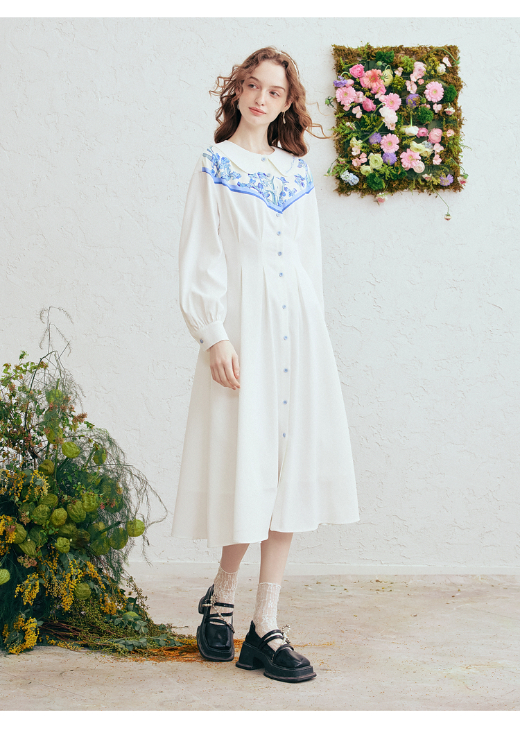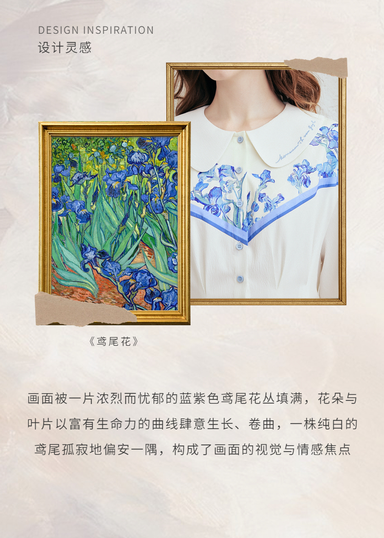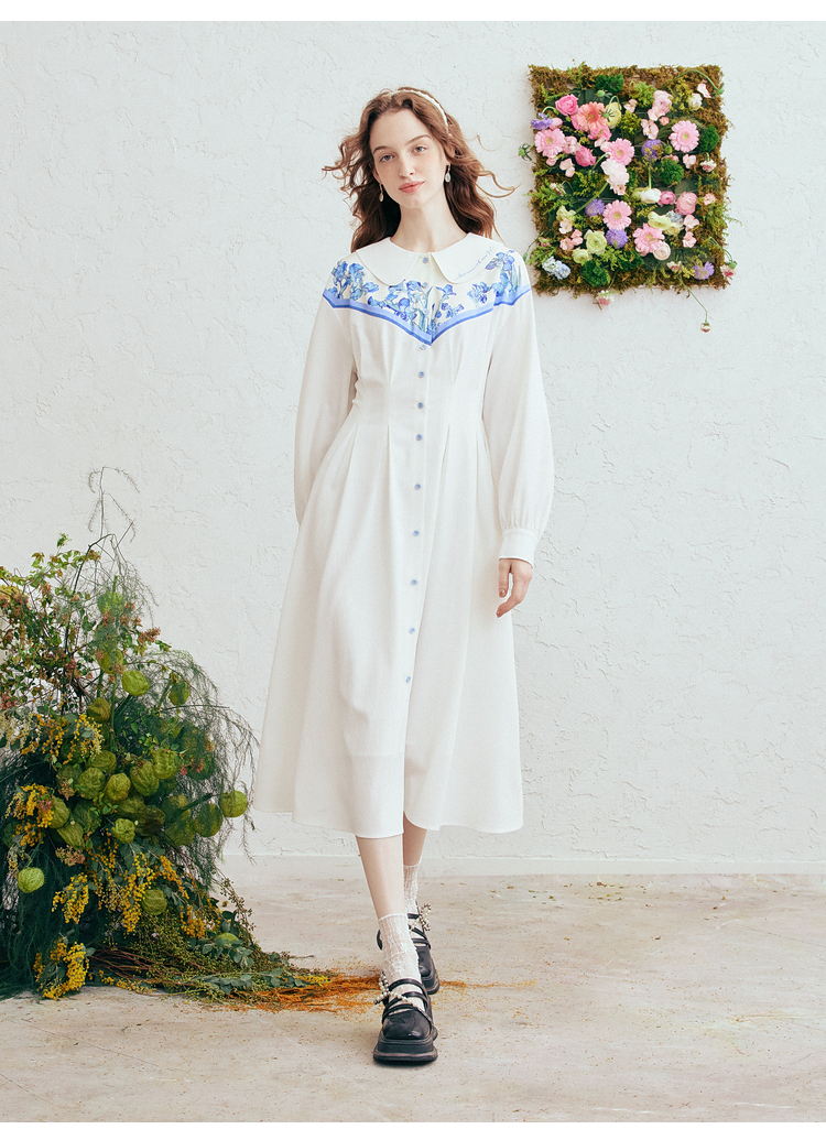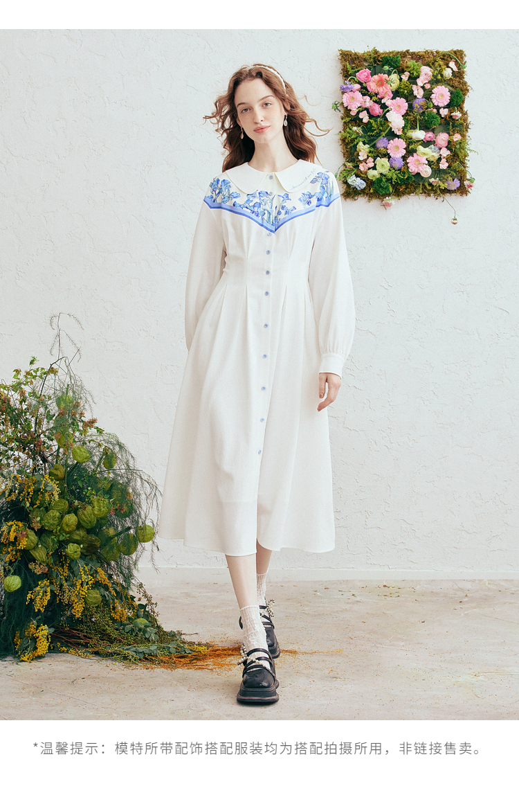 两三事梵高文艺月下鸢尾2026春季新款复古刺绣翻领印花a字连衣裙