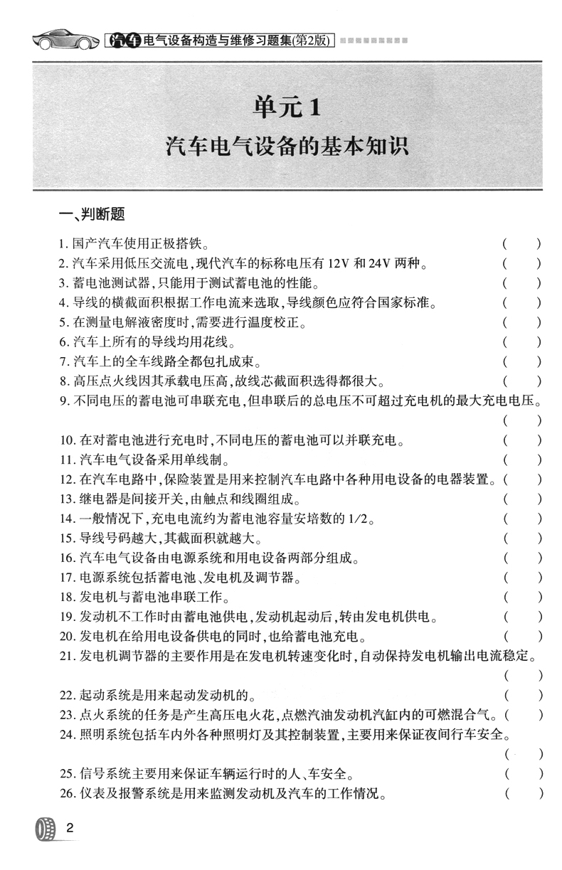 书名:汽车电气设备构造与维修习题集(第二版)
