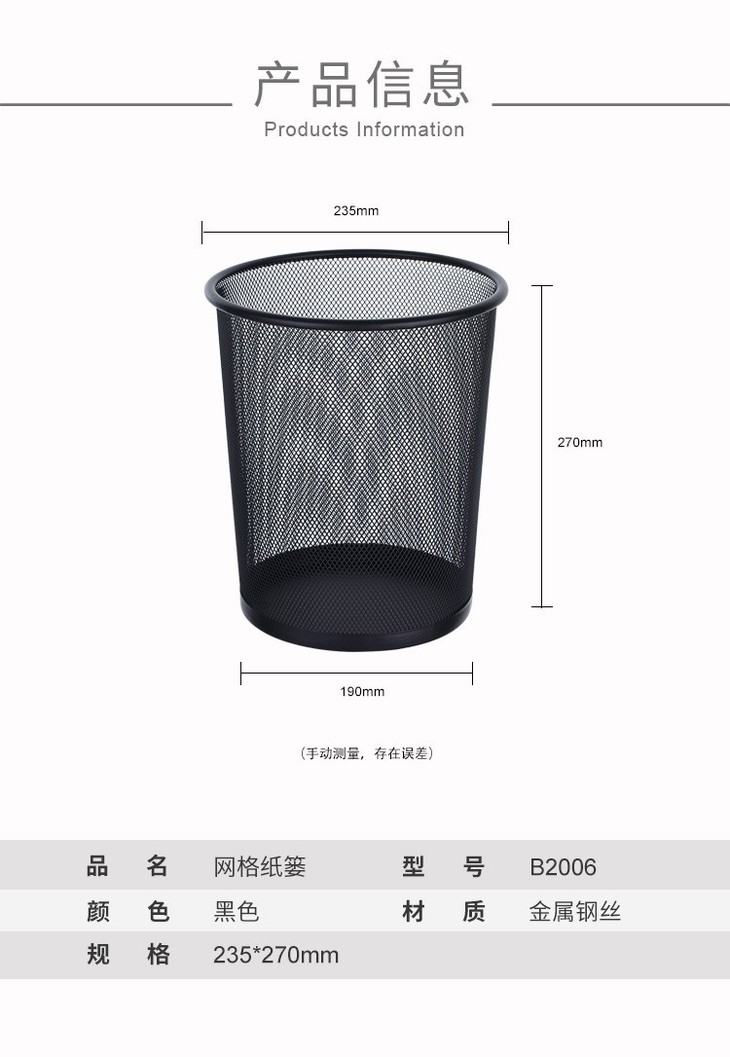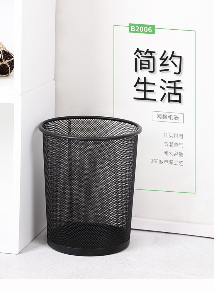 齐心耐用铁网圆纸篓B2005