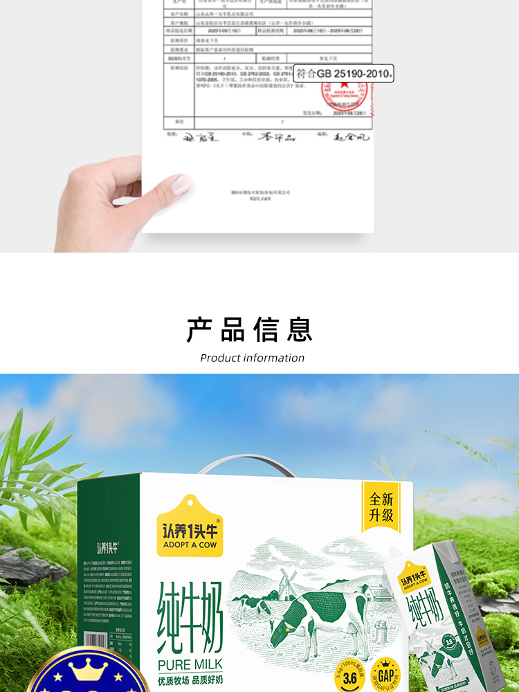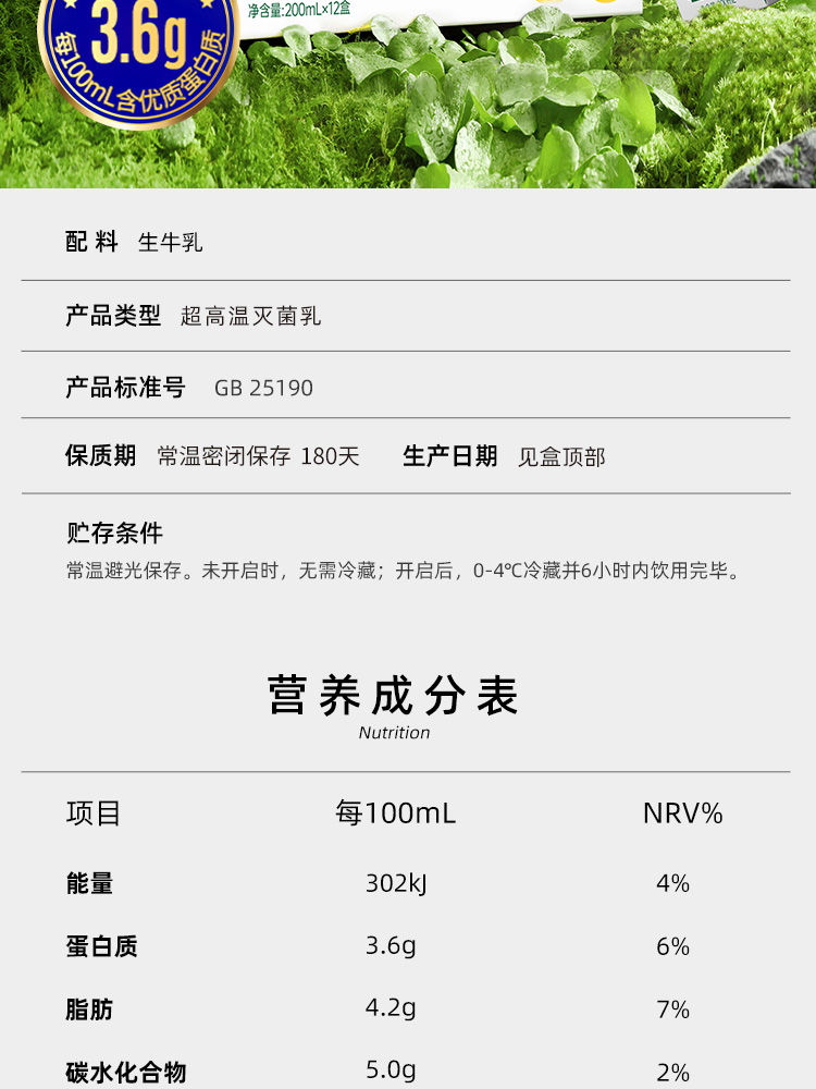 认养一头牛 新结构3.6g蛋白纯牛奶 200ml*12