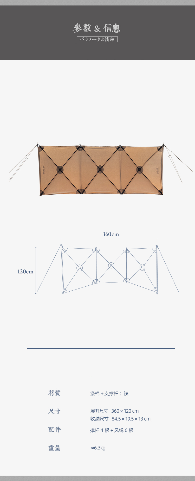 芊陌鸟户外-风幕 防风布露营挡风幕烧烤野营屏风(3.6*1.2米)