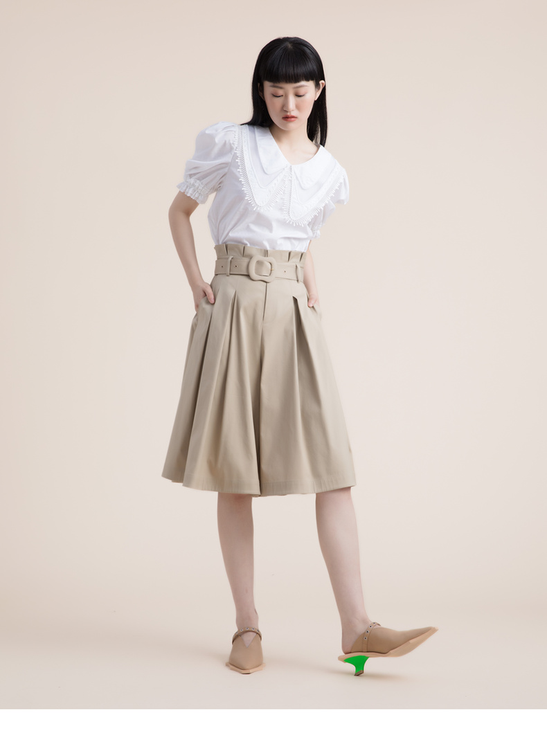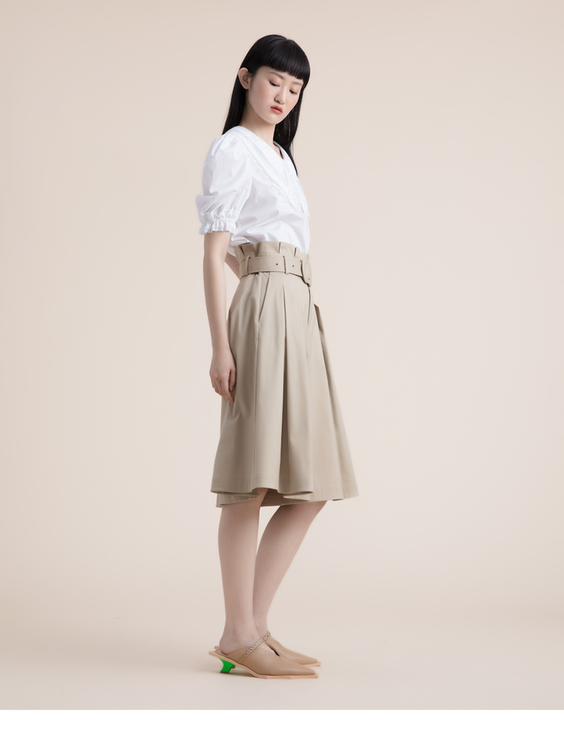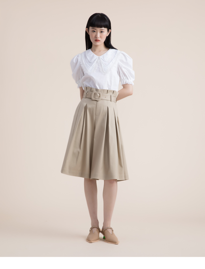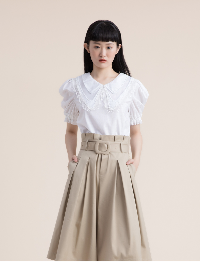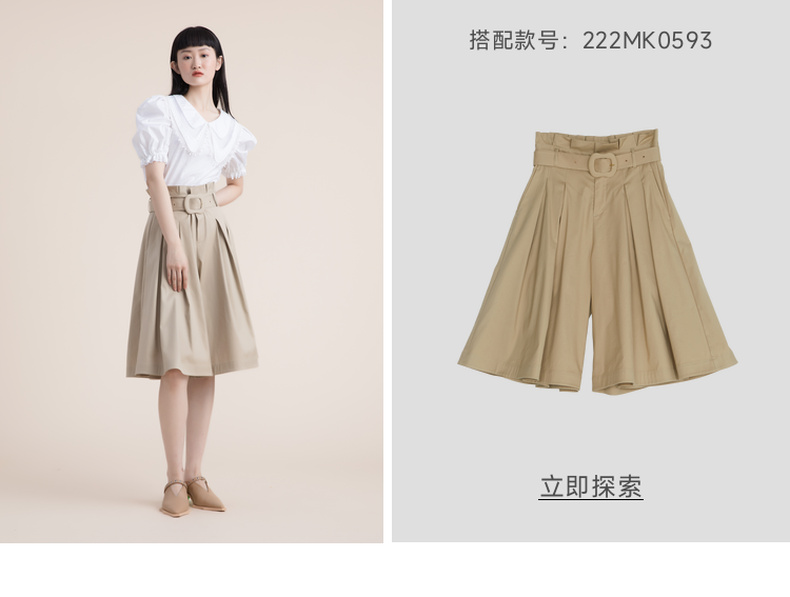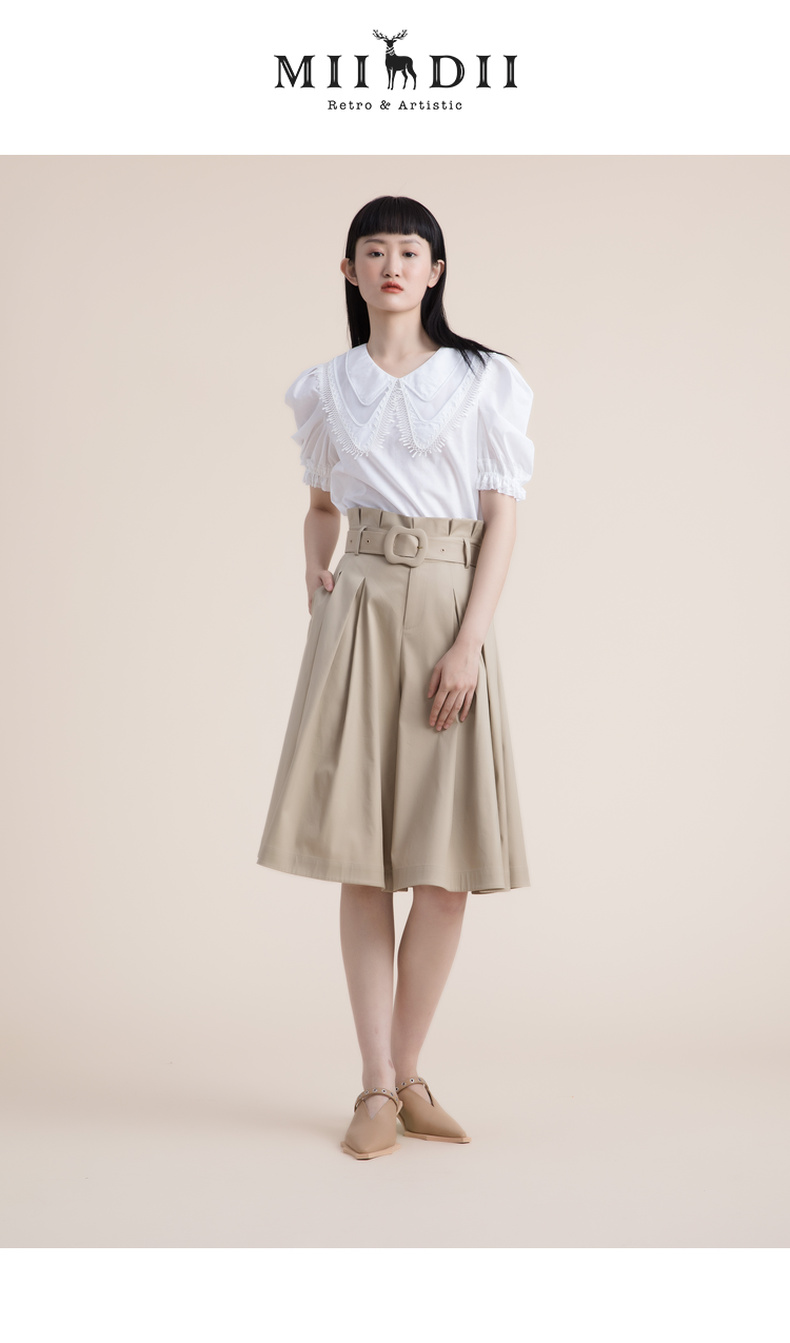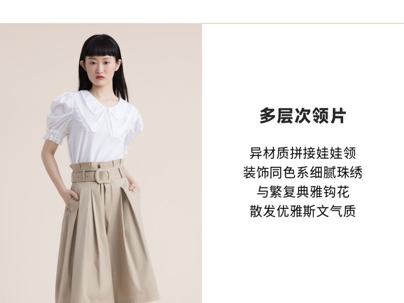 谜底2022夏季新款复古质感泡泡袖H型短袖纯棉上衣女222MS0615