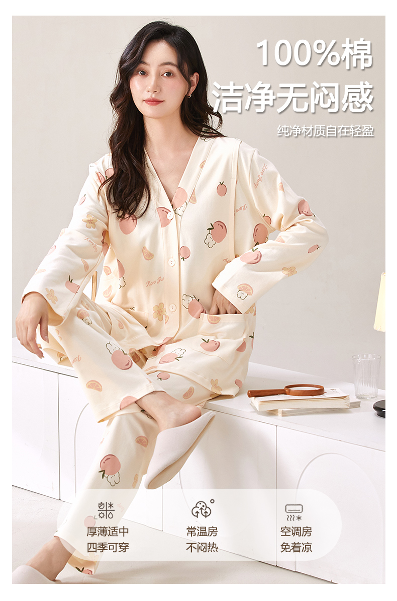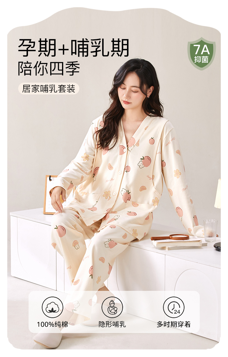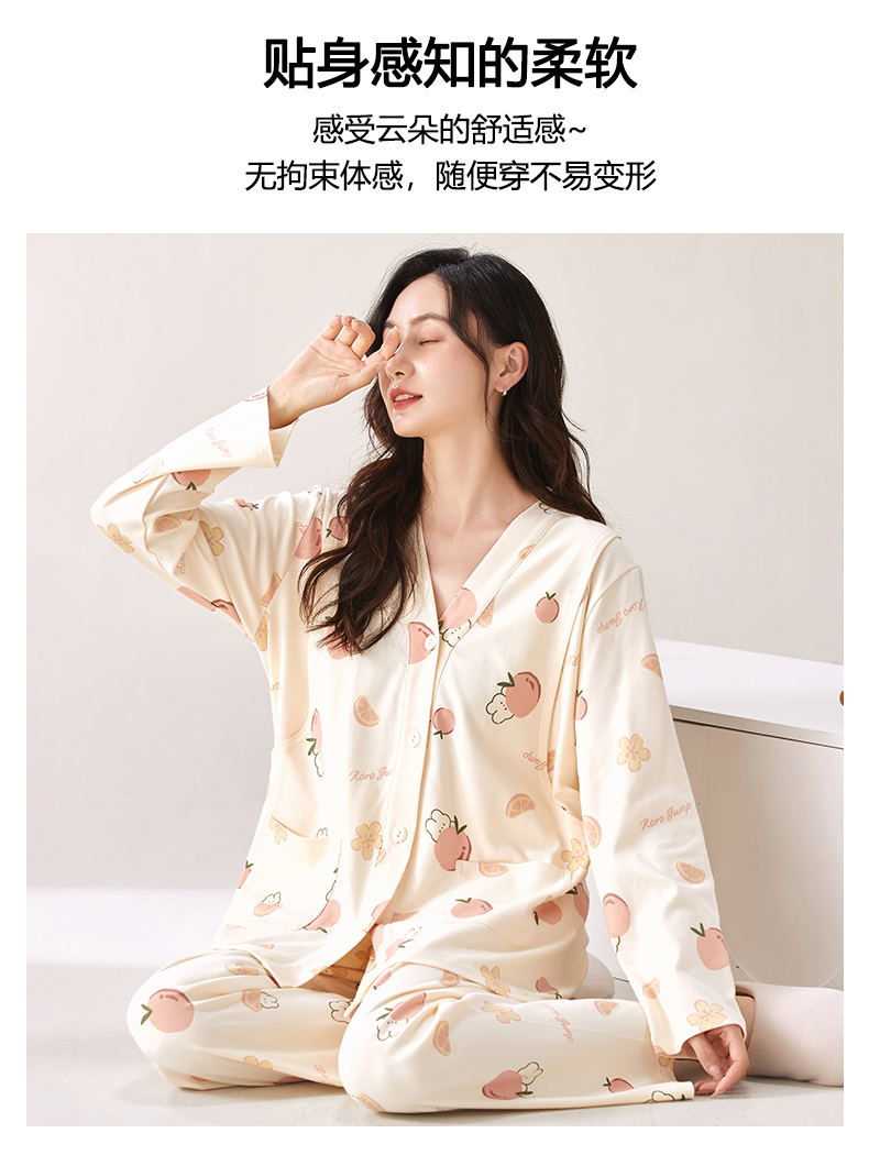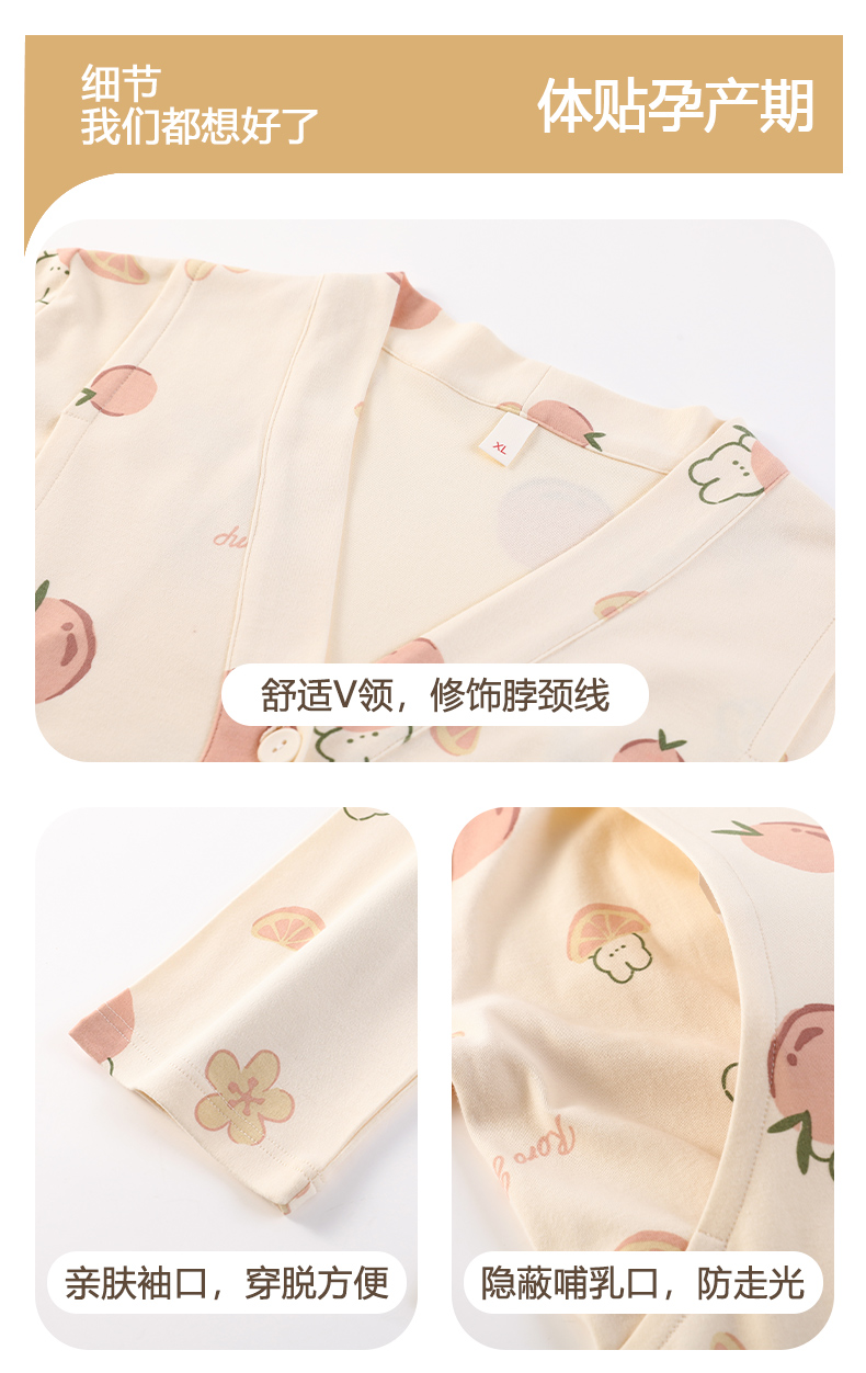 自然醒胧棉女士月子服家居服7A抗菌100%棉和服系列睡衣QH