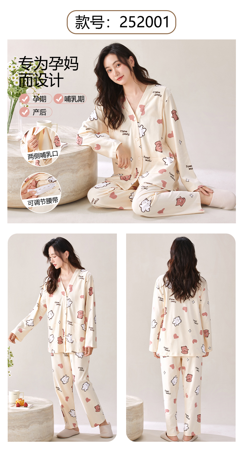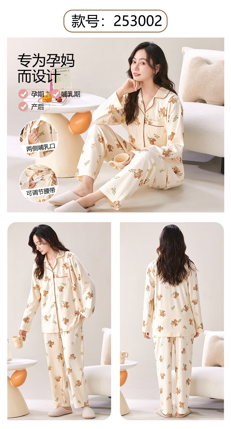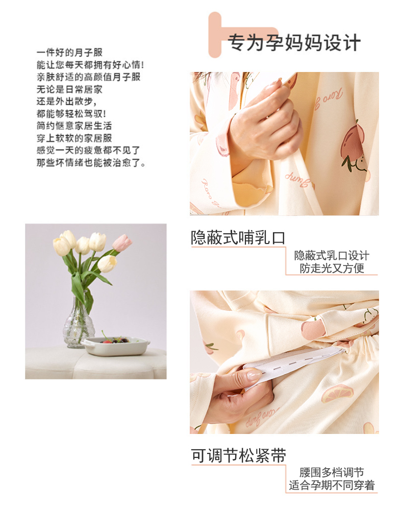 自然醒胧棉女士月子服家居服7A抗菌100%棉和服系列睡衣QH