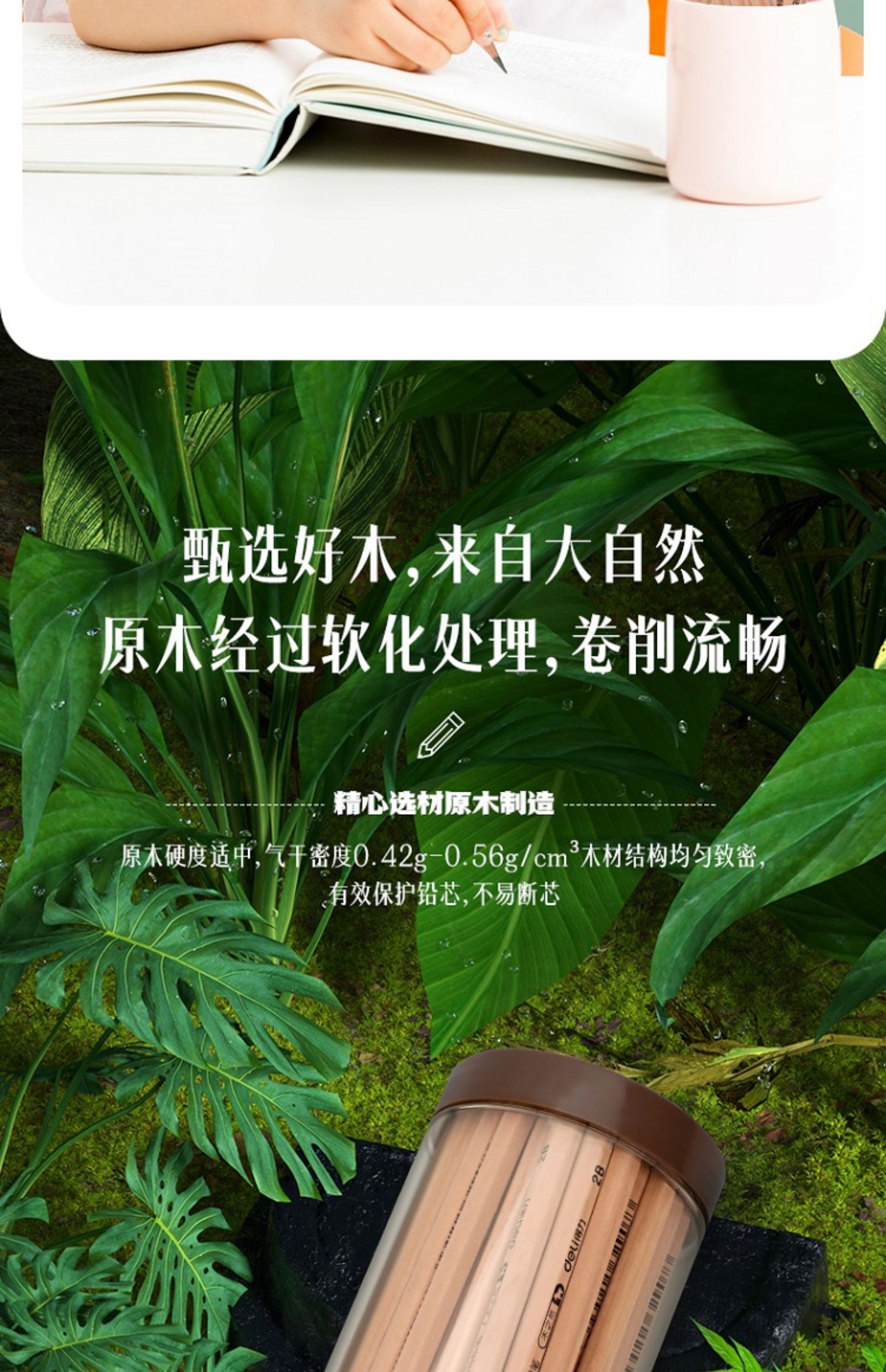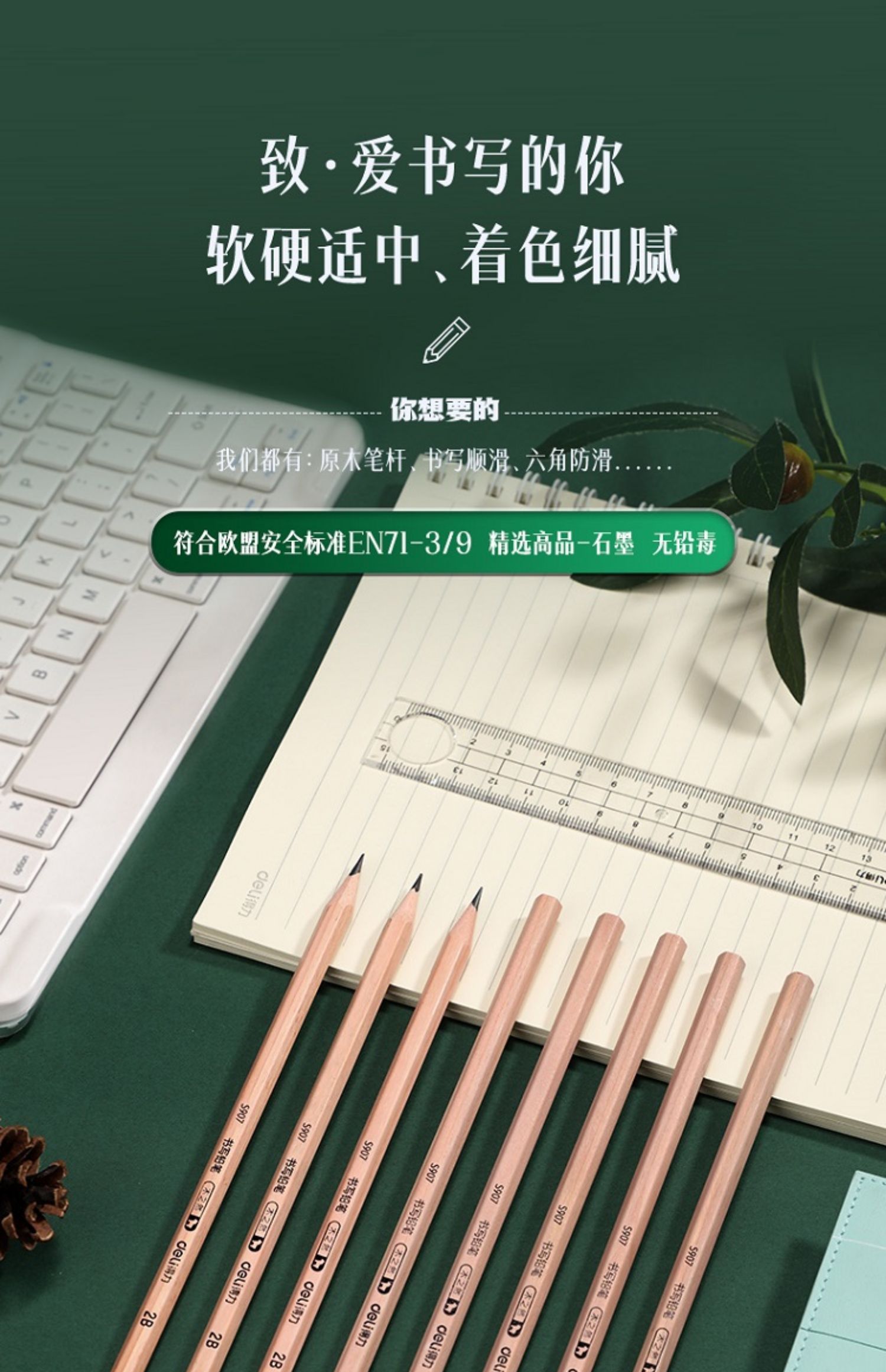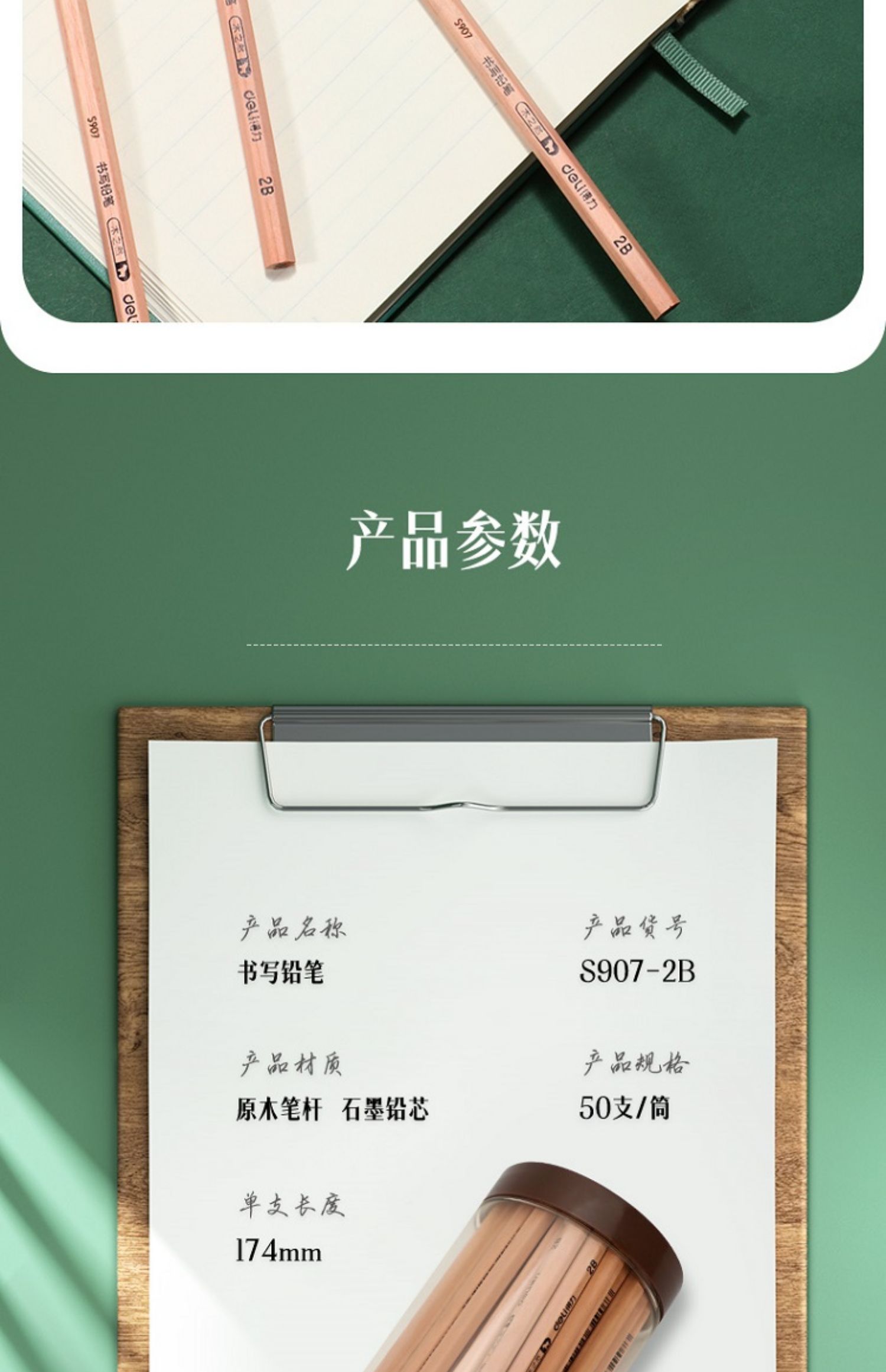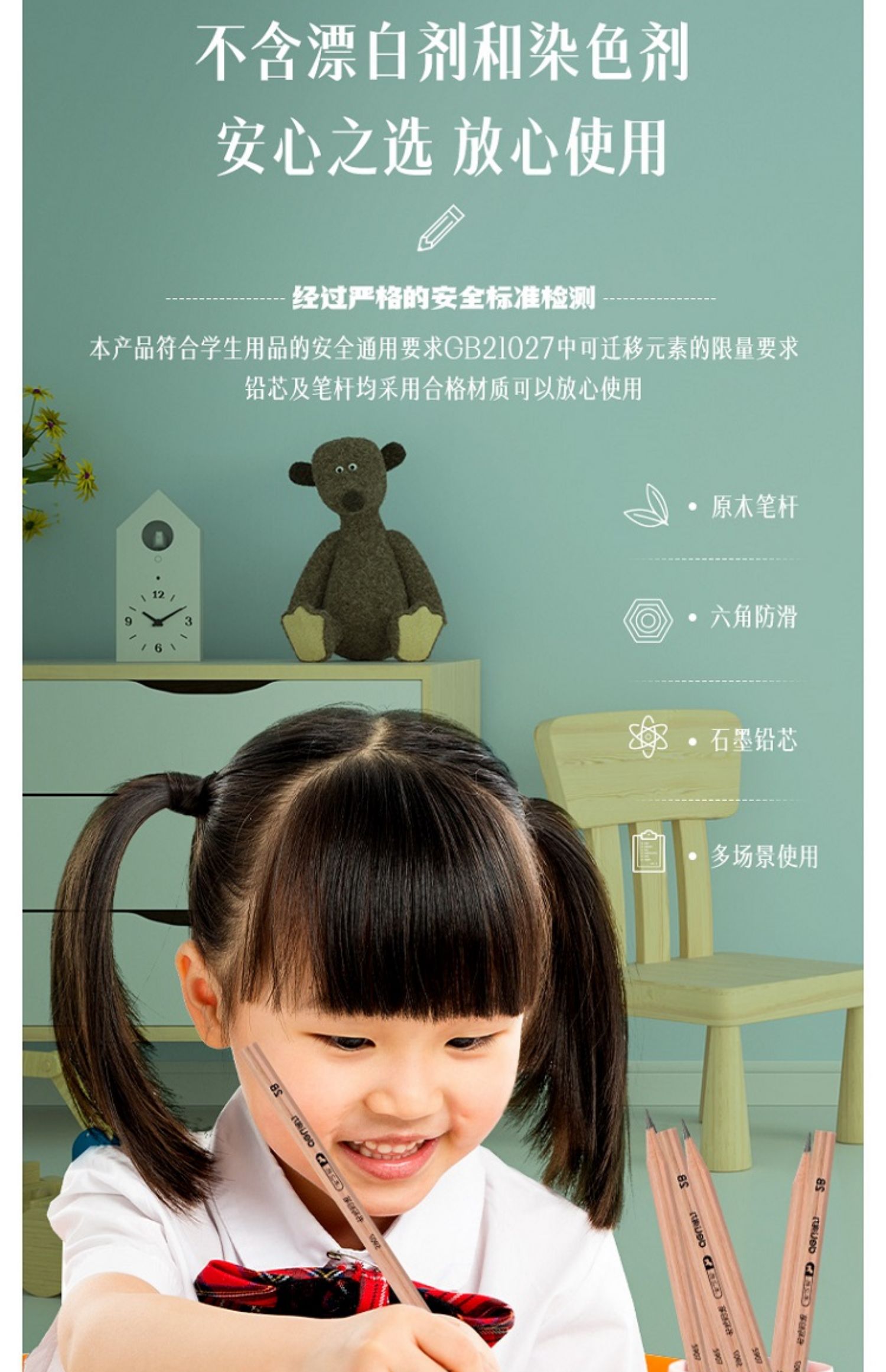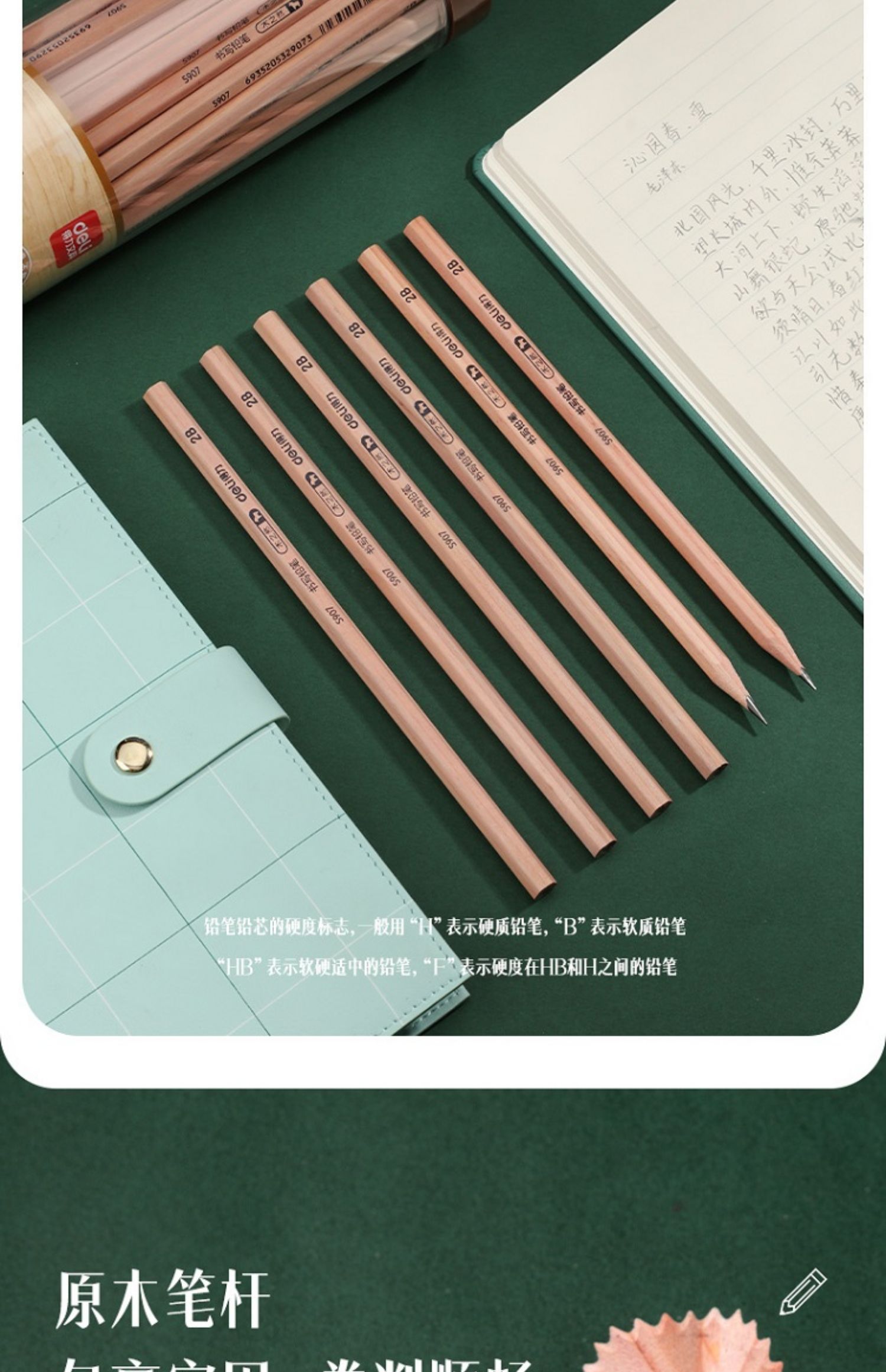 S907得力木之然系列六角笔杆原木2B书写铅笔(50支装)