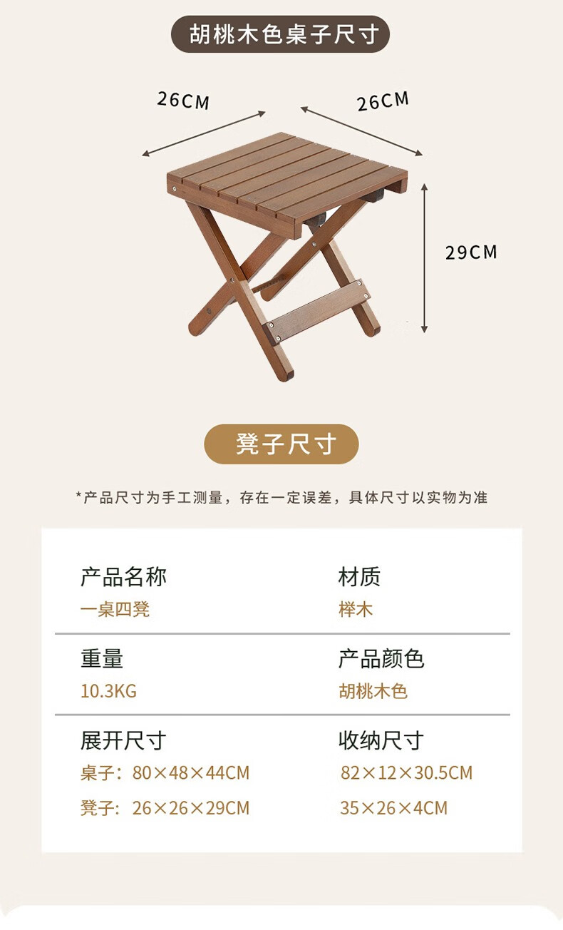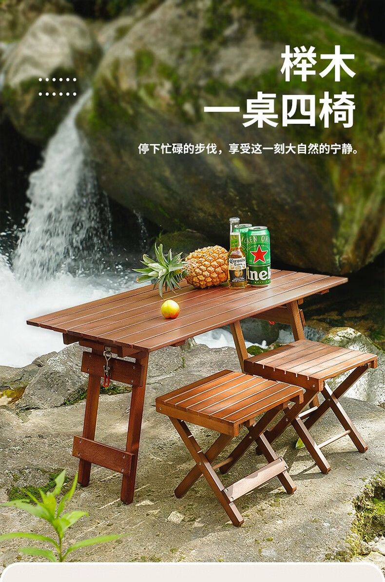 飞图乐(FTLY)原木折叠桌凳套装-原木色