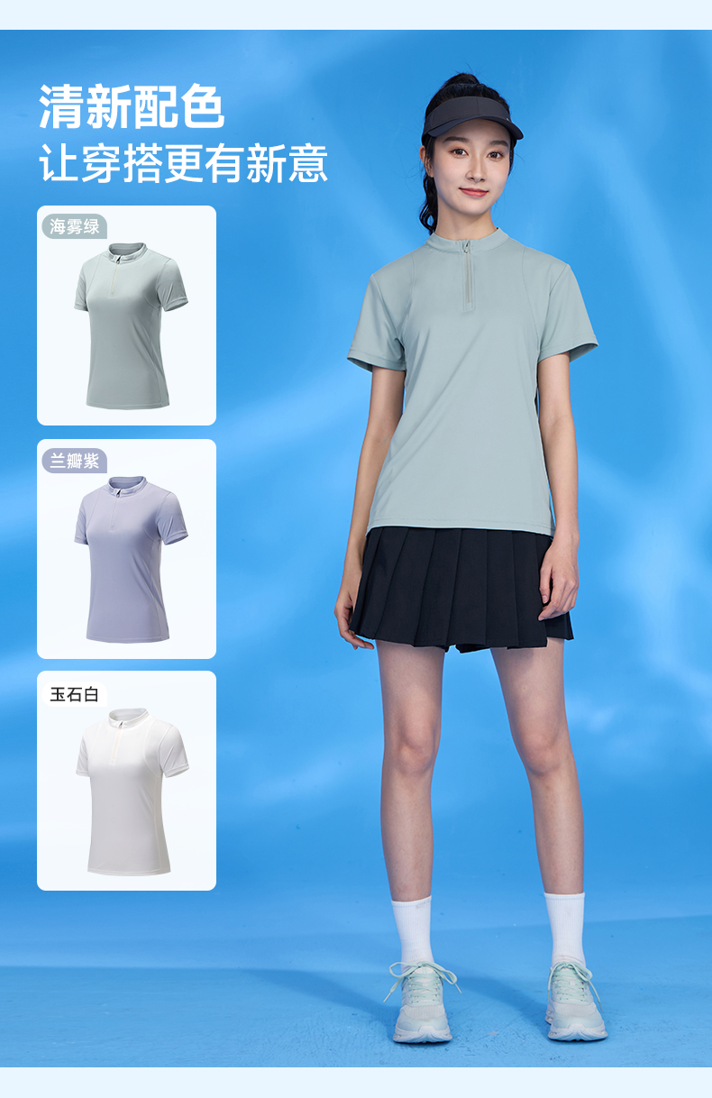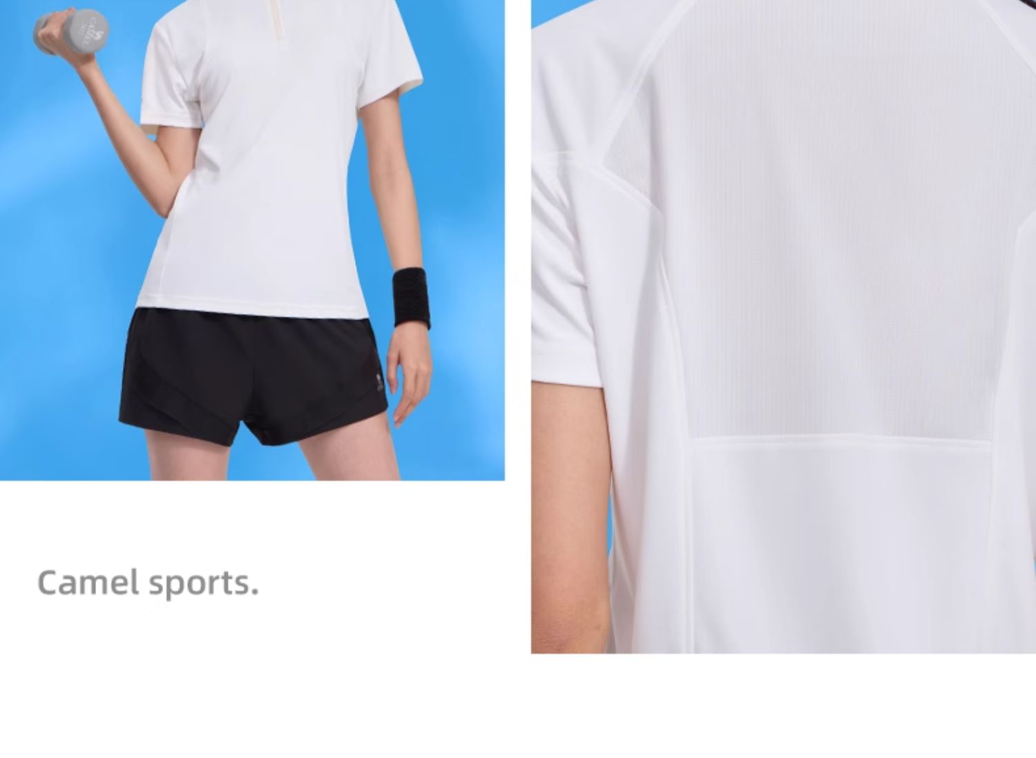 骆驼运动速干衣女士短袖2025夏季防晒透气立领跑步户外T恤瑜伽服 J24BARG027