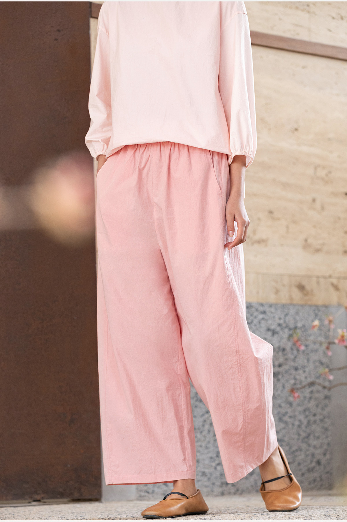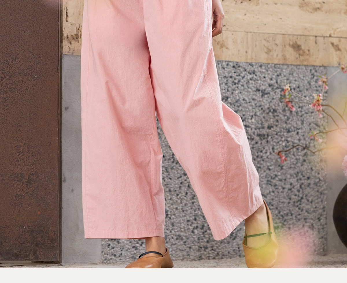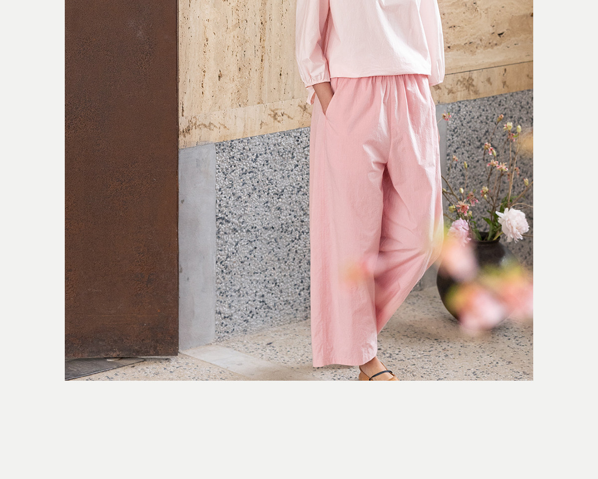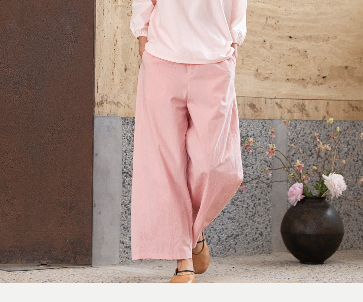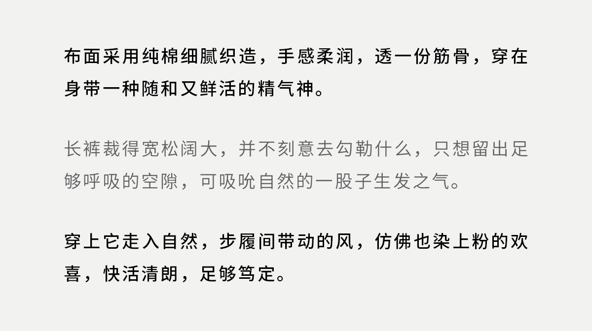 牧衣游原创 净色纯棉休闲长裤新款宽松百搭舒适松紧腰裤子 春意蓝