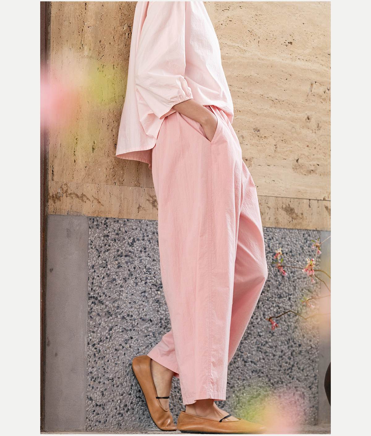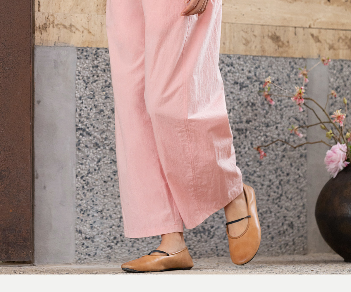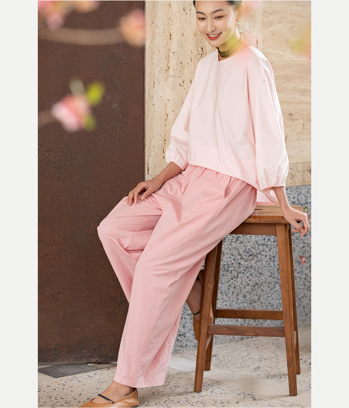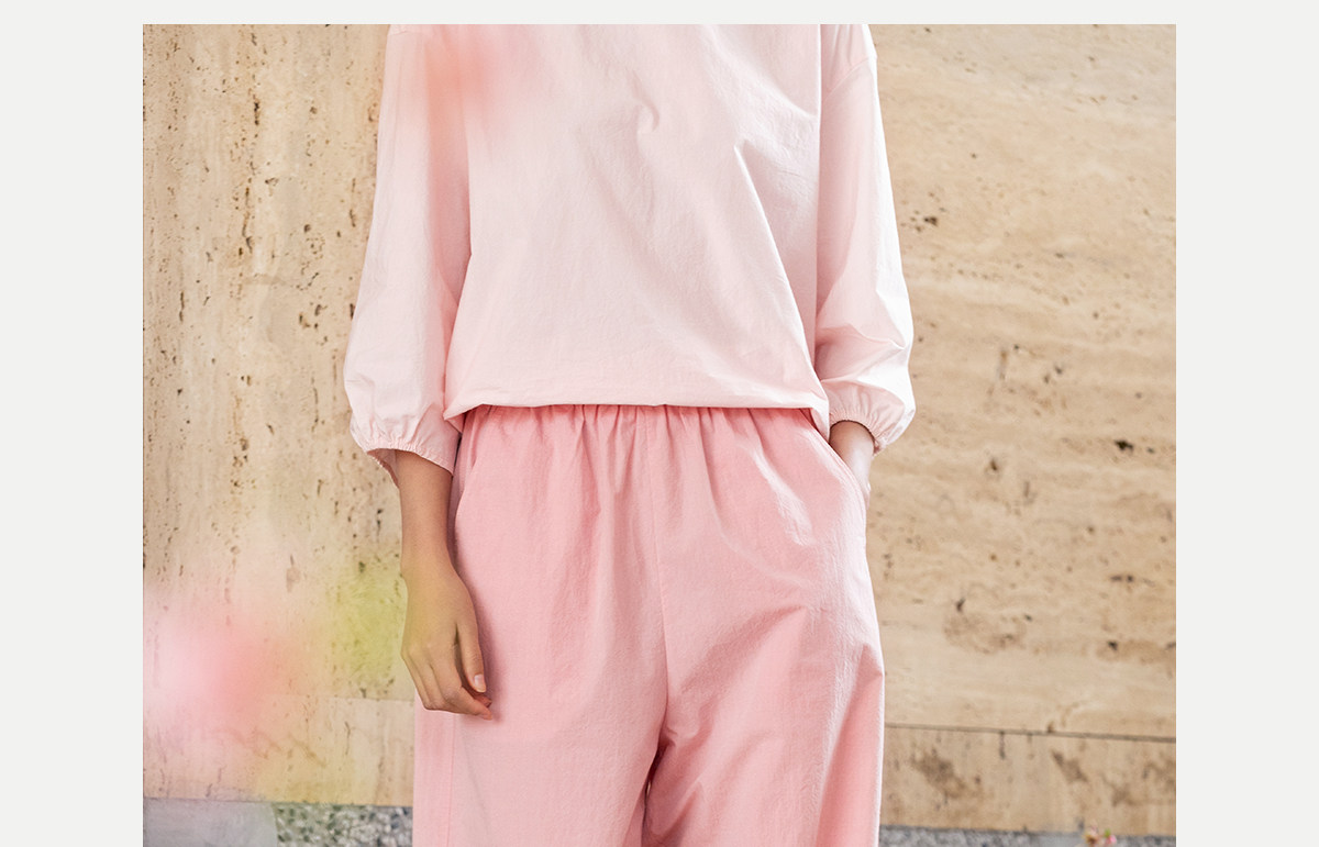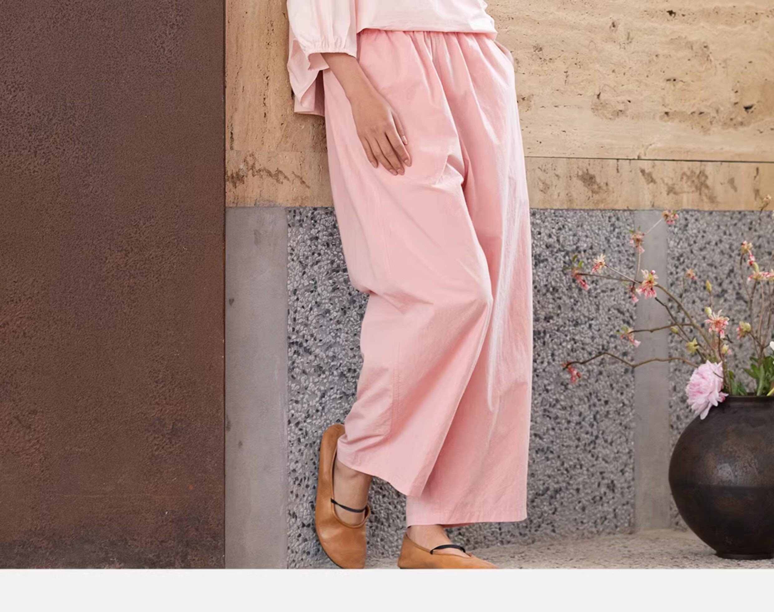 牧衣游原创 净色纯棉休闲长裤新款宽松百搭舒适松紧腰裤子 春意蓝