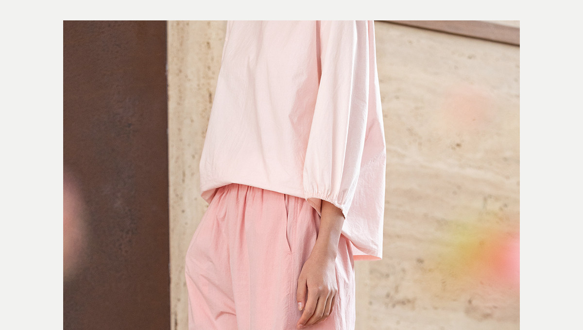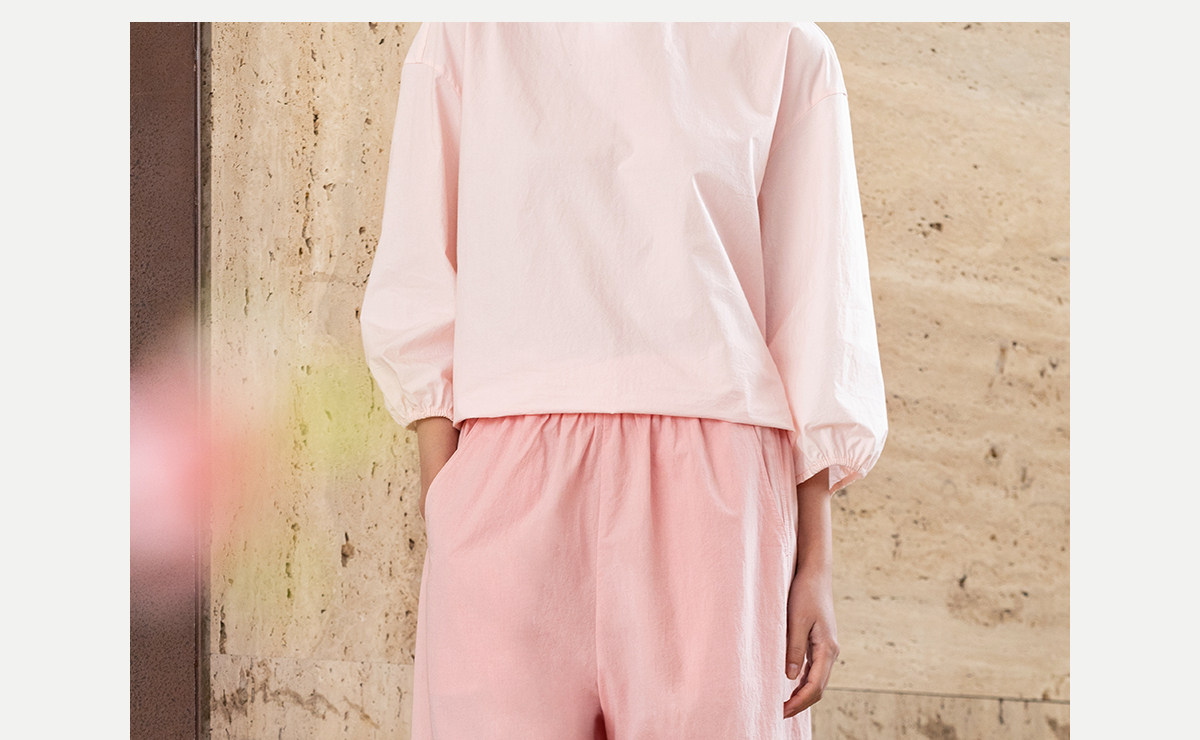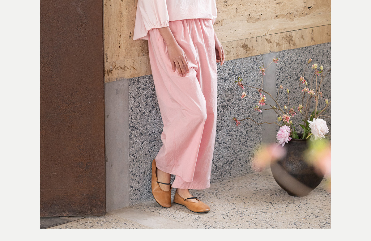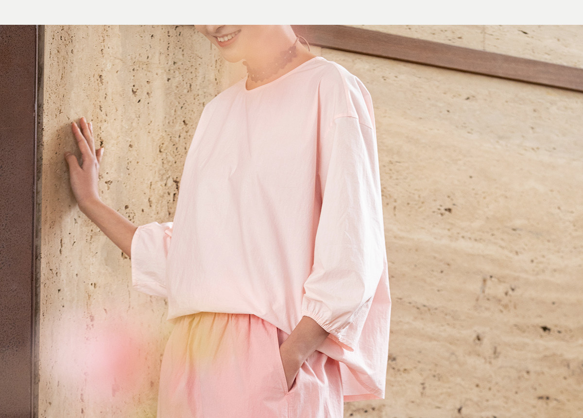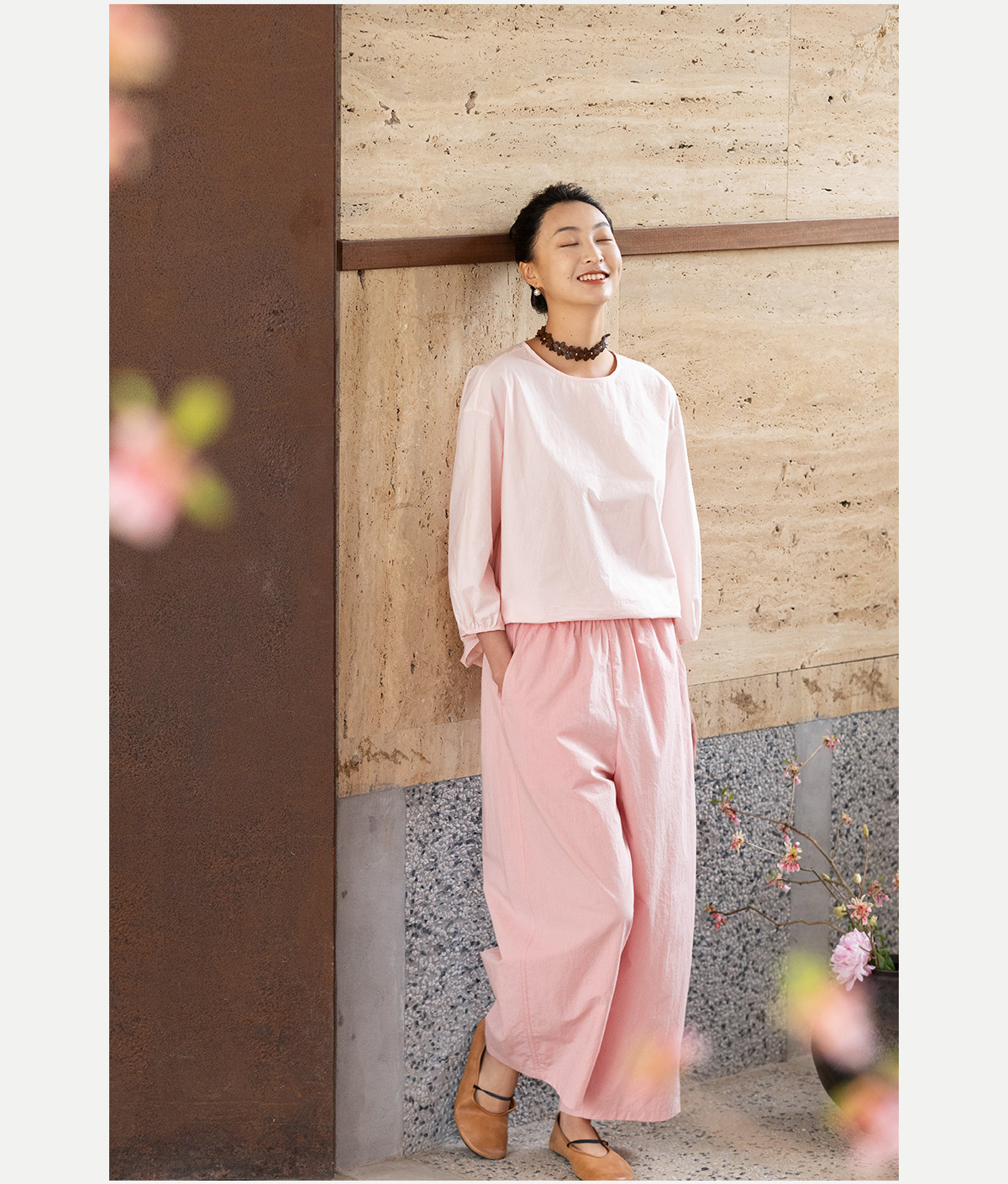 牧衣游原创 净色纯棉休闲长裤新款宽松百搭舒适松紧腰裤子 春意蓝